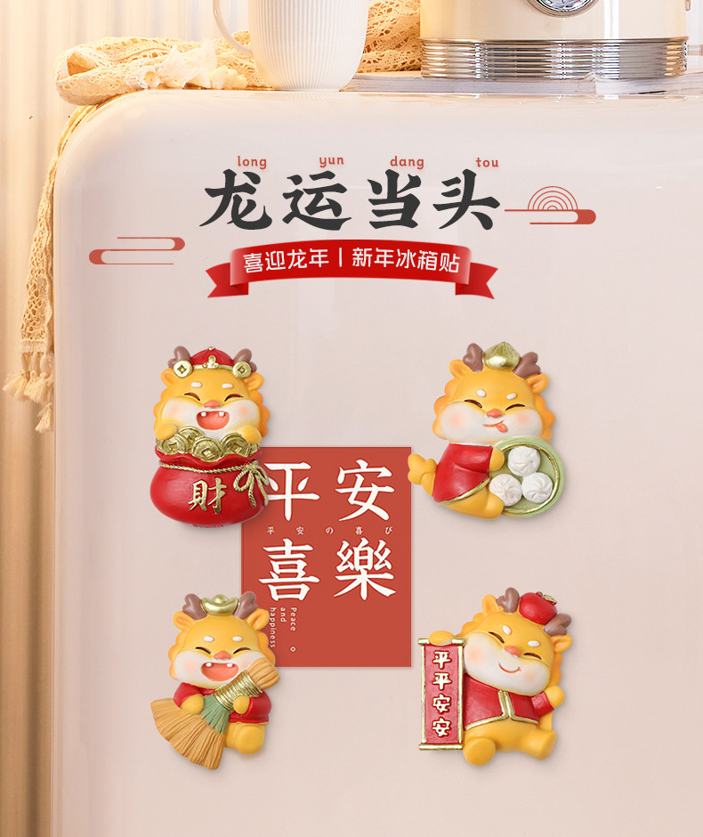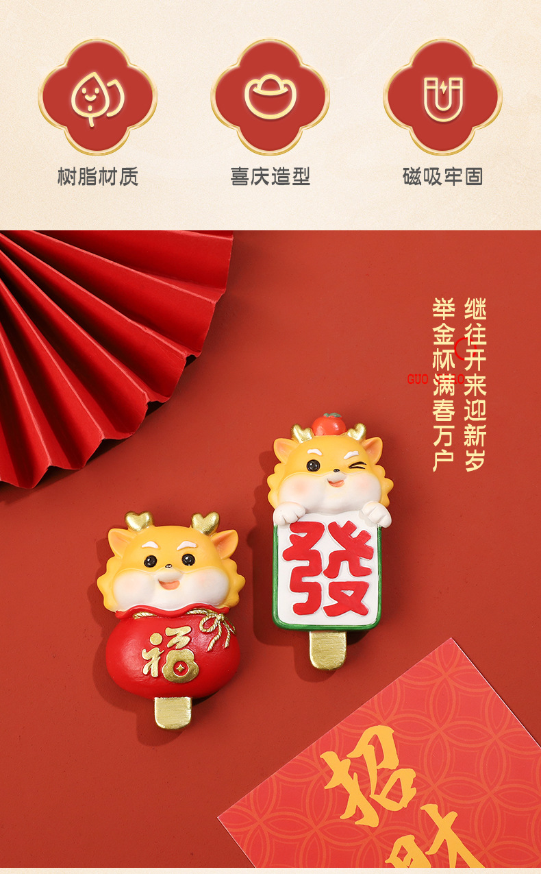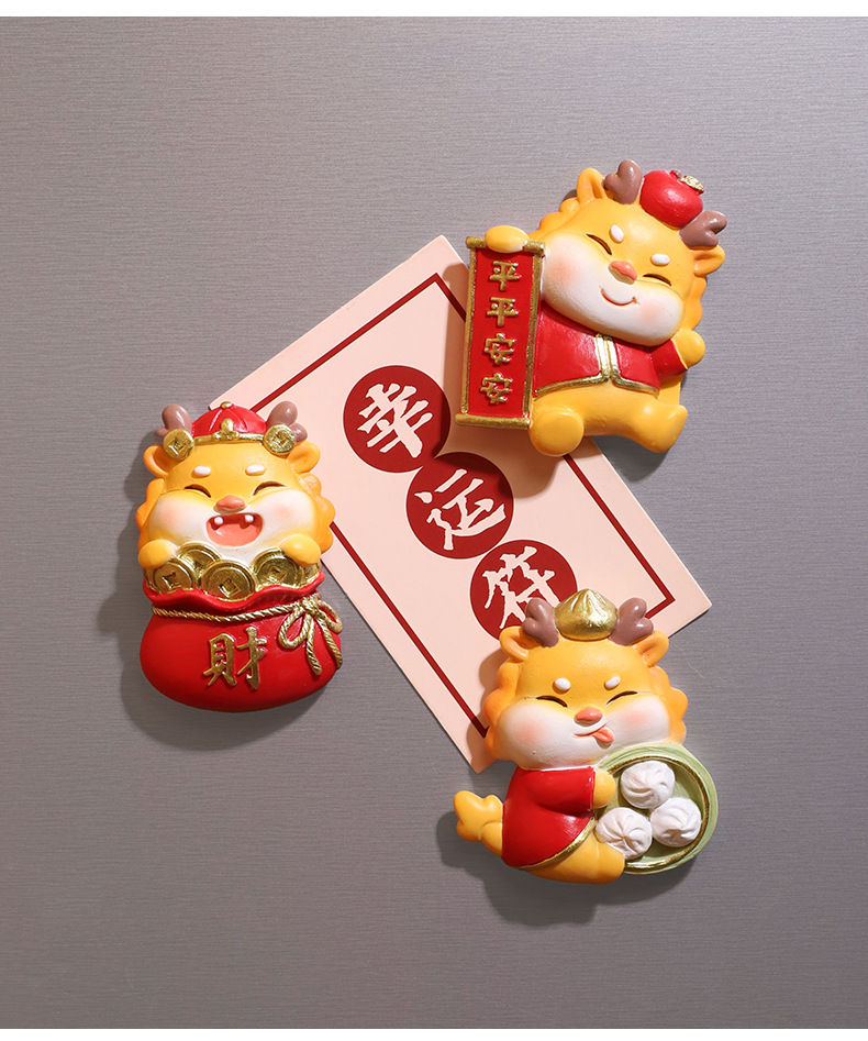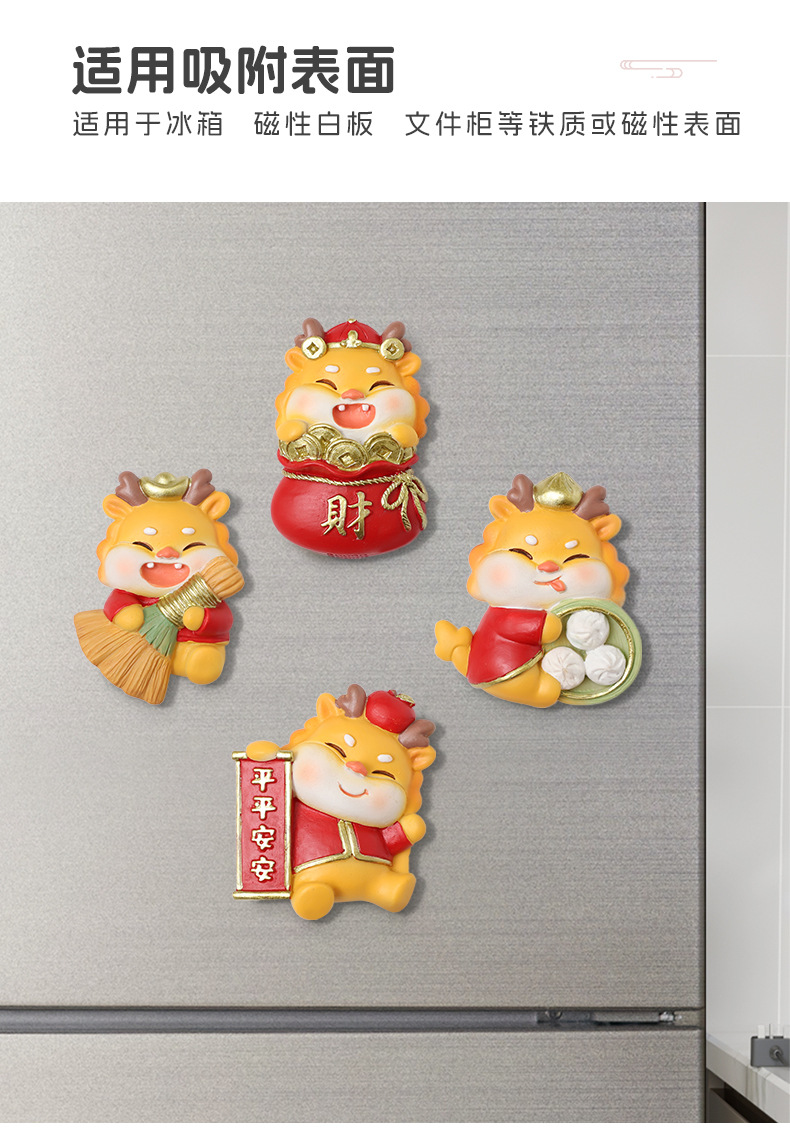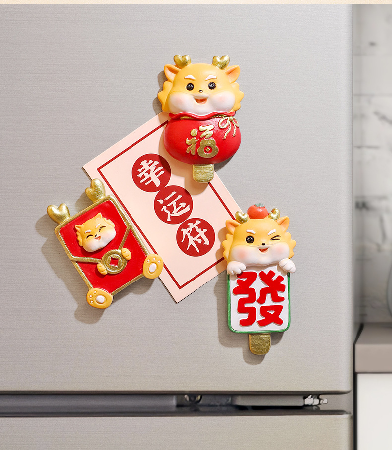 双12抢先购!【贴上磁贴!冰箱变魔方】国潮喜庆龙年磁贴磁力冰箱贴,树脂吸力贴冰箱门卡通可爱装饰白板贴,吸力强劲,不易脱落,快来装饰冰箱门,点亮新春气氛