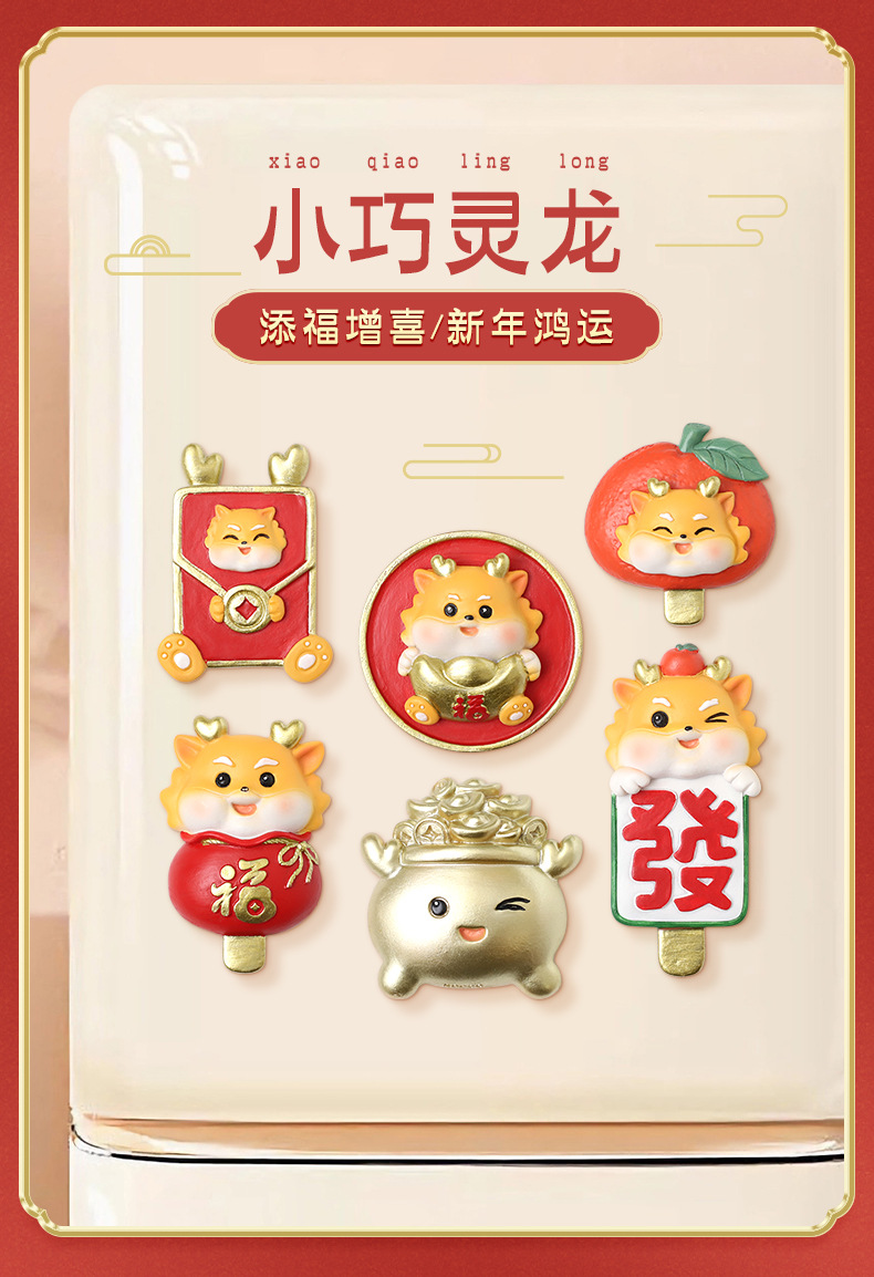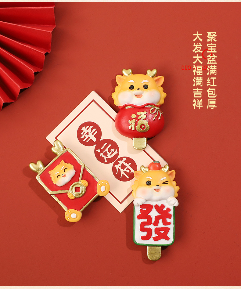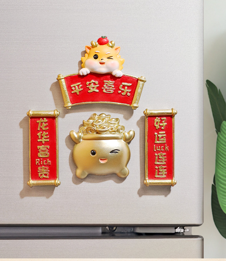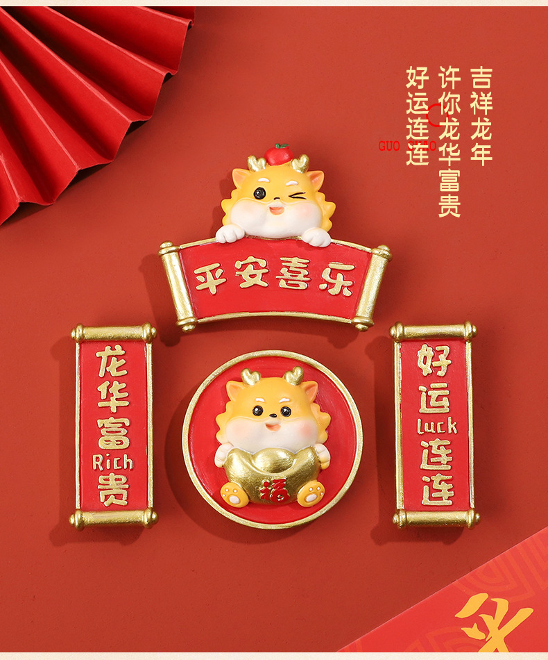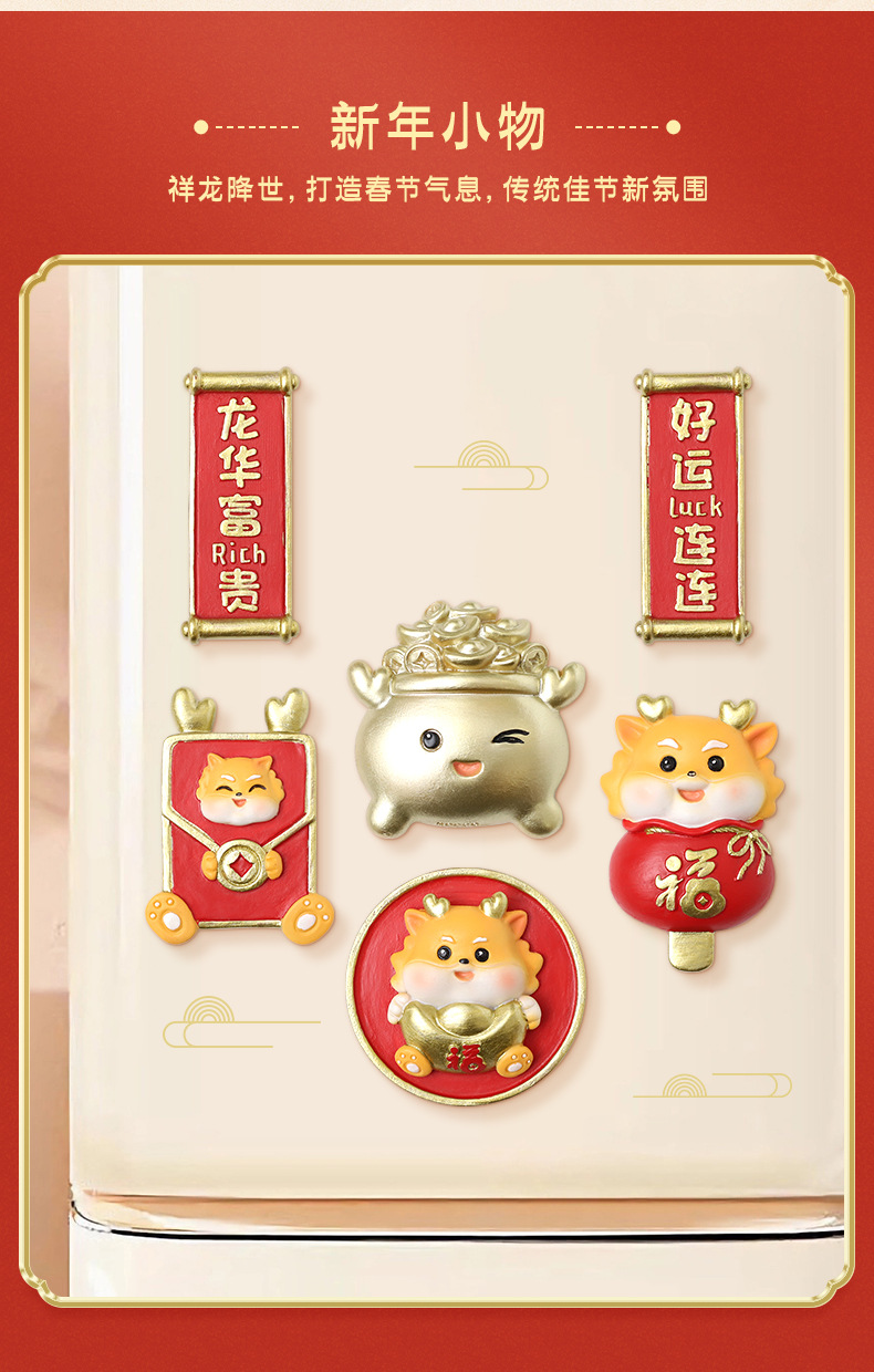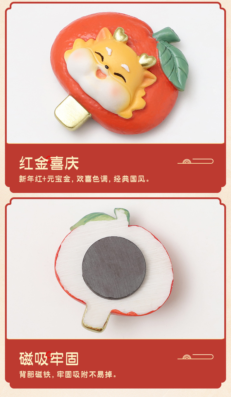 双12抢先购!【贴上磁贴!冰箱变魔方】国潮喜庆龙年磁贴磁力冰箱贴,树脂吸力贴冰箱门卡通可爱装饰白板贴,吸力强劲,不易脱落,快来装饰冰箱门,点亮新春气氛