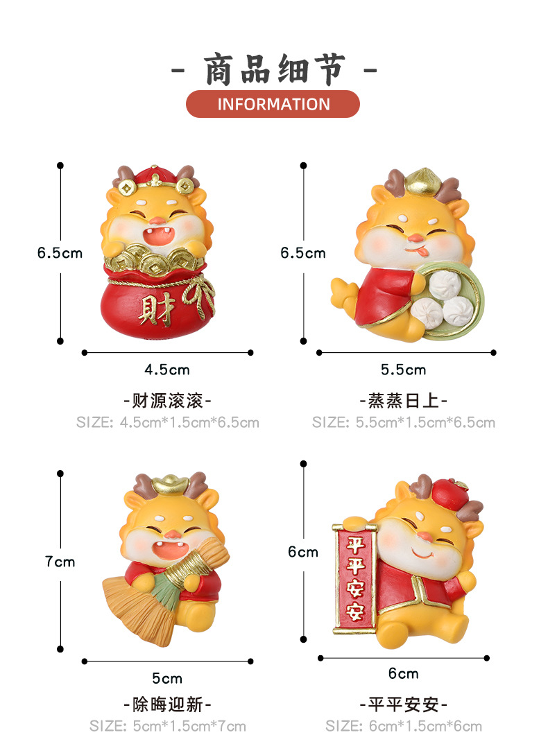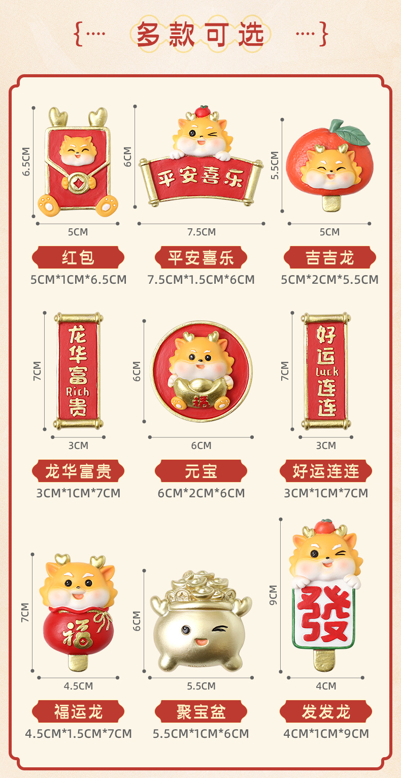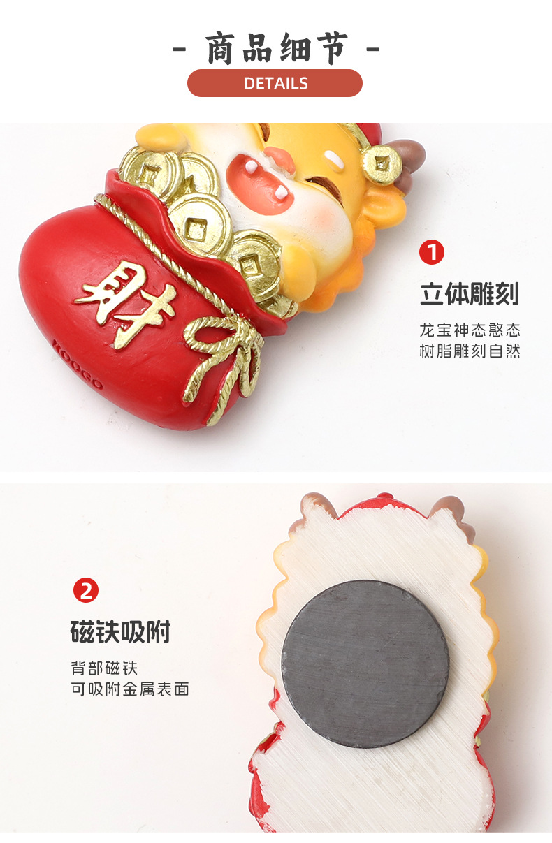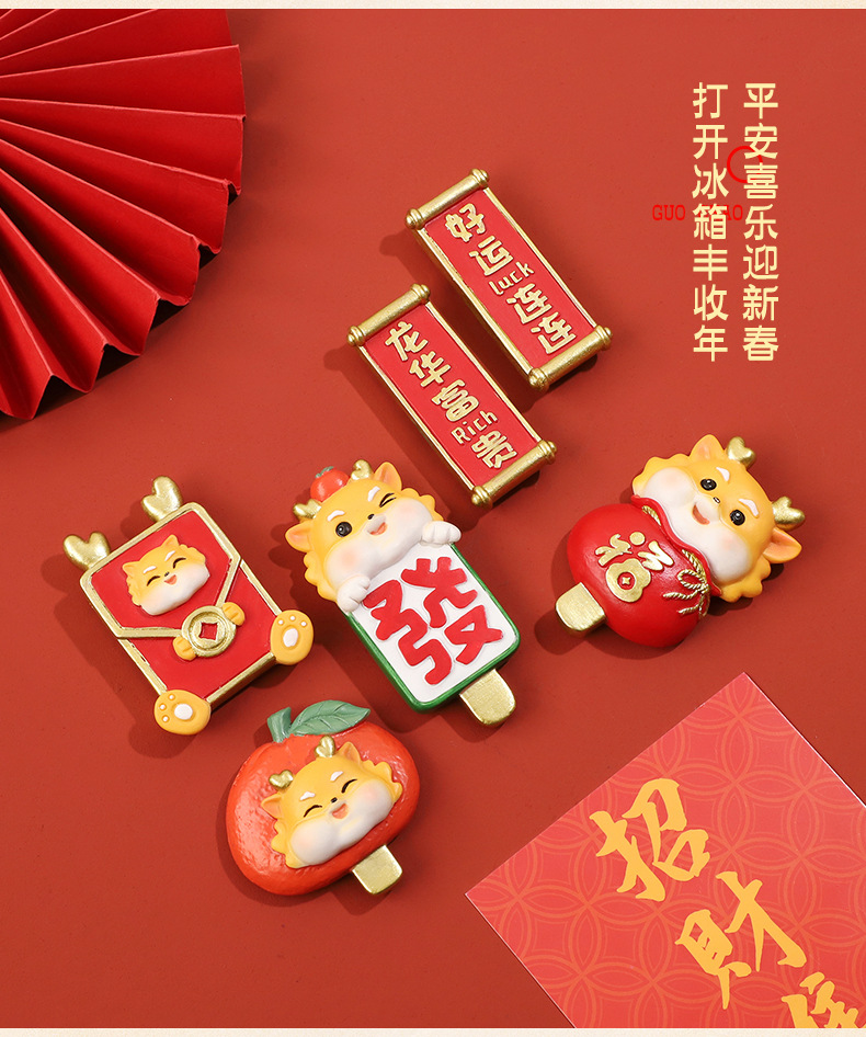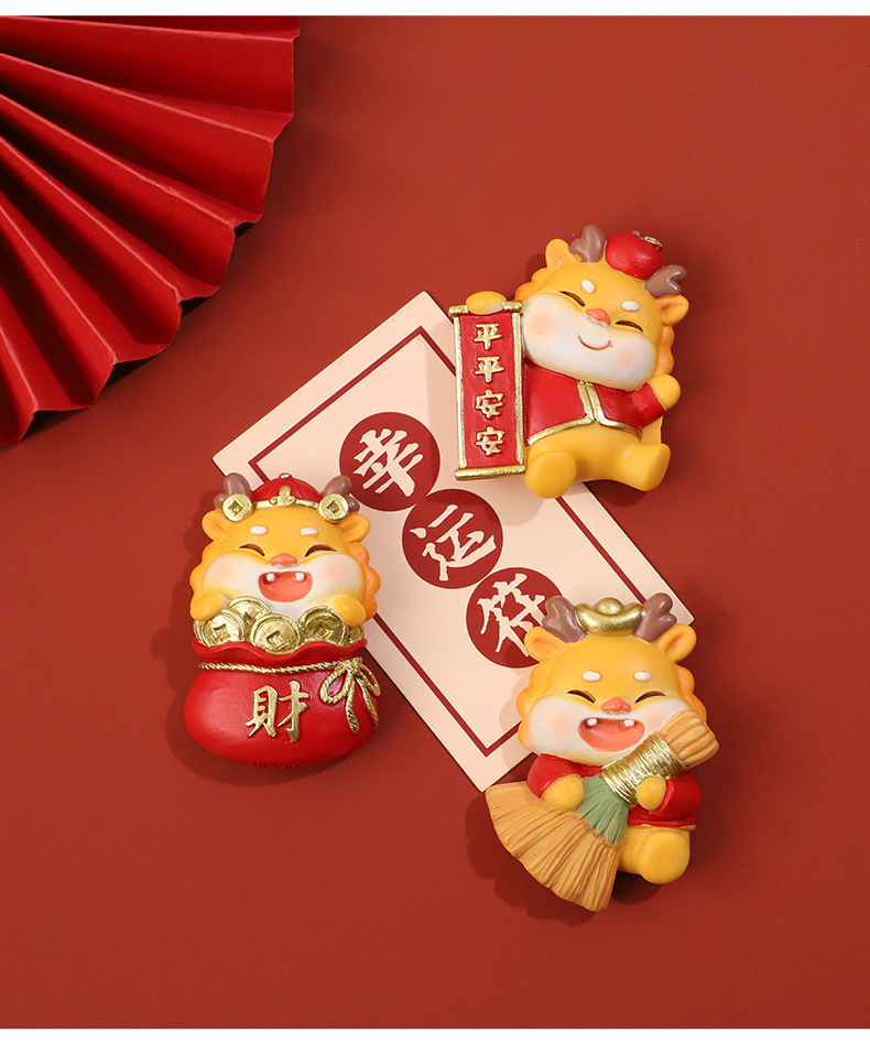 双12抢先购!【贴上磁贴!冰箱变魔方】国潮喜庆龙年磁贴磁力冰箱贴,树脂吸力贴冰箱门卡通可爱装饰白板贴,吸力强劲,不易脱落,快来装饰冰箱门,点亮新春气氛