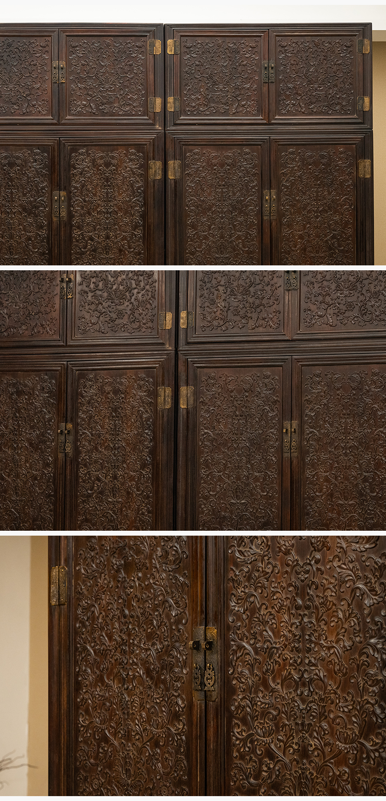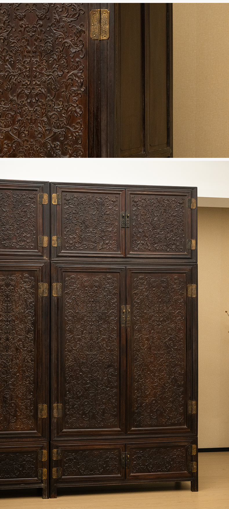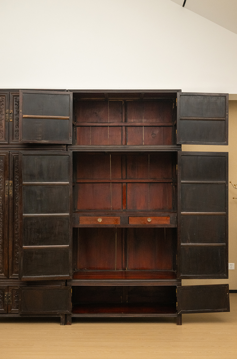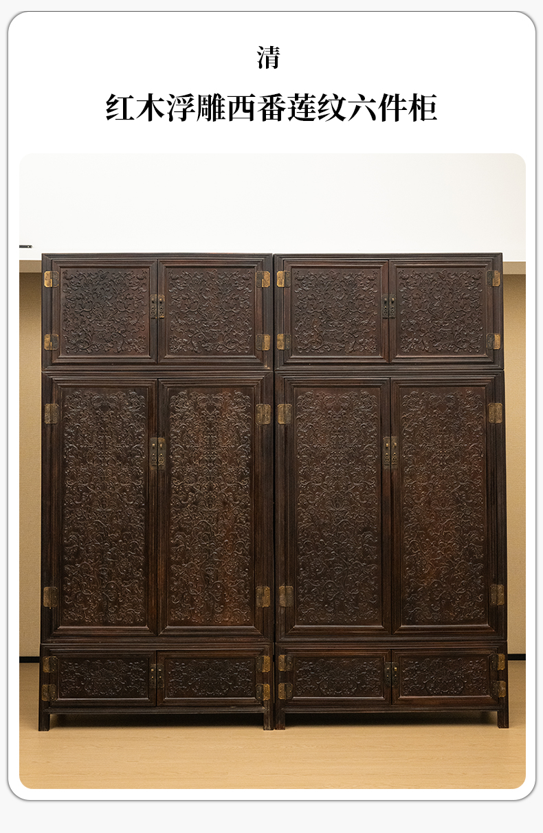 清 红木浮雕西番莲纹六件柜