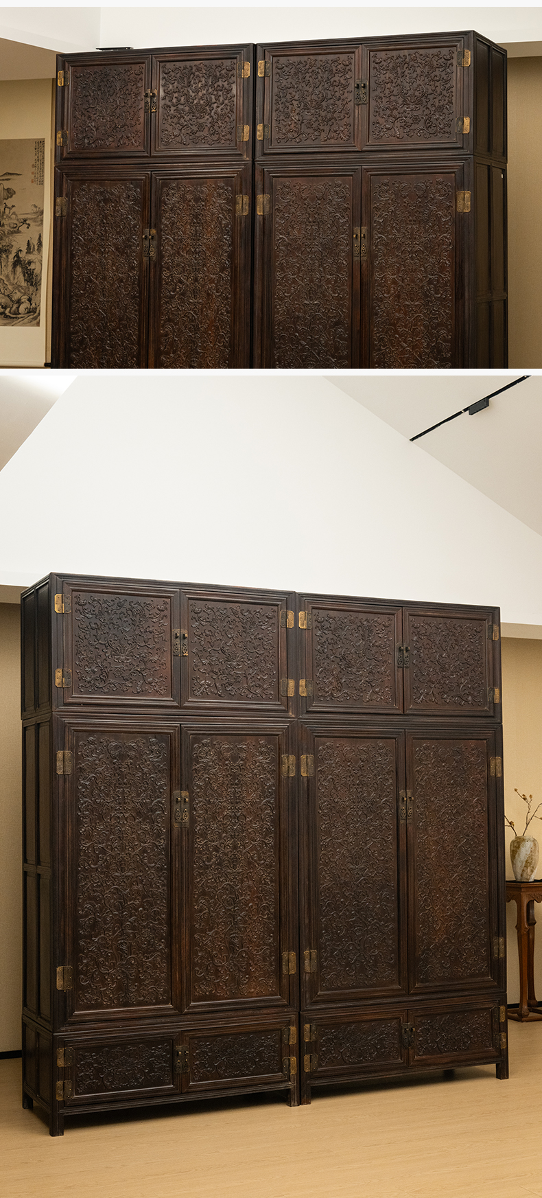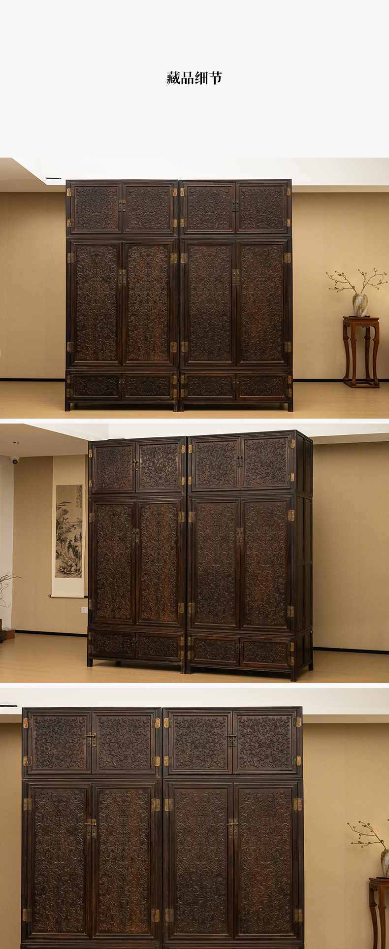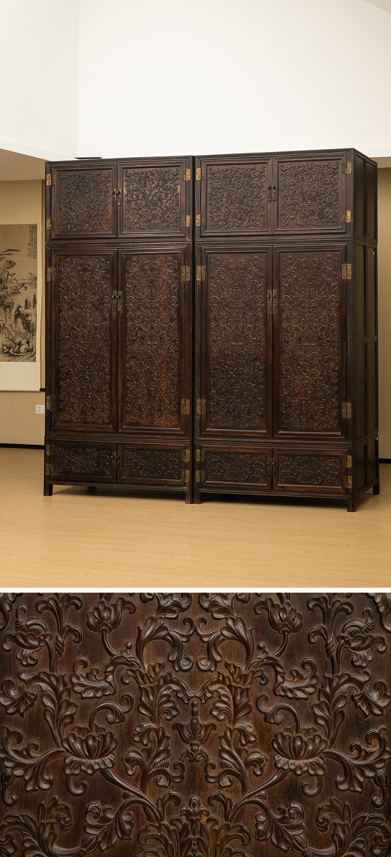 清 红木浮雕西番莲纹六件柜