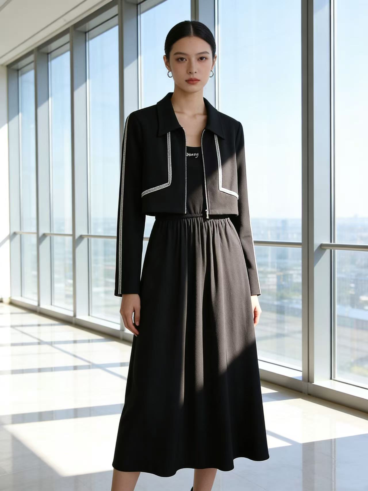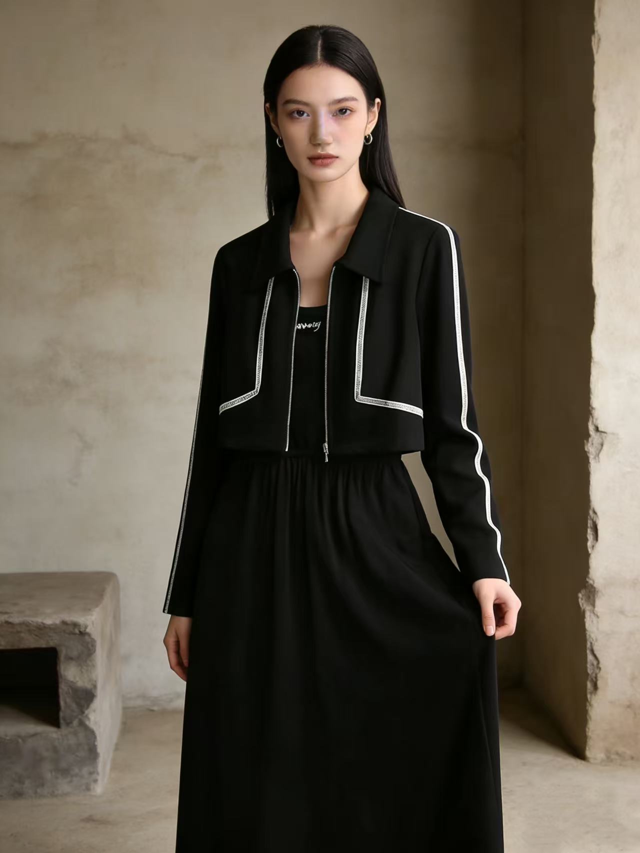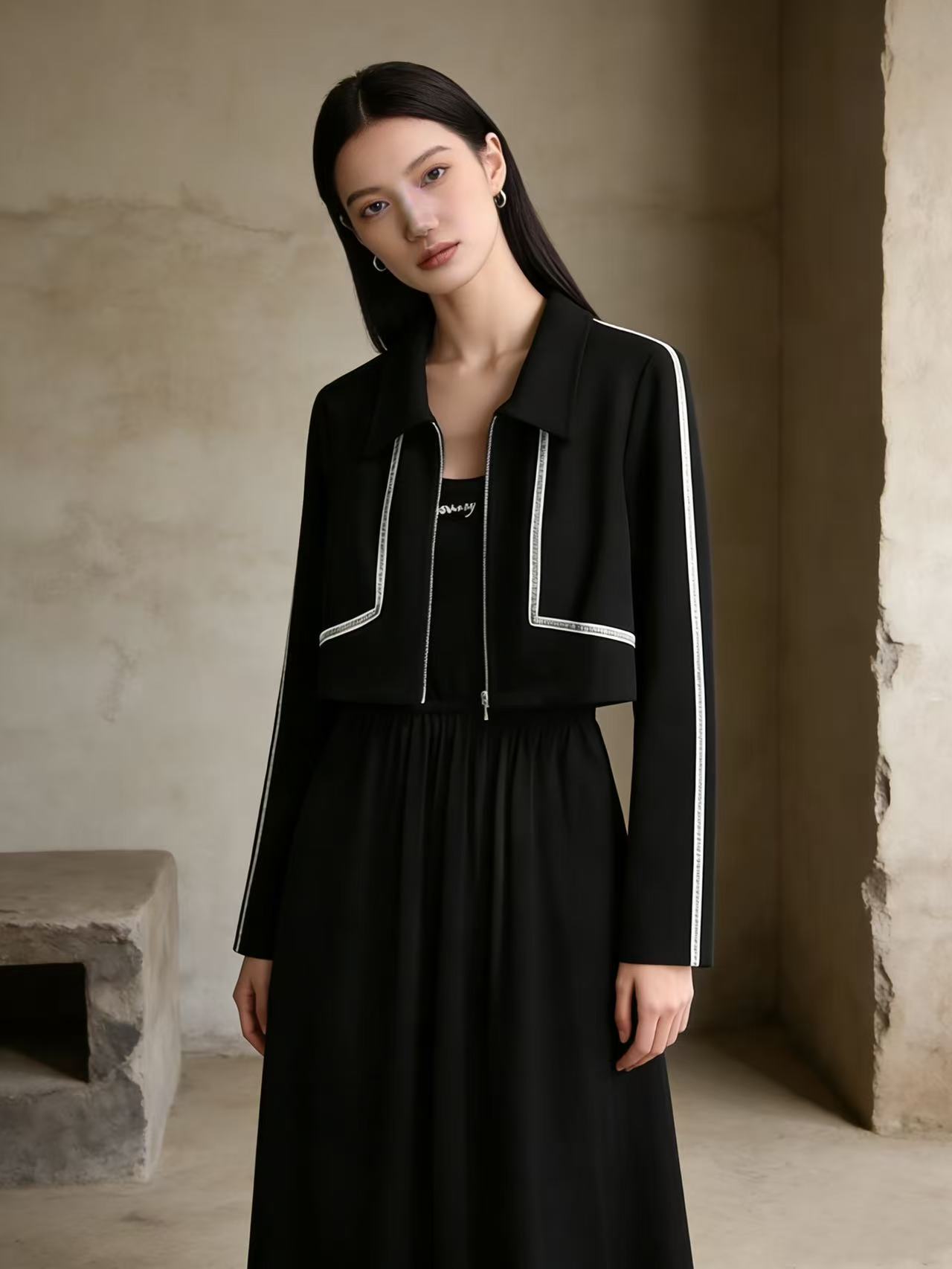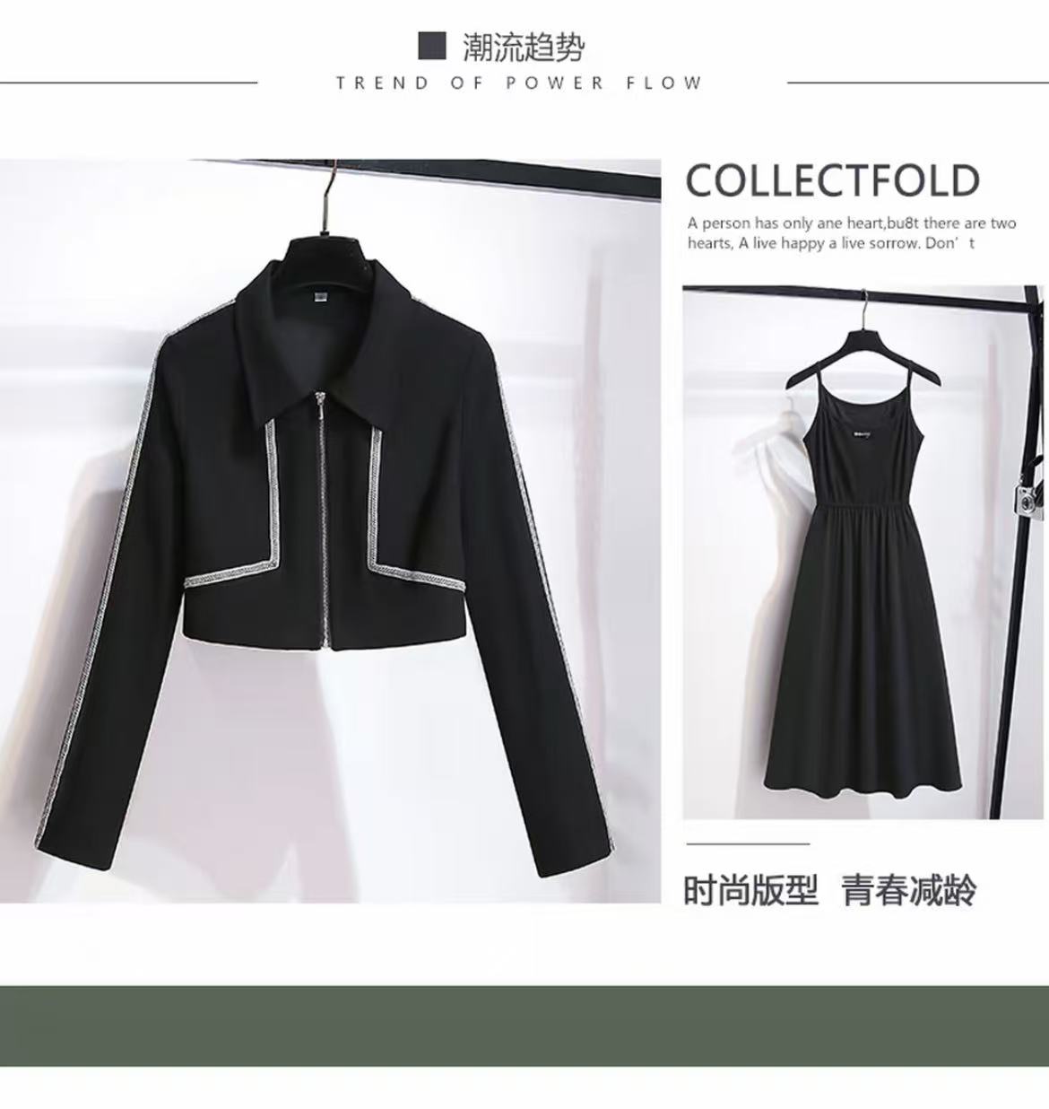 418良粉节|2026 活动爆款~【自营】衣周期~(二件套)Q17翻领小外套➕吊带连衣裙套装-喜出