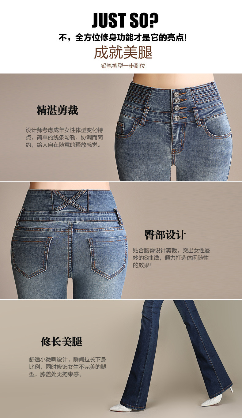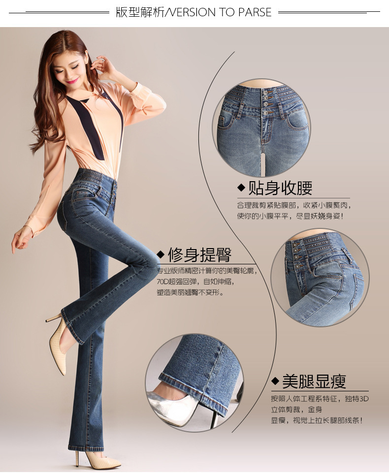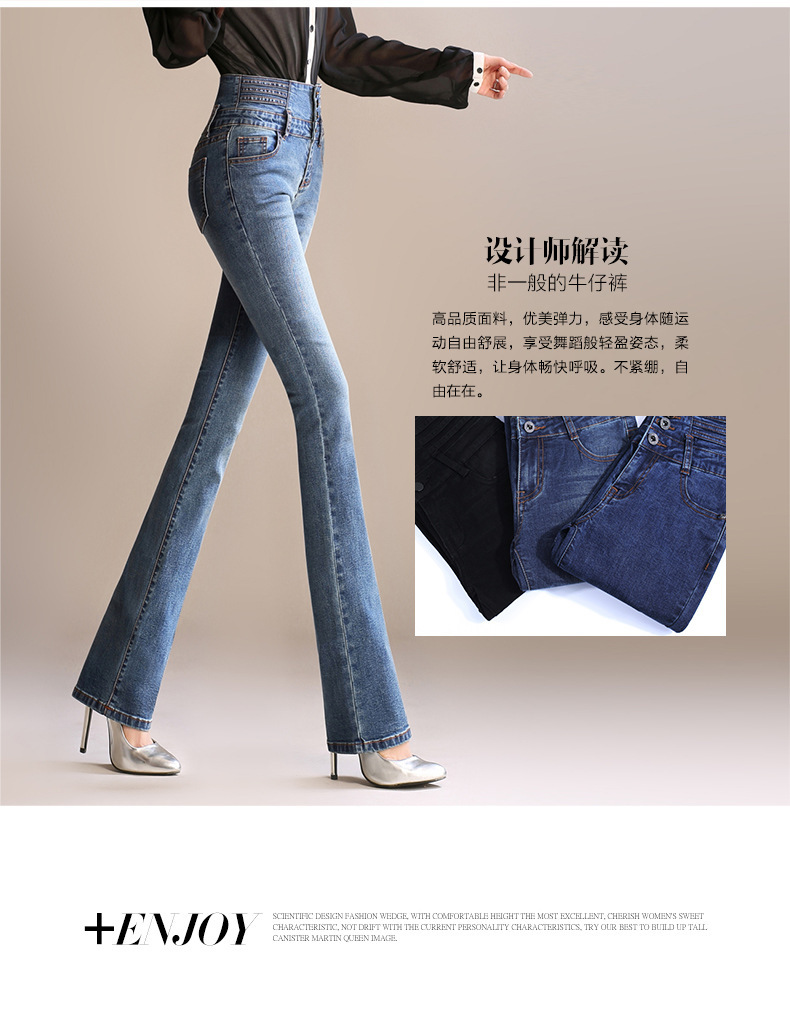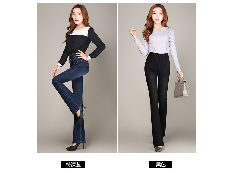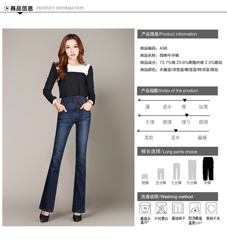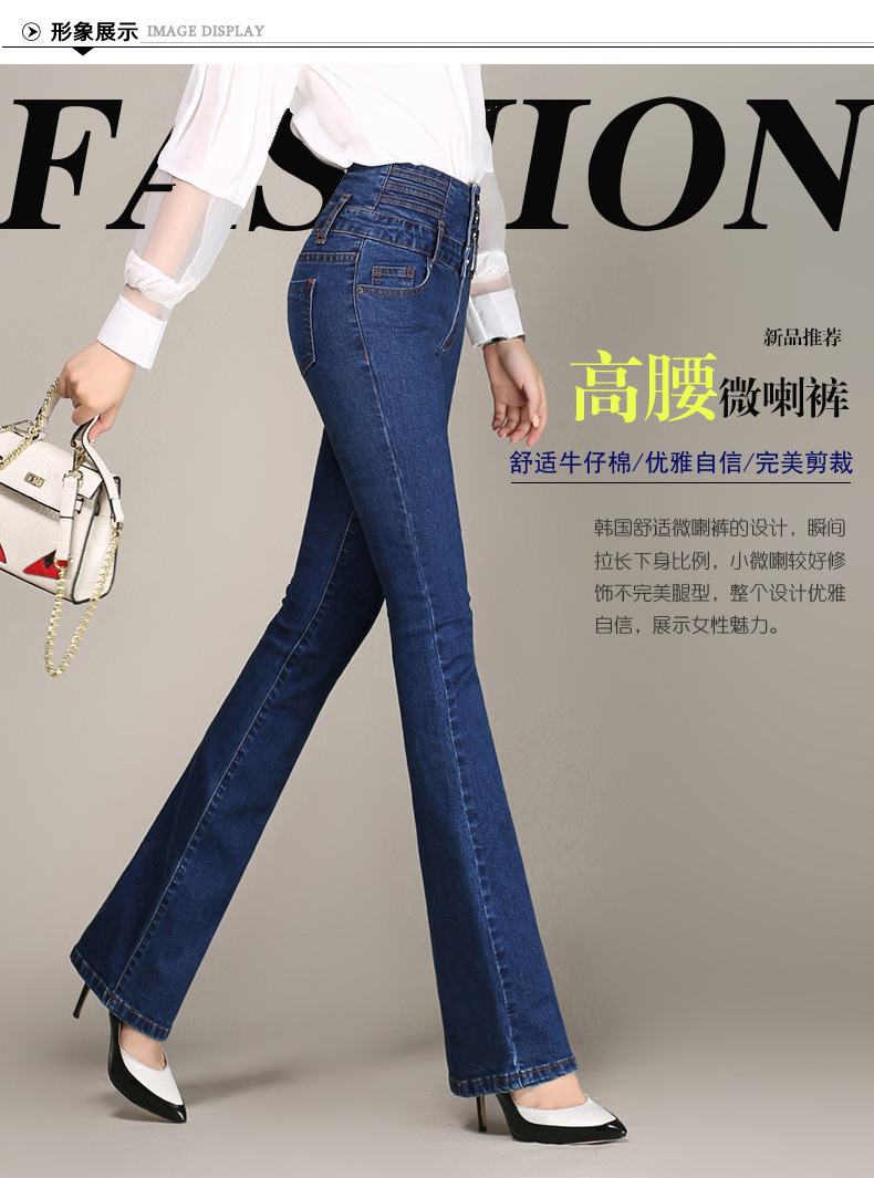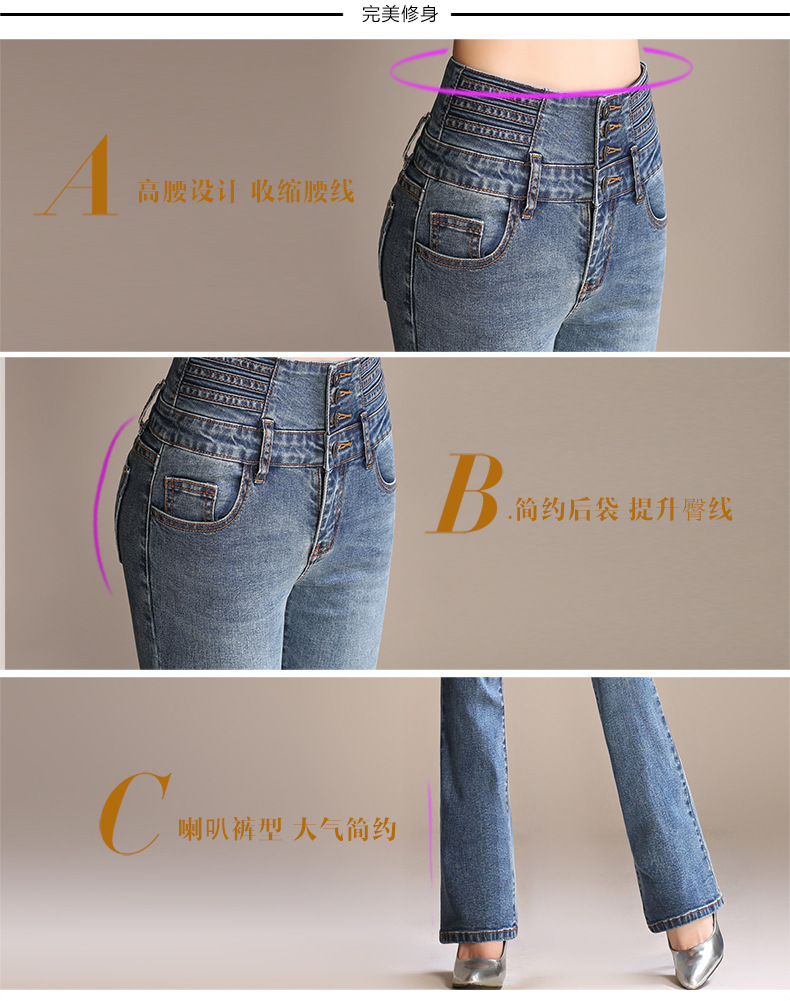 YY-A98秋季新款排扣复古微喇牛仔裤