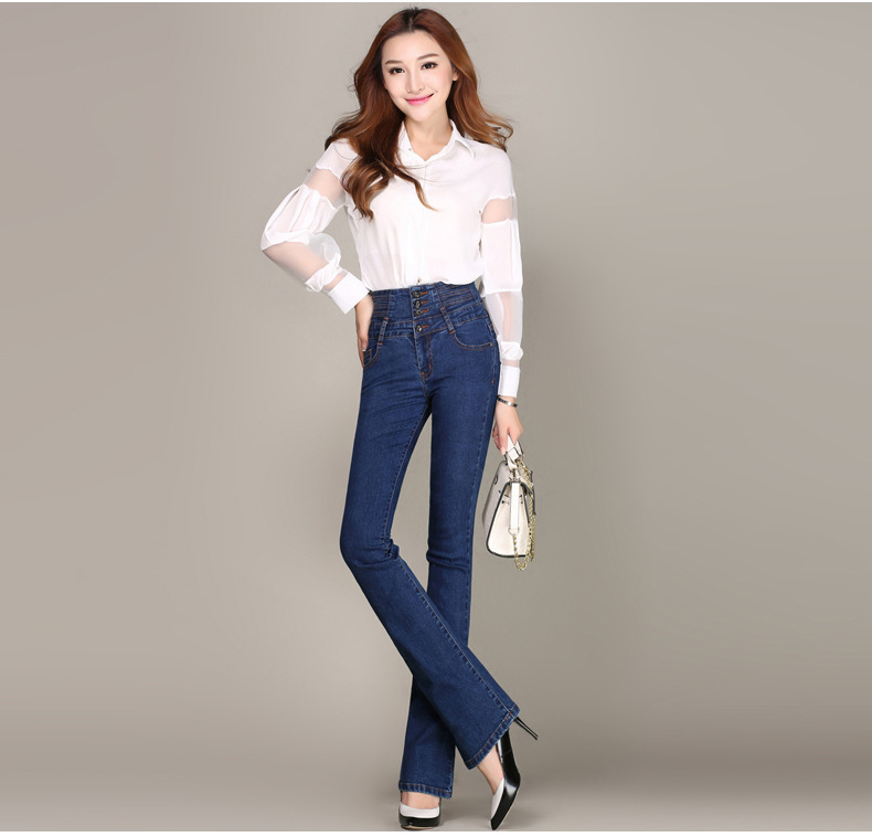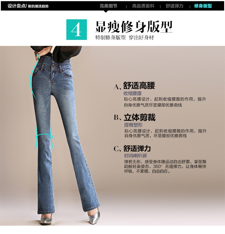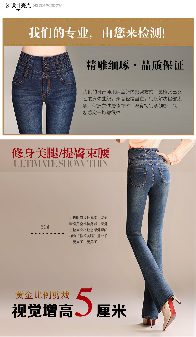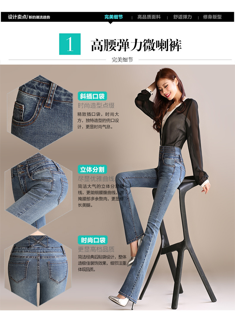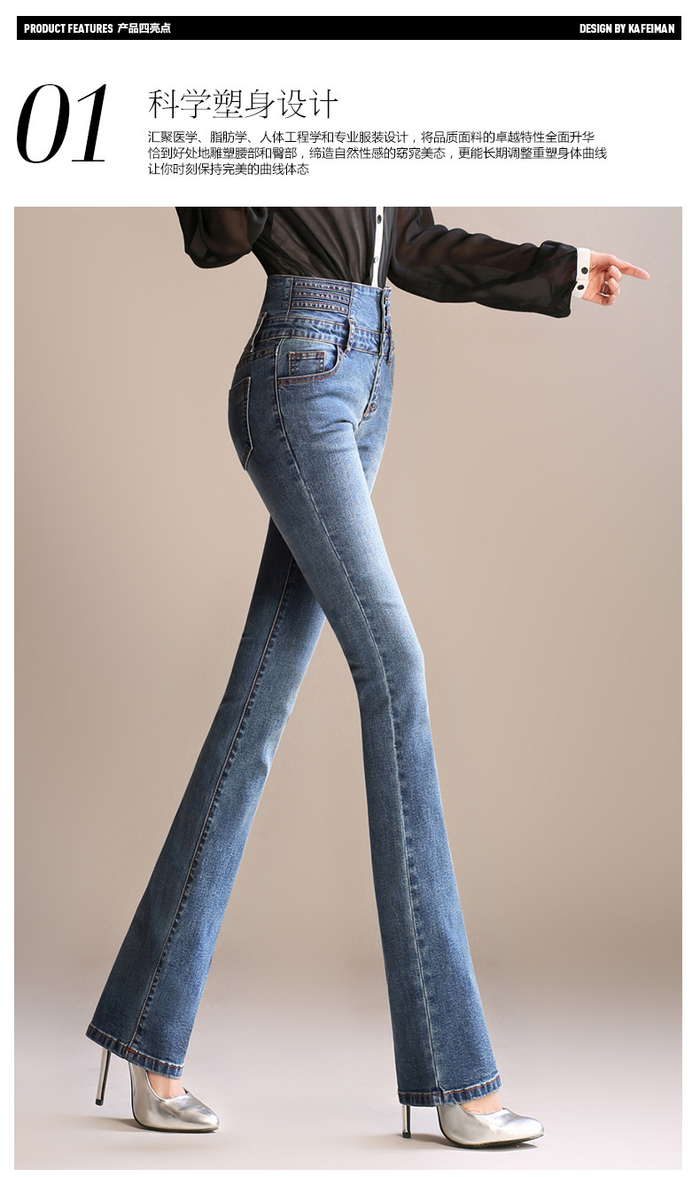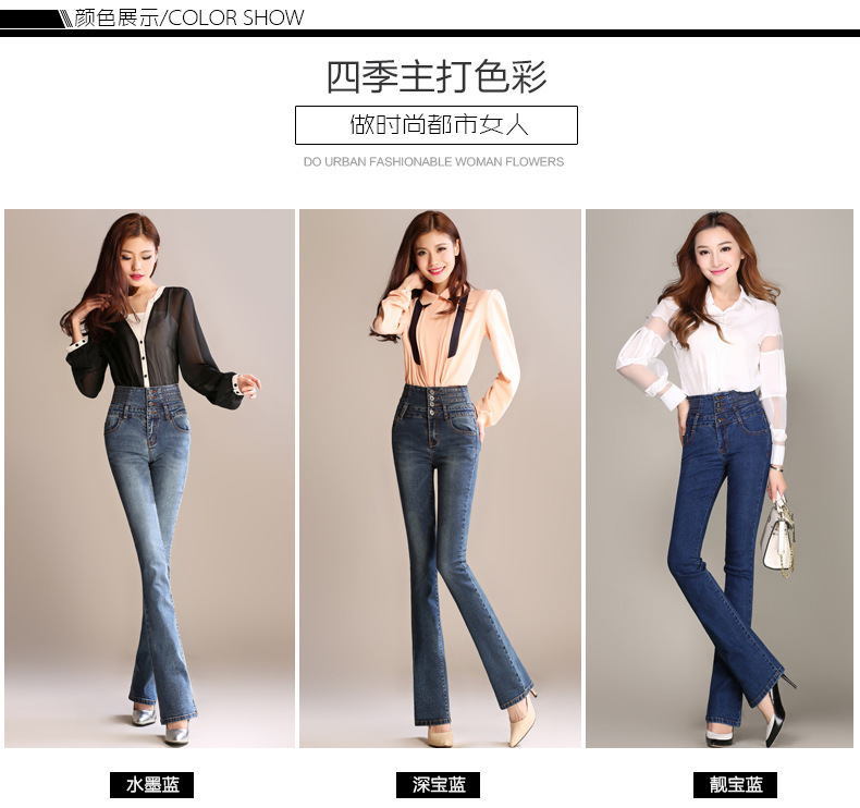 YY-A98秋季新款排扣复古微喇牛仔裤