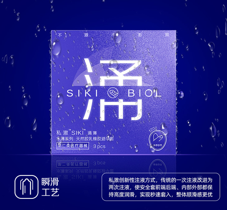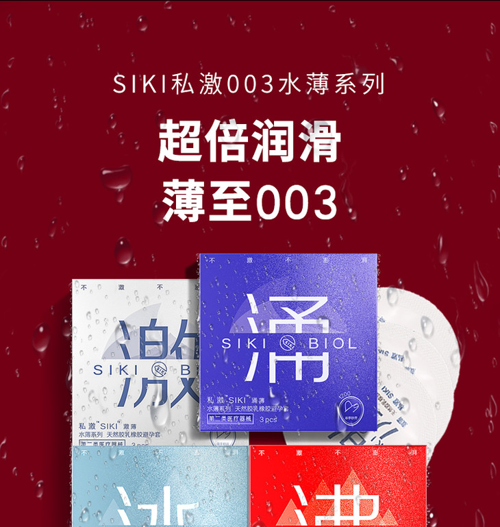 私激siki 天然胶乳橡胶避孕套 003玻尿酸持久润滑 涌感 3只装