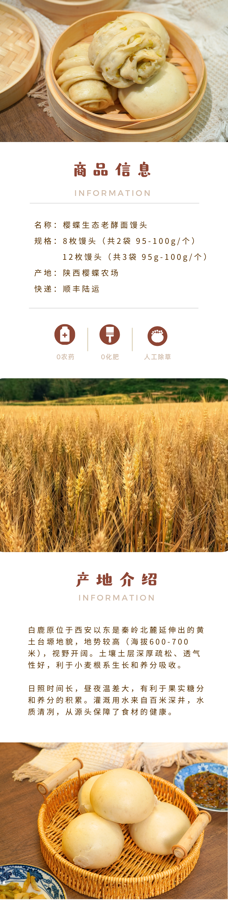 樱蝶农场 生态老酵面馒头 不添加增白、增筋、防腐剂 麦香浓郁 口感劲道 顺丰发货
