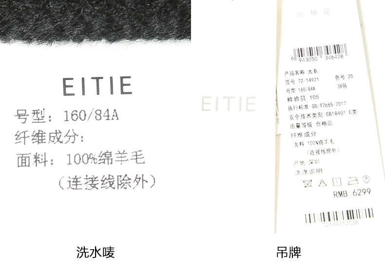 EITIE爱特爱冬季新款保暖100%绵羊毛外套大衣7214921