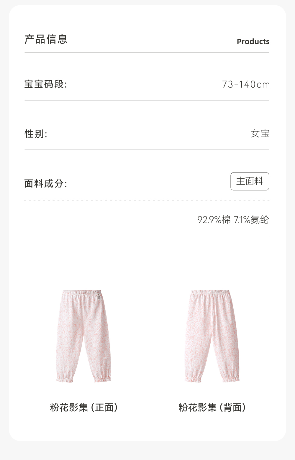 【商场同款】英氏童装家居服裤子睡衣女宝居家弹力拆裤春夏新款Z