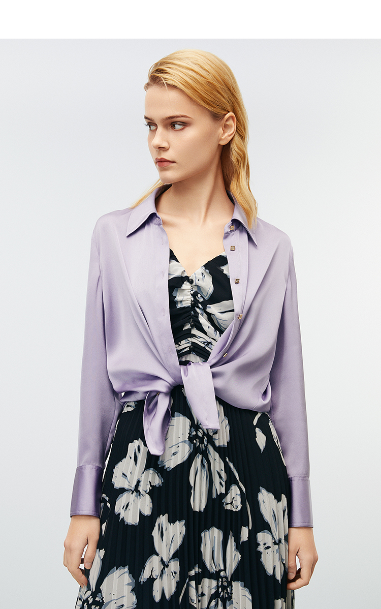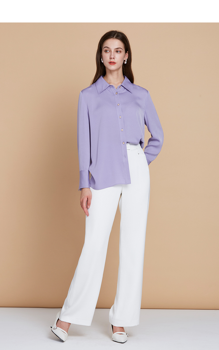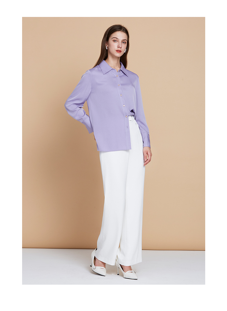 EITIE爱特爱秋季新款气质精致通勤OL百搭直筒显瘦紫色衬衫7909601