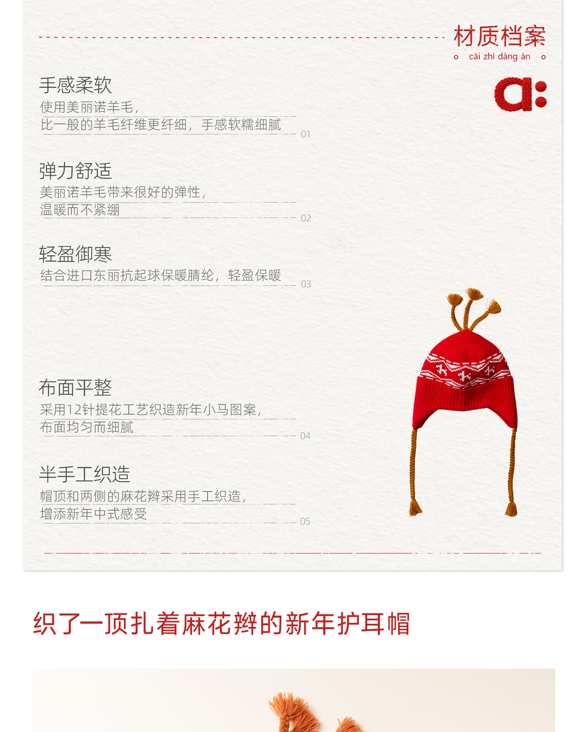 幼岚美丽诺羊毛【麻花辫护耳帽】儿童帽子25秋冬新品保暖
