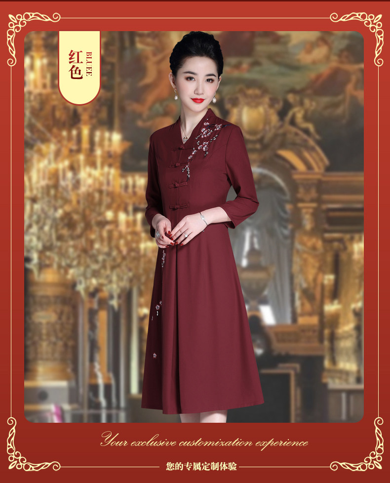 婚礼妈妈秋冬新款,喜婆婆宴礼服阔太太旗袍刺绣连衣裙两件套CC-86093