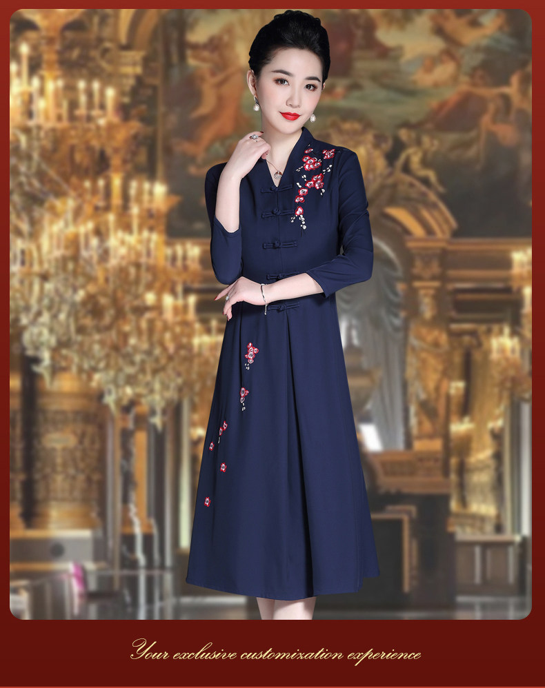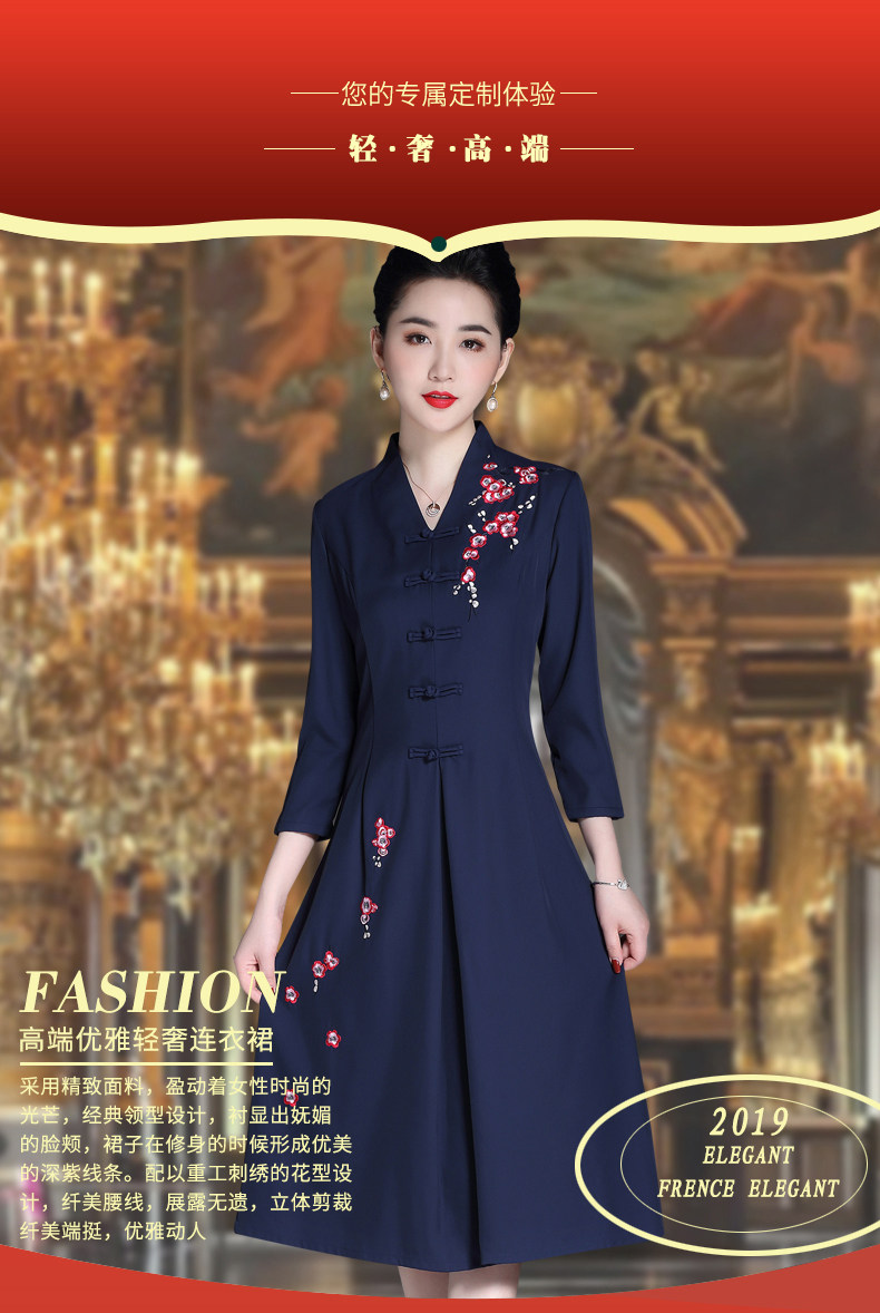 新款复古立领盘扣九分袖收身梅花刺绣改良旗袍连衣裙ZQ-BY901
