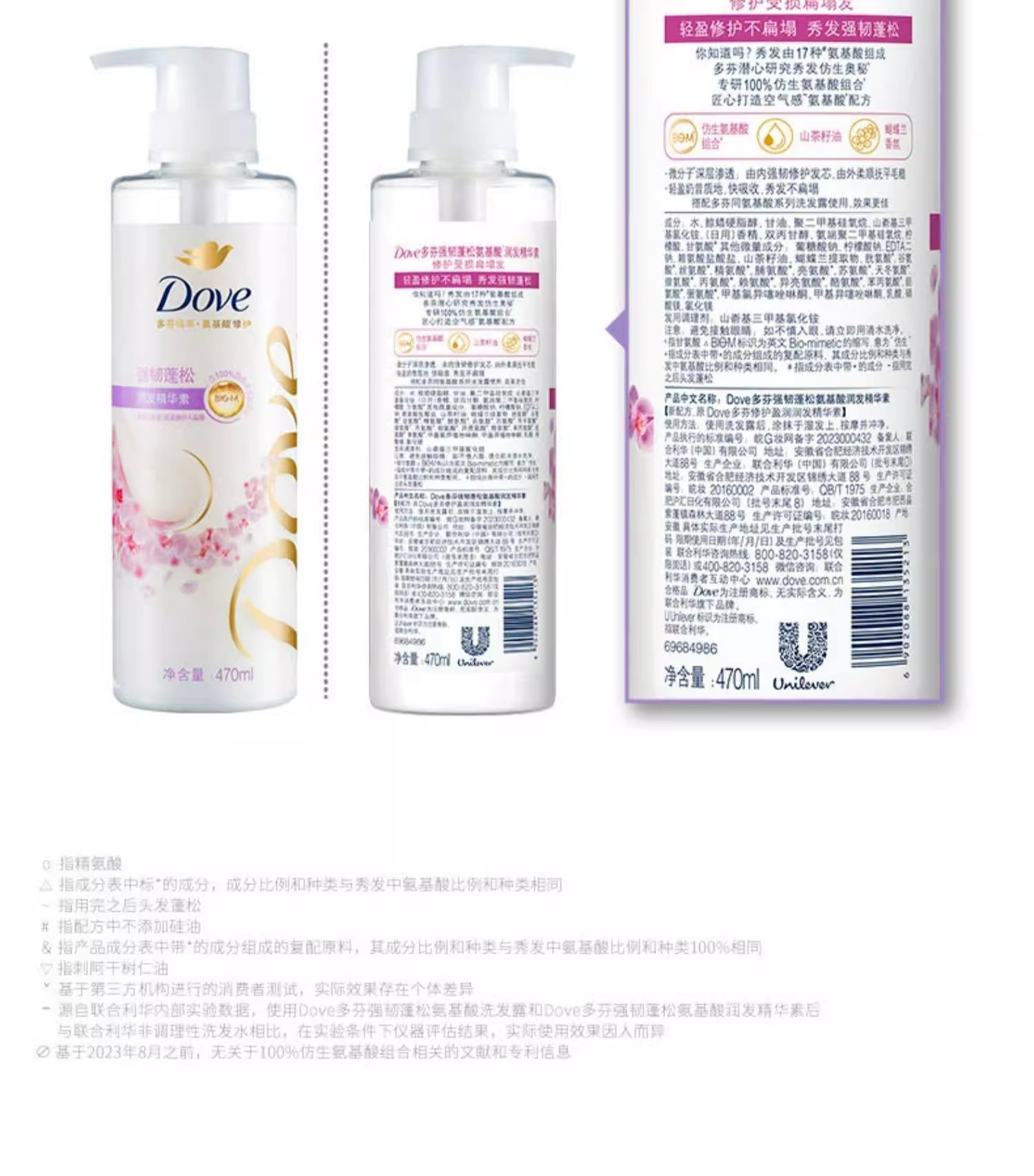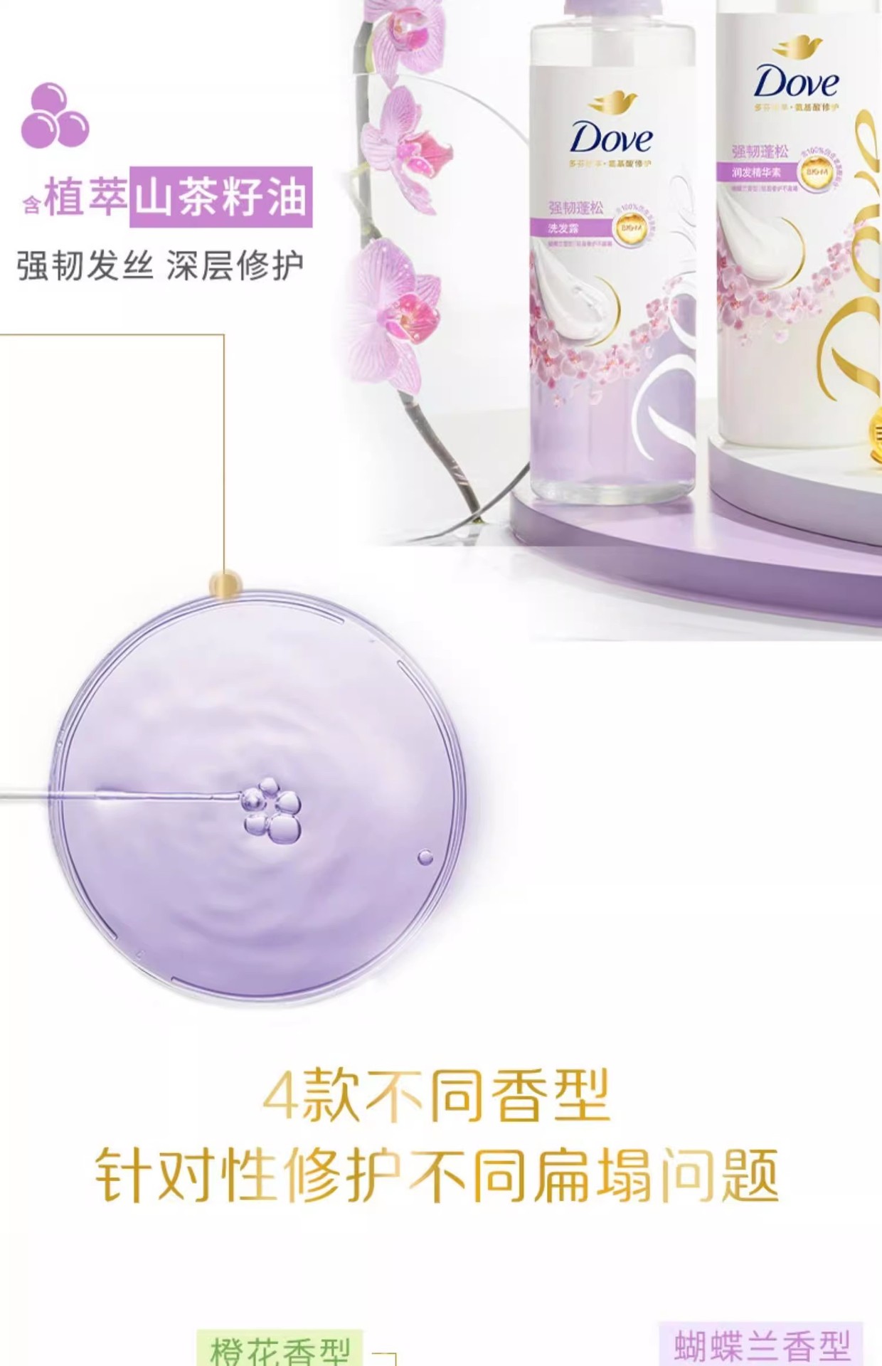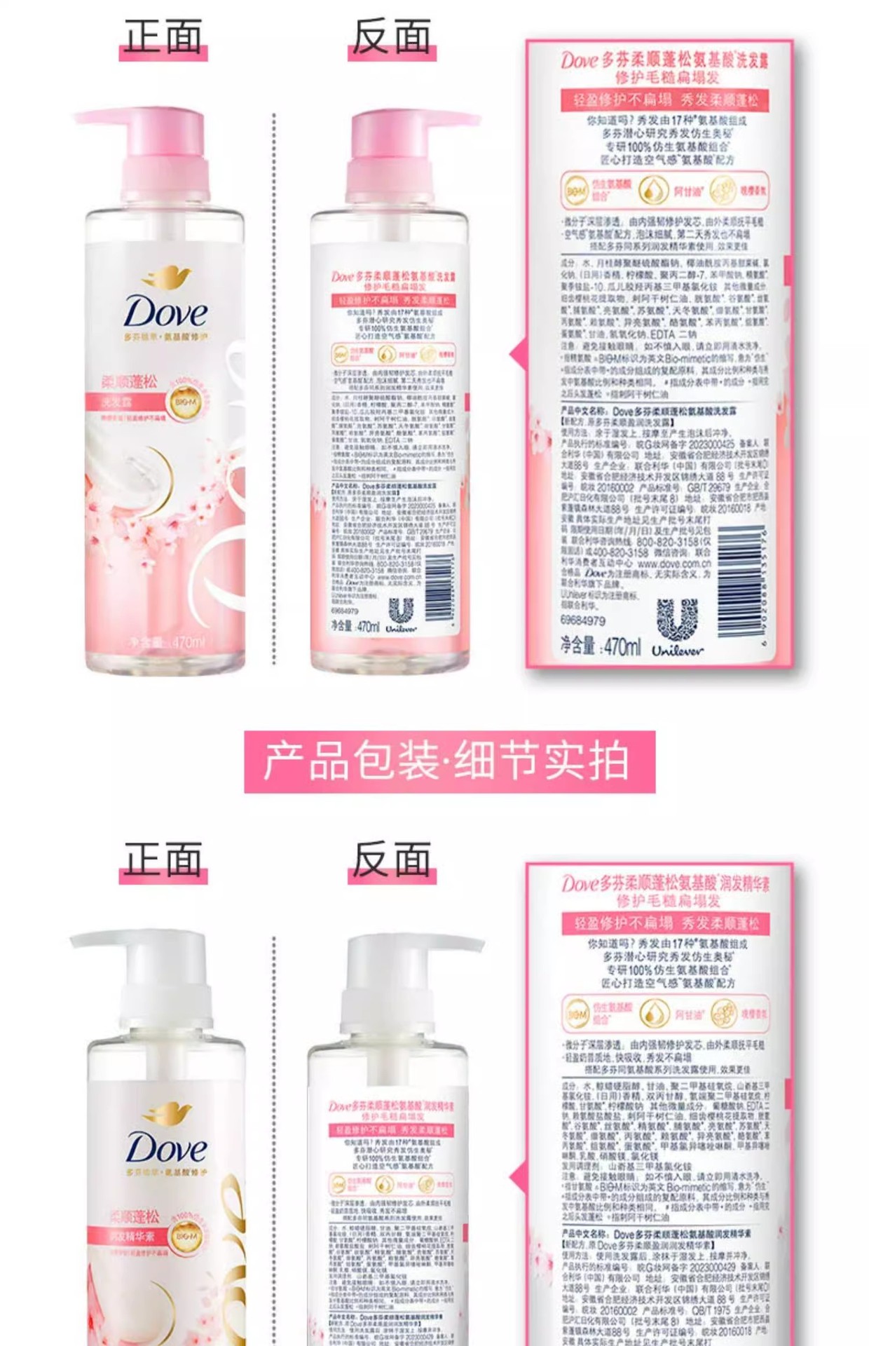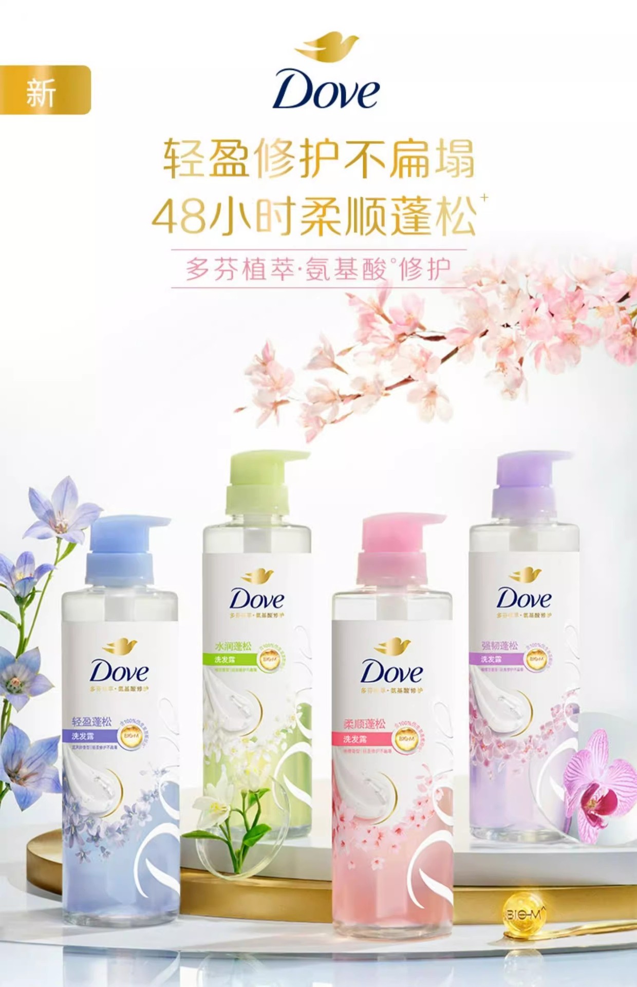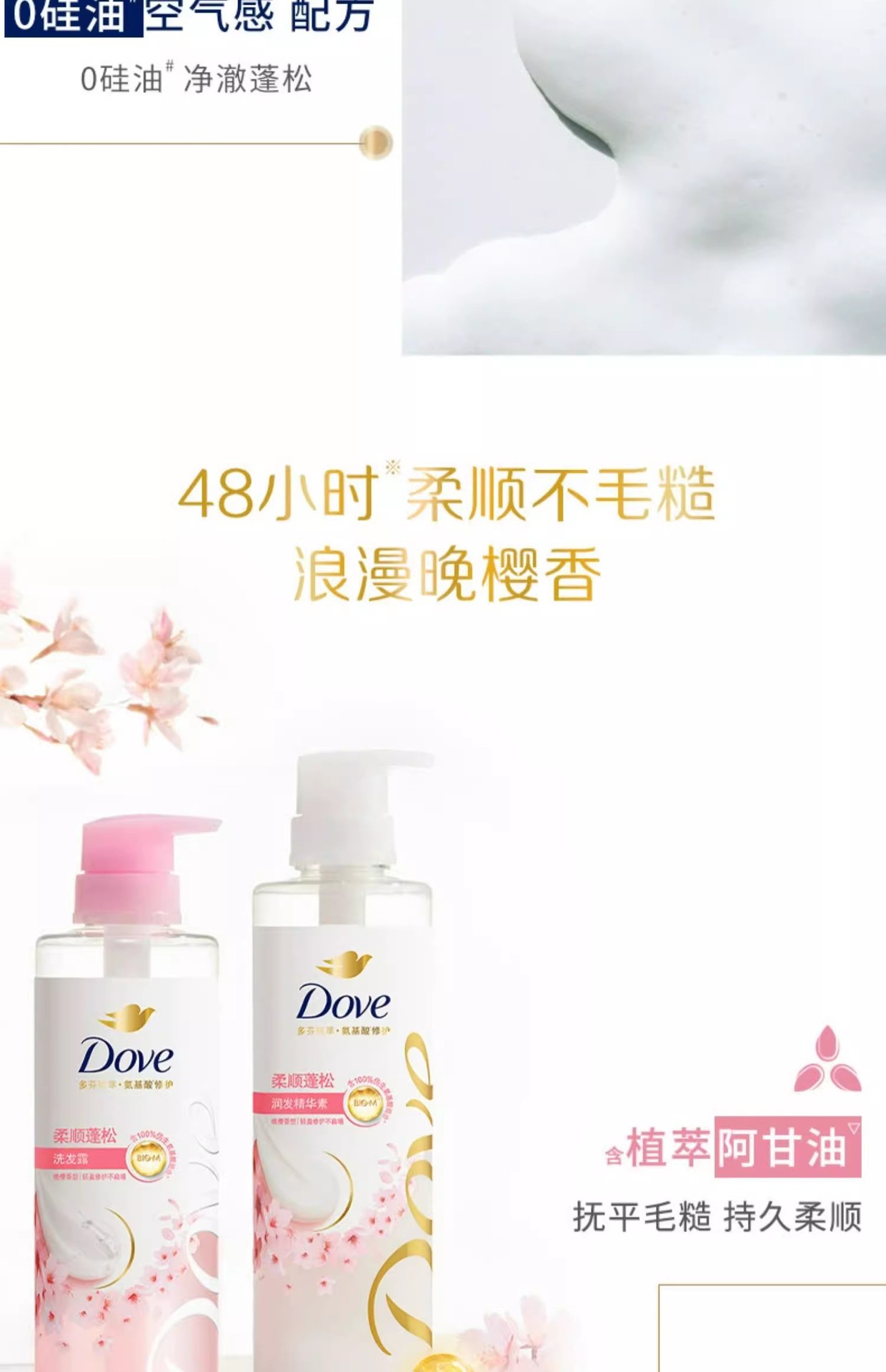 【品牌直发】多芬柔顺蓬松洗护发套装(470G+270ML)樱花香花心瓶