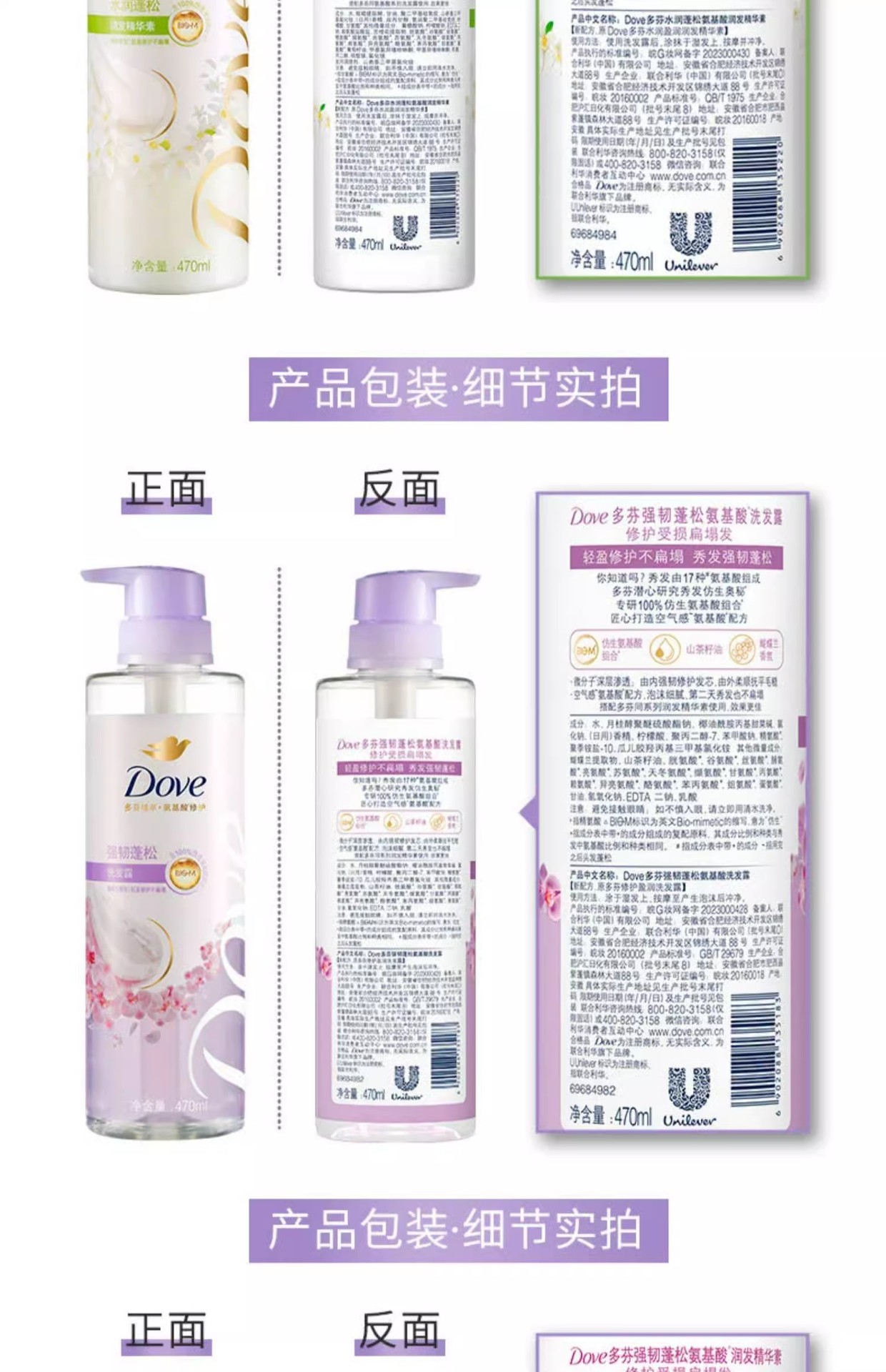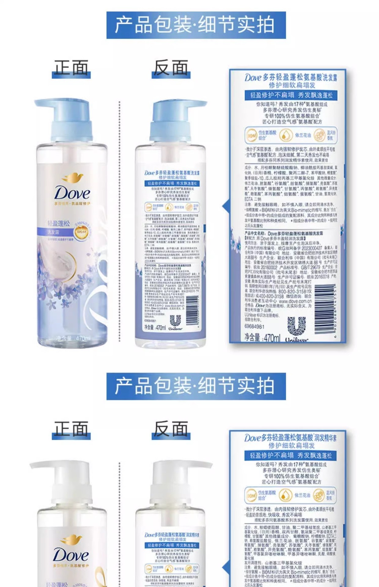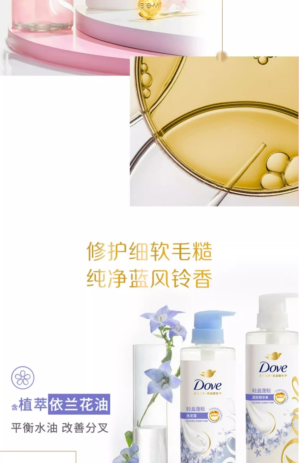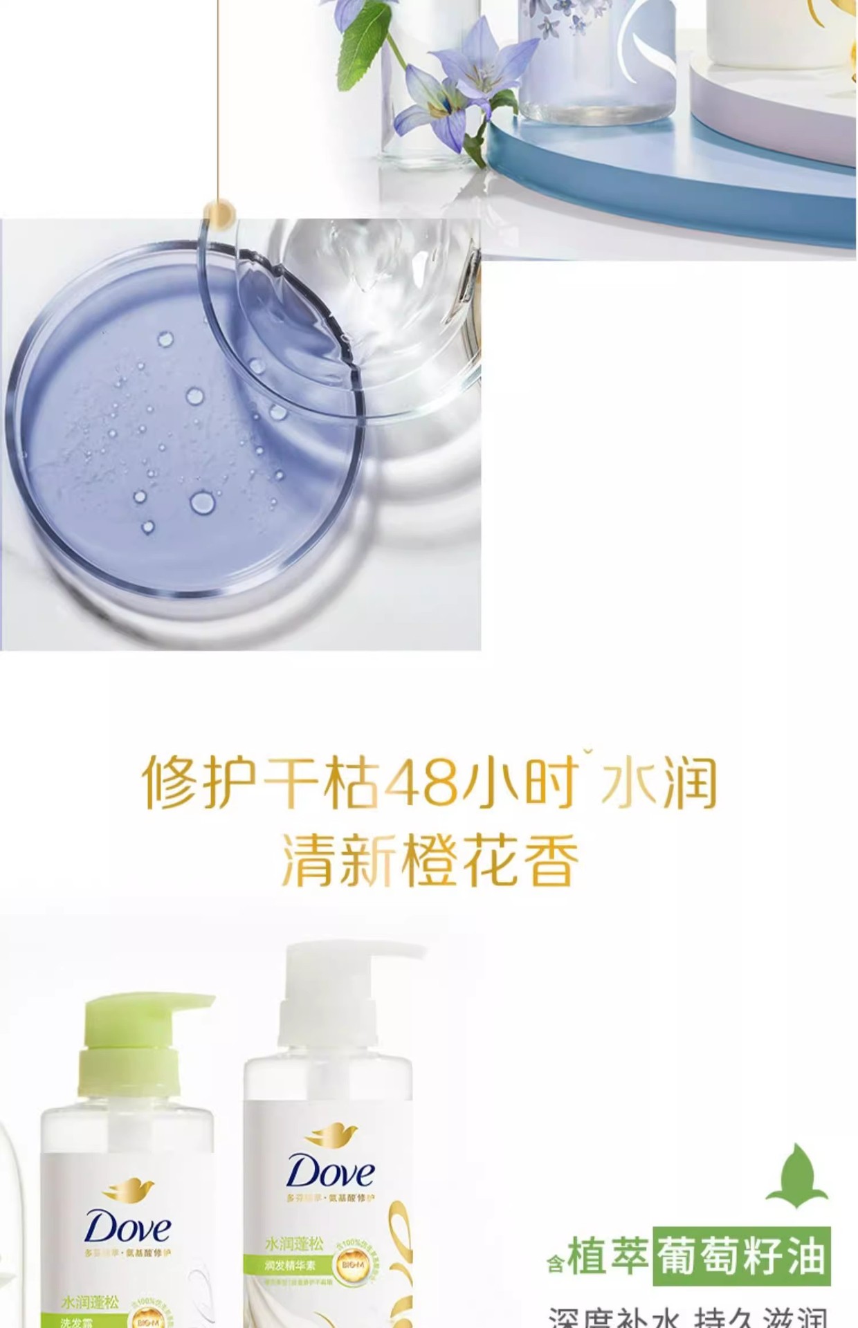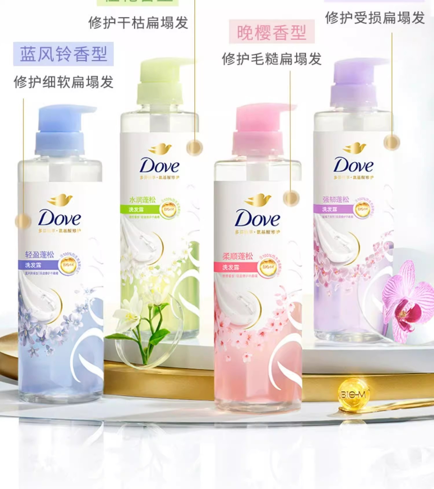 【品牌直发】多芬柔顺蓬松洗护发套装(470G+270ML)樱花香花心瓶