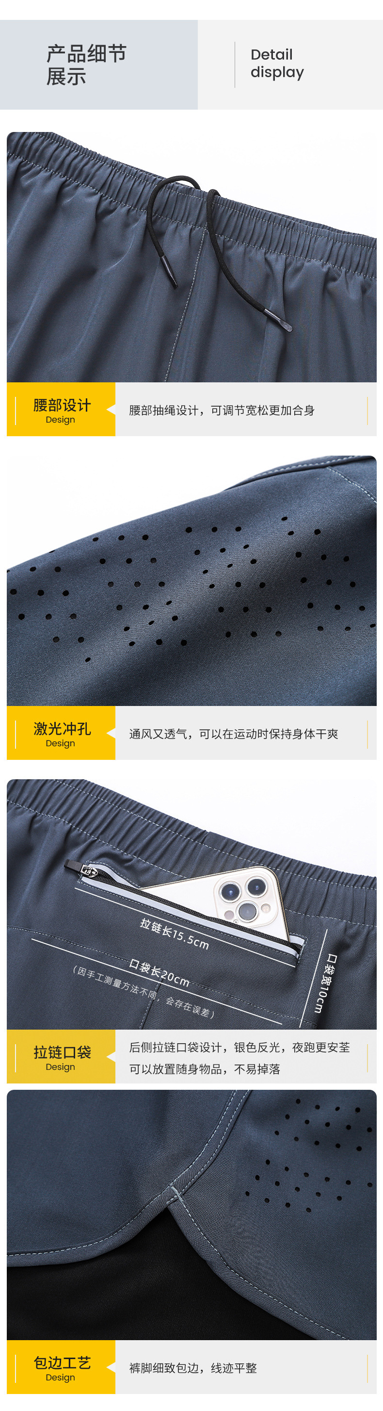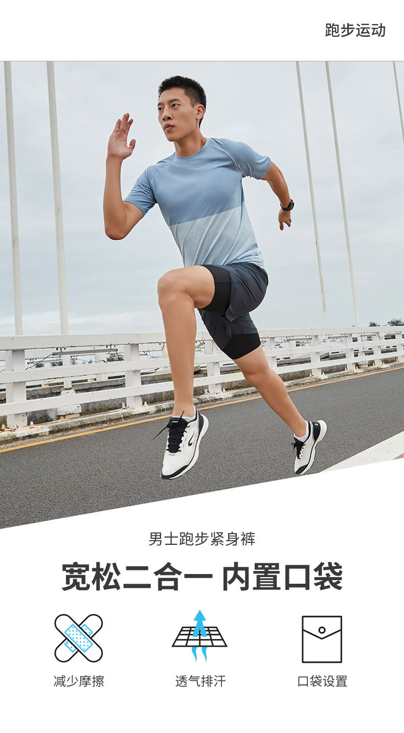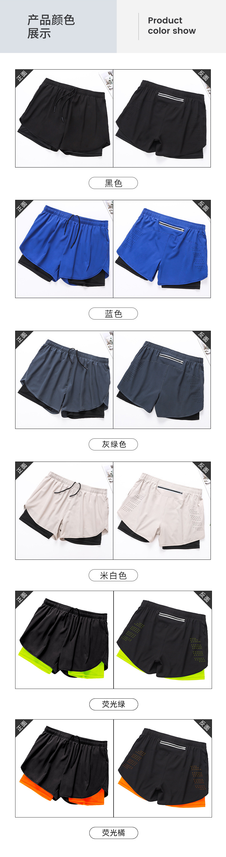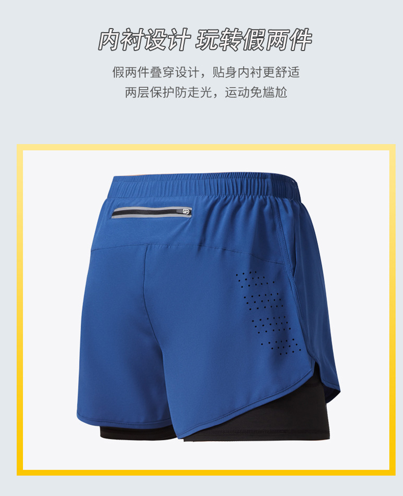 【多色运动跑步速干短裤】舒适贴身二合一内衬,内置口袋,背后口袋!