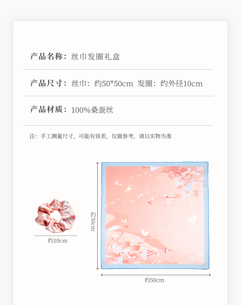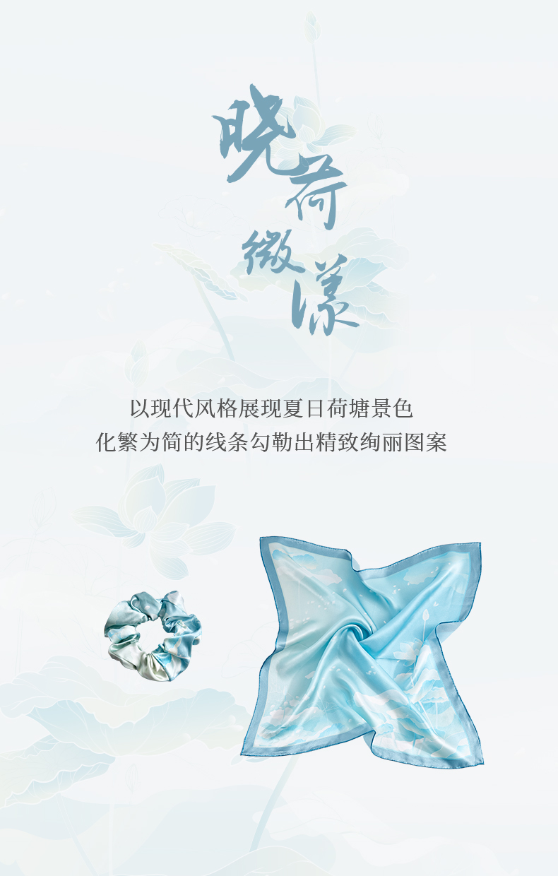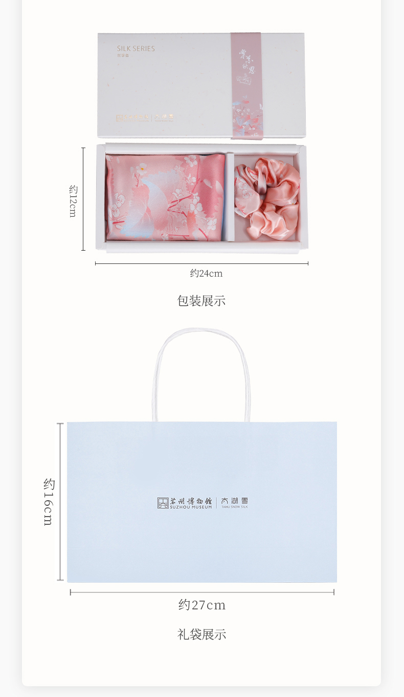 苏州博物馆 太湖雪真丝方巾发圈套装
