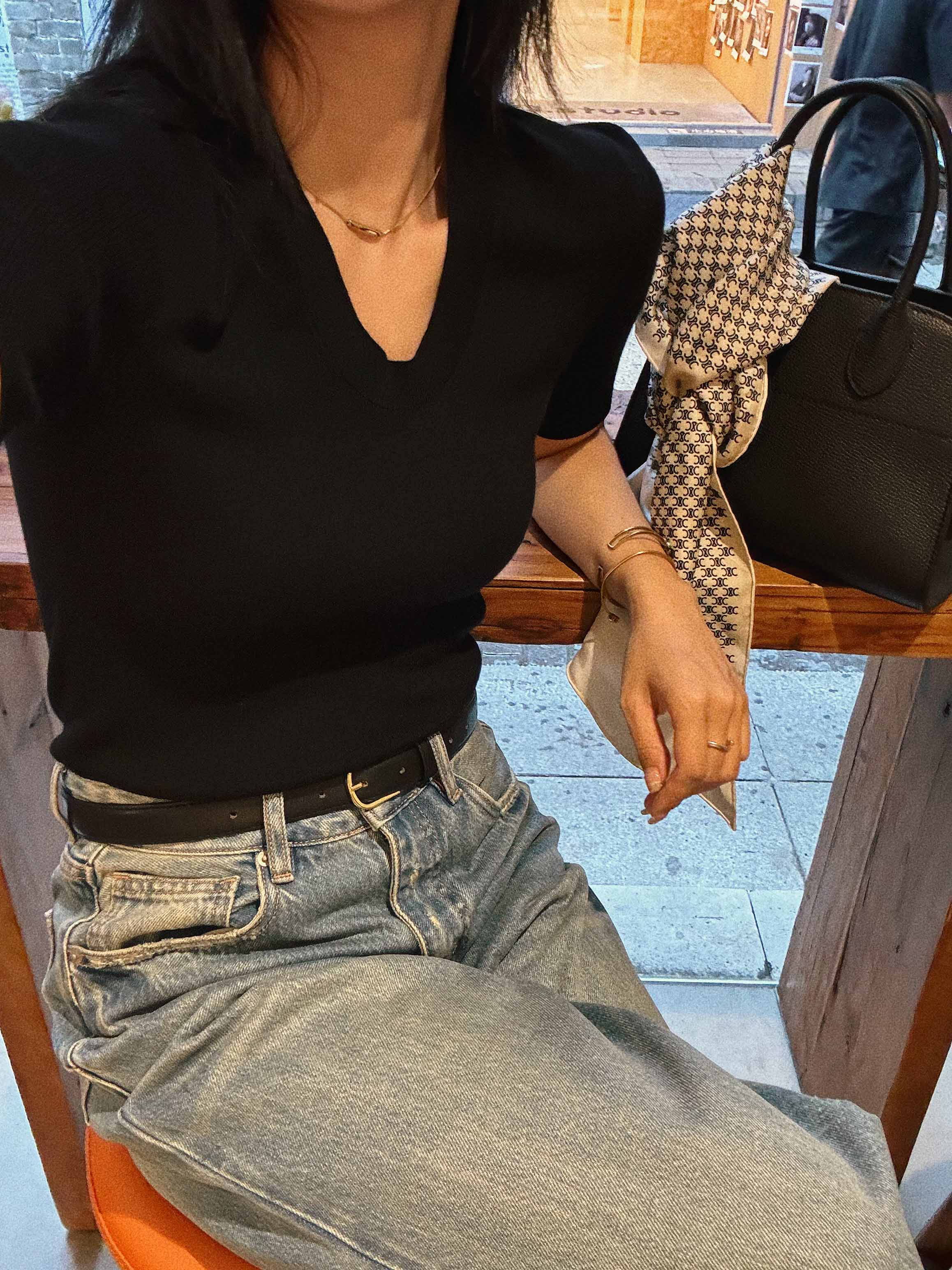 顺丰包邮洛诗琳11536春夏新款100精纺美丽诺羊毛V领针织T恤029