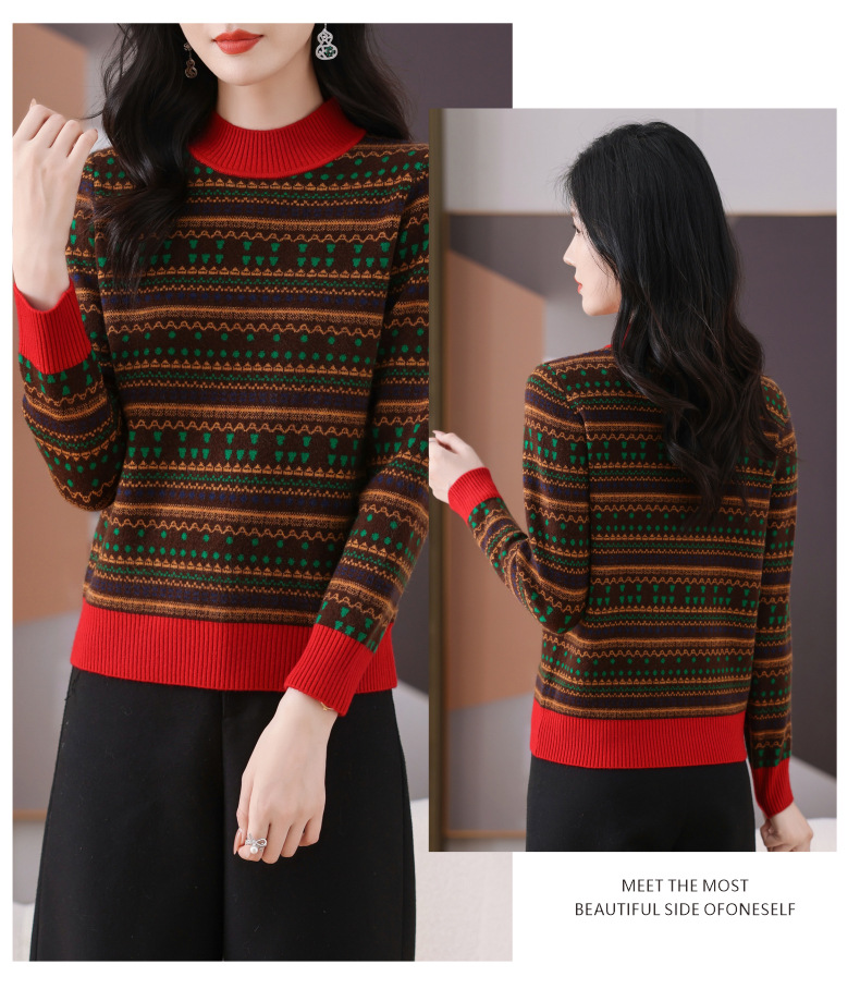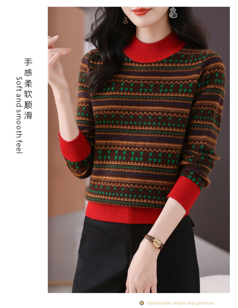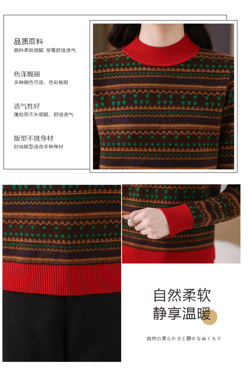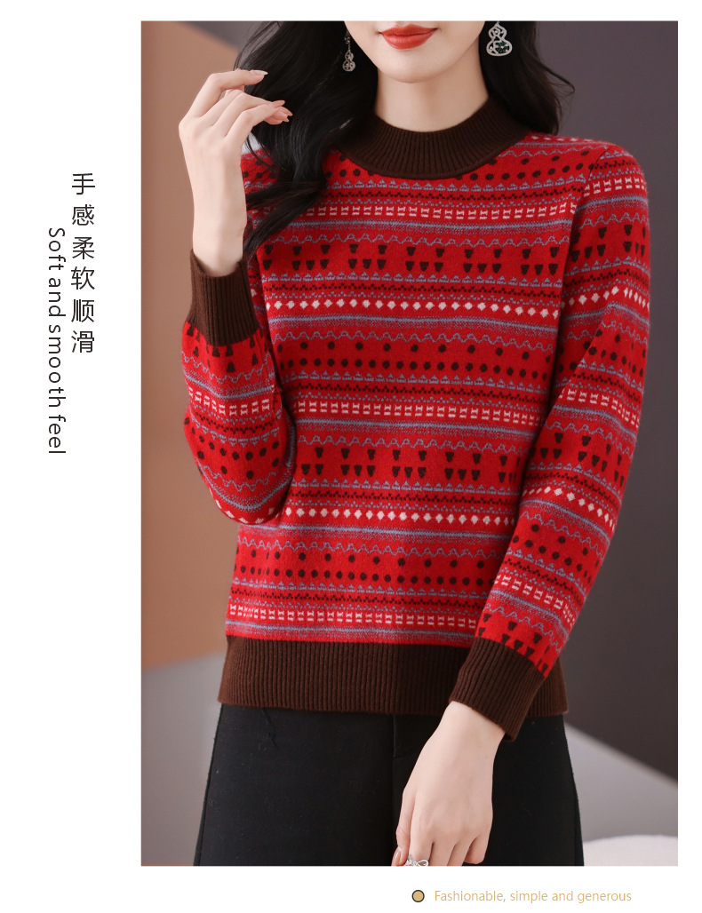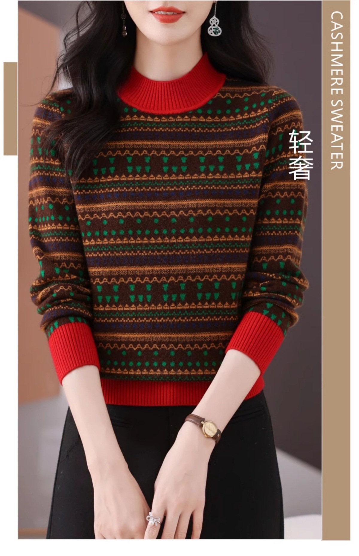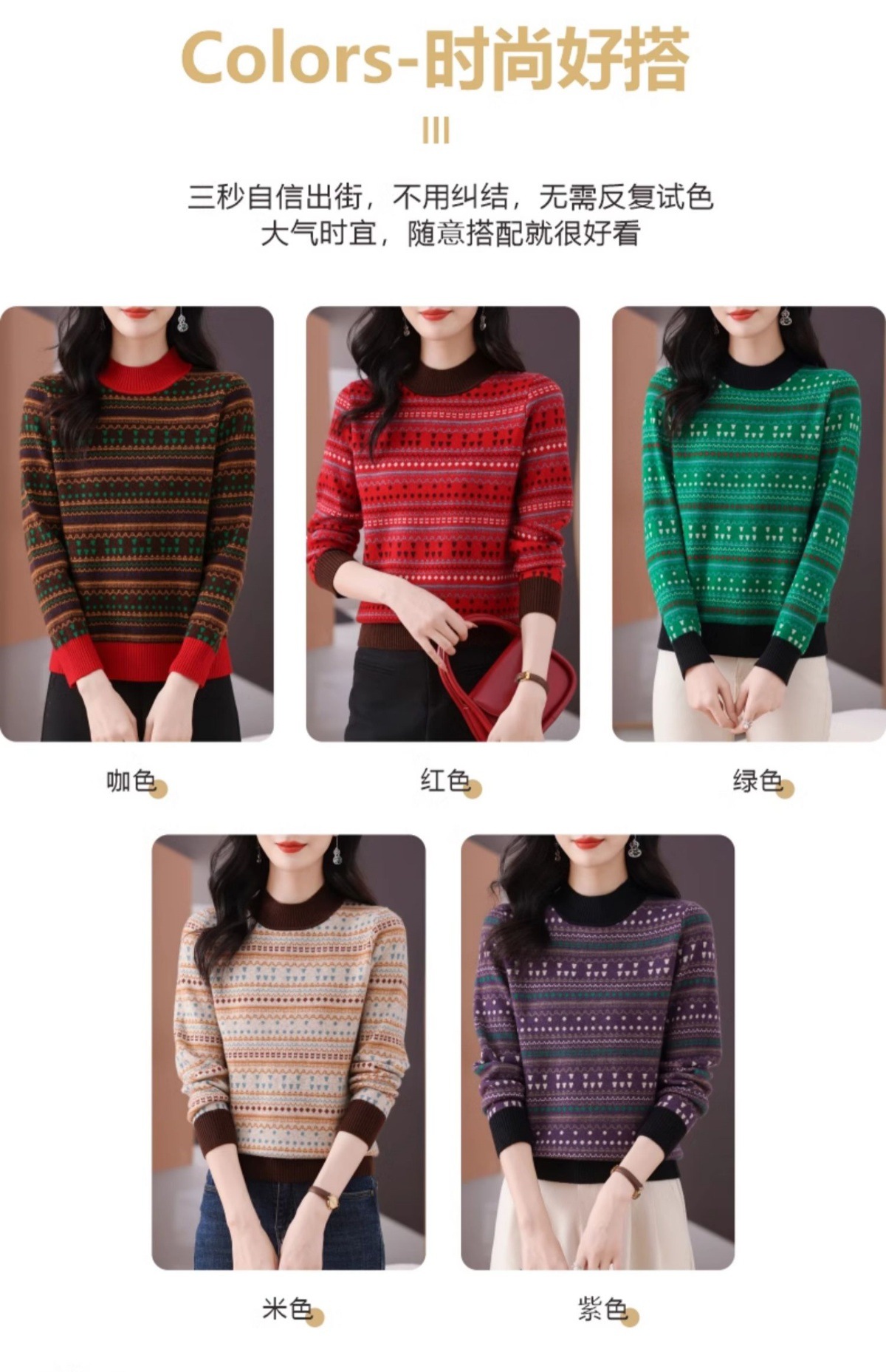CC-103-77116秋冬2024新款女士洋气半高领提花打底针织衫宽松显瘦毛衣