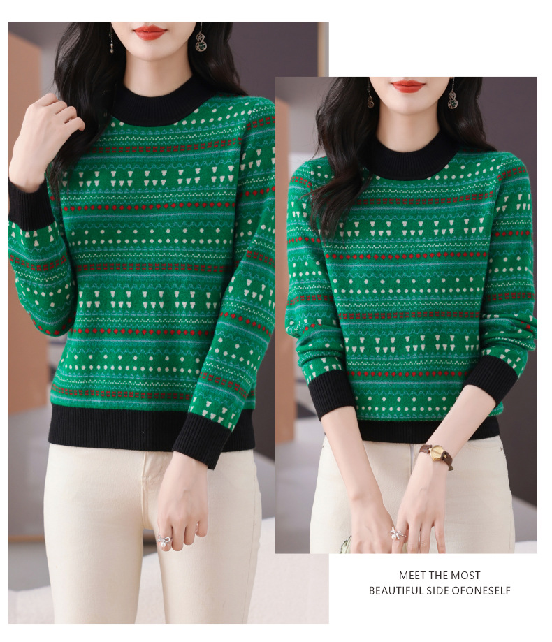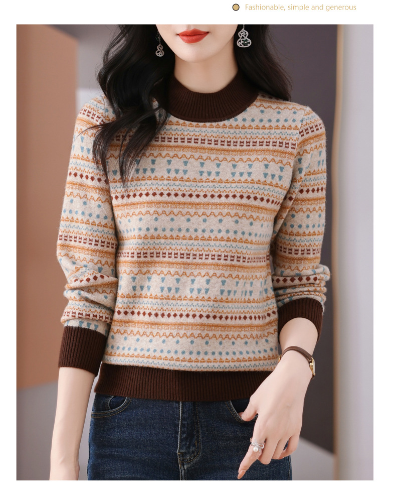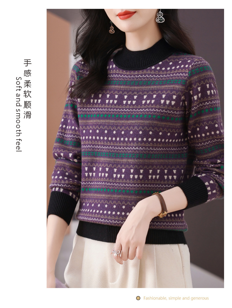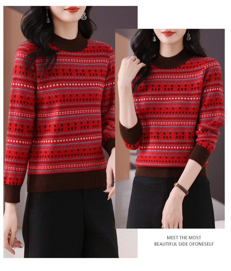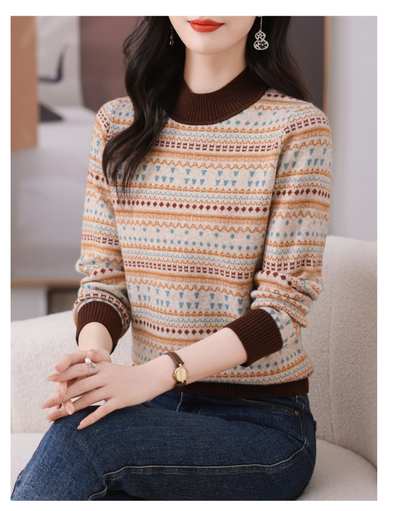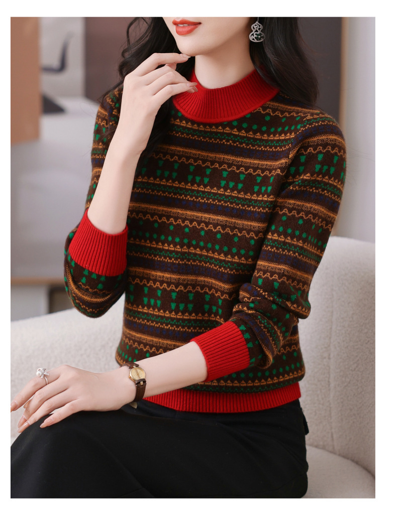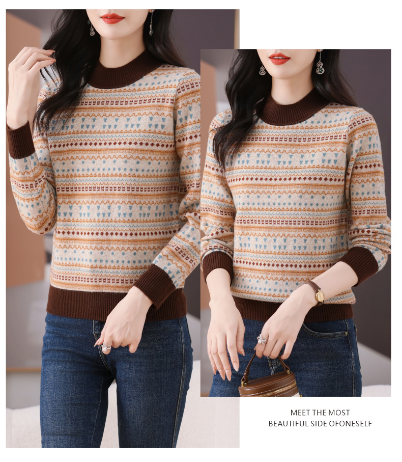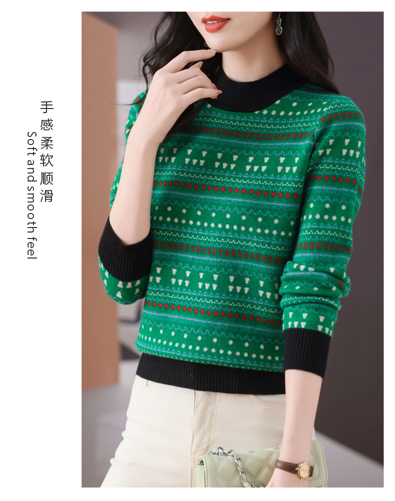 CC-103-77116秋冬2024新款女士洋气半高领提花打底针织衫宽松显瘦毛衣