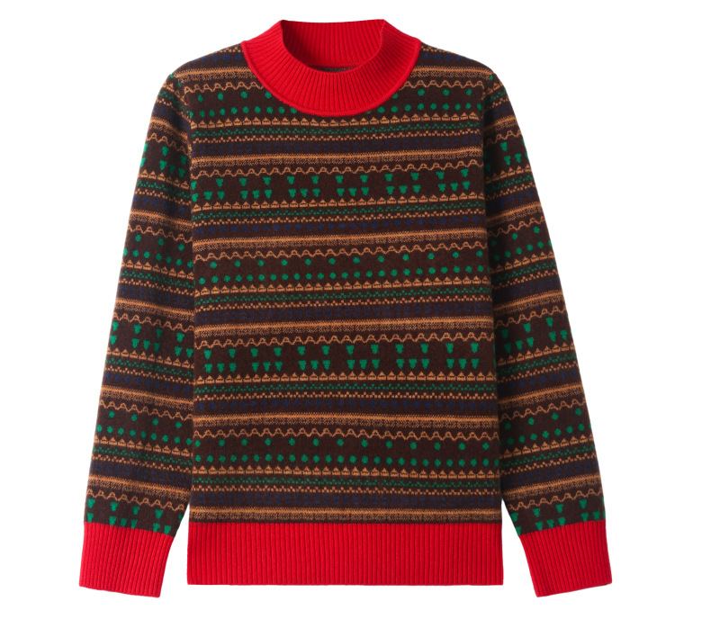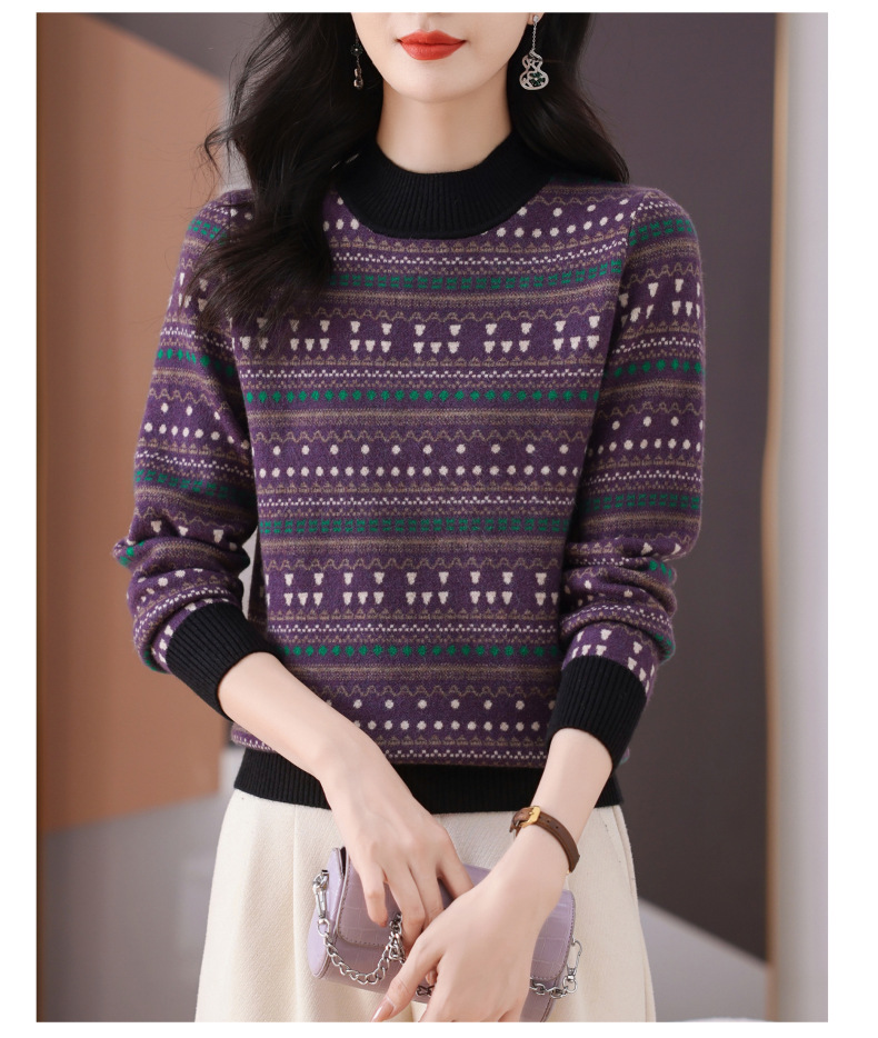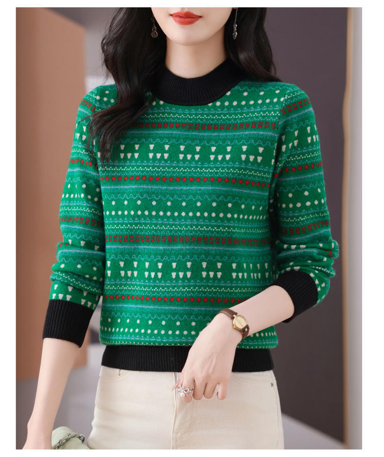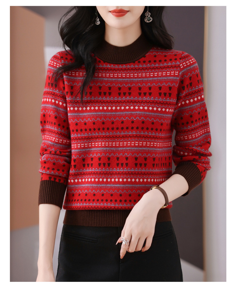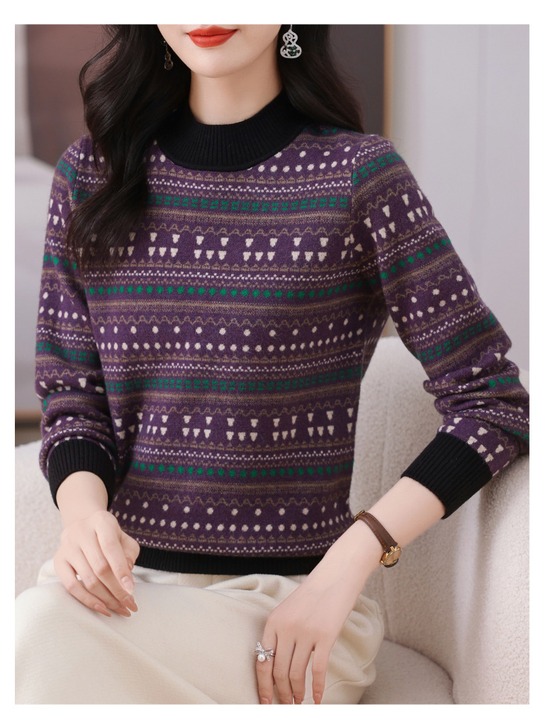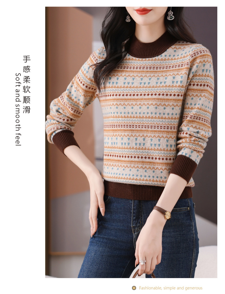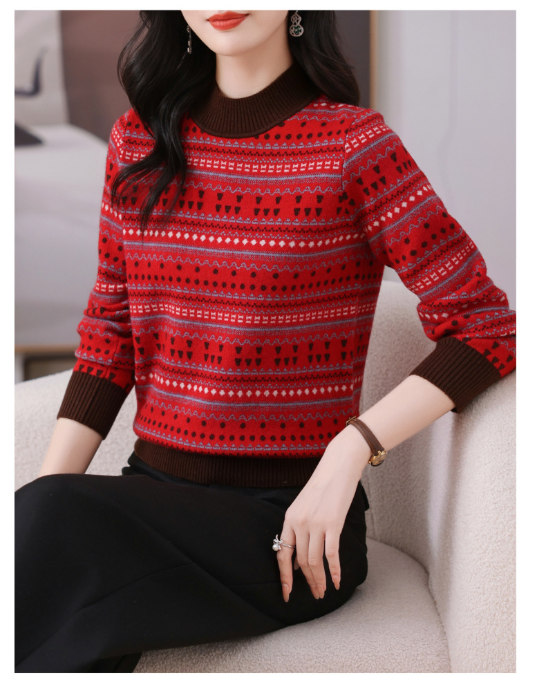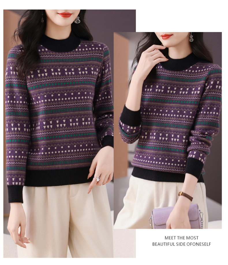 CC-103-77116秋冬2024新款女士洋气半高领提花打底针织衫宽松显瘦毛衣