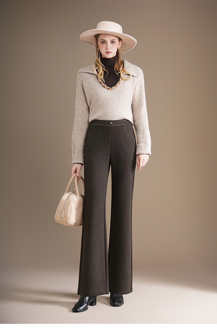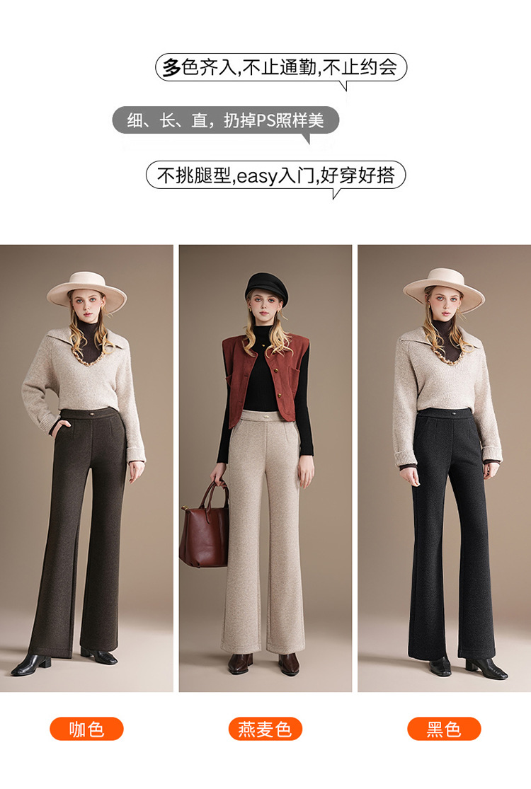 HWM-5271-Y毛呢微喇裤秋冬季新款休闲裤时尚高腰宽松女装羊毛裤长裤 商品图1