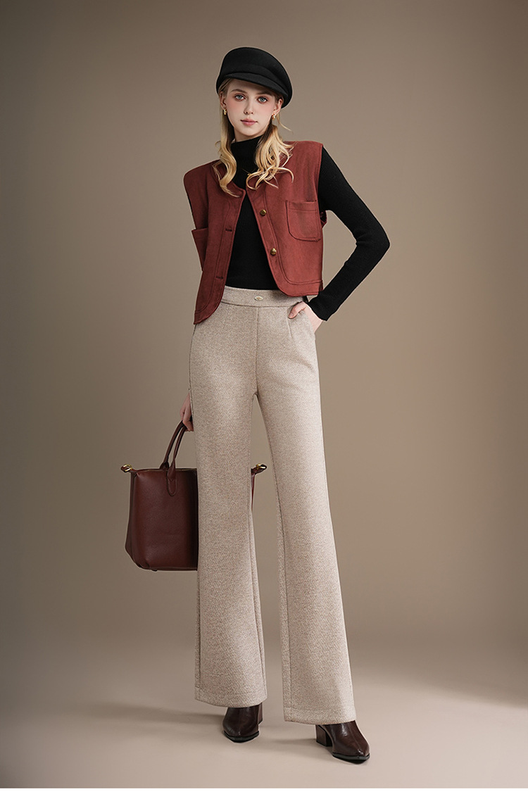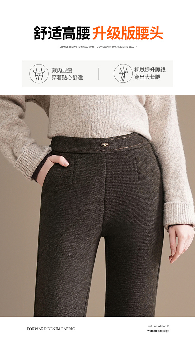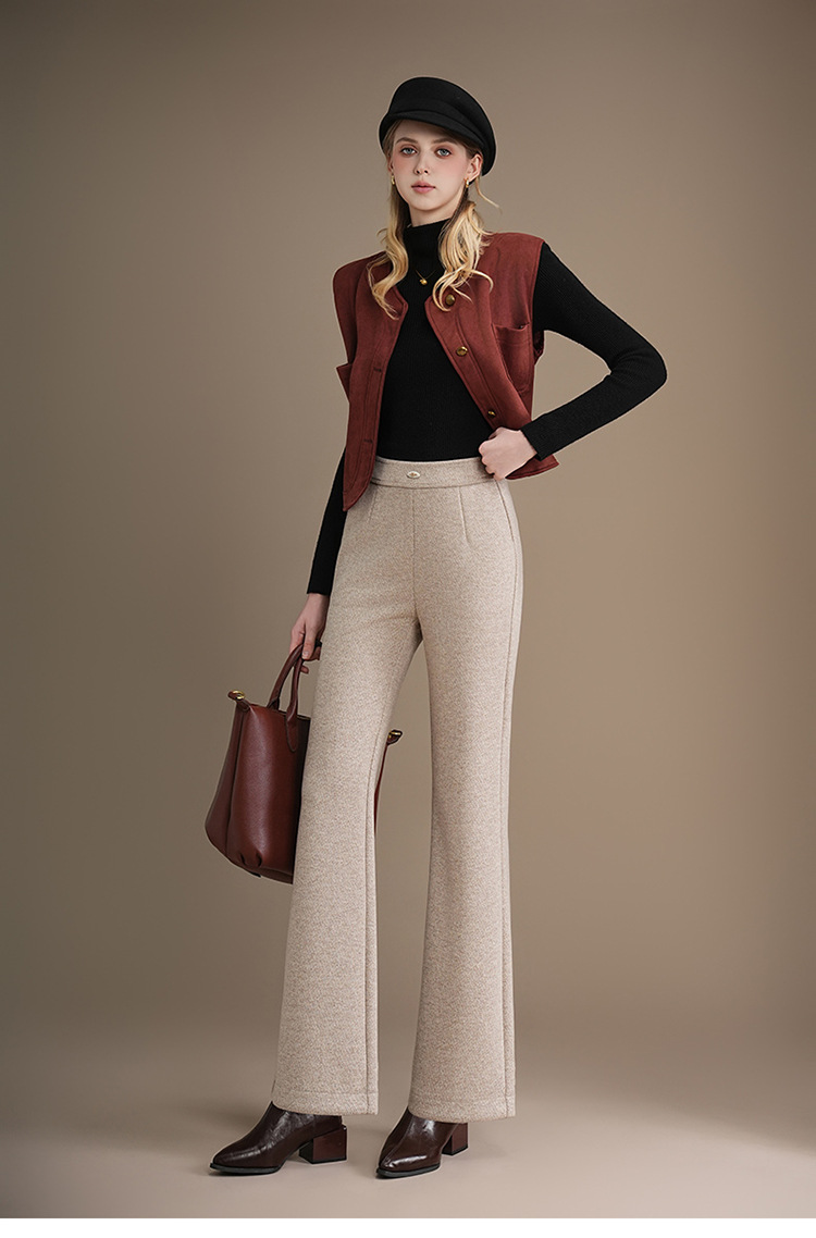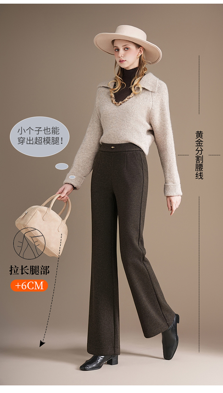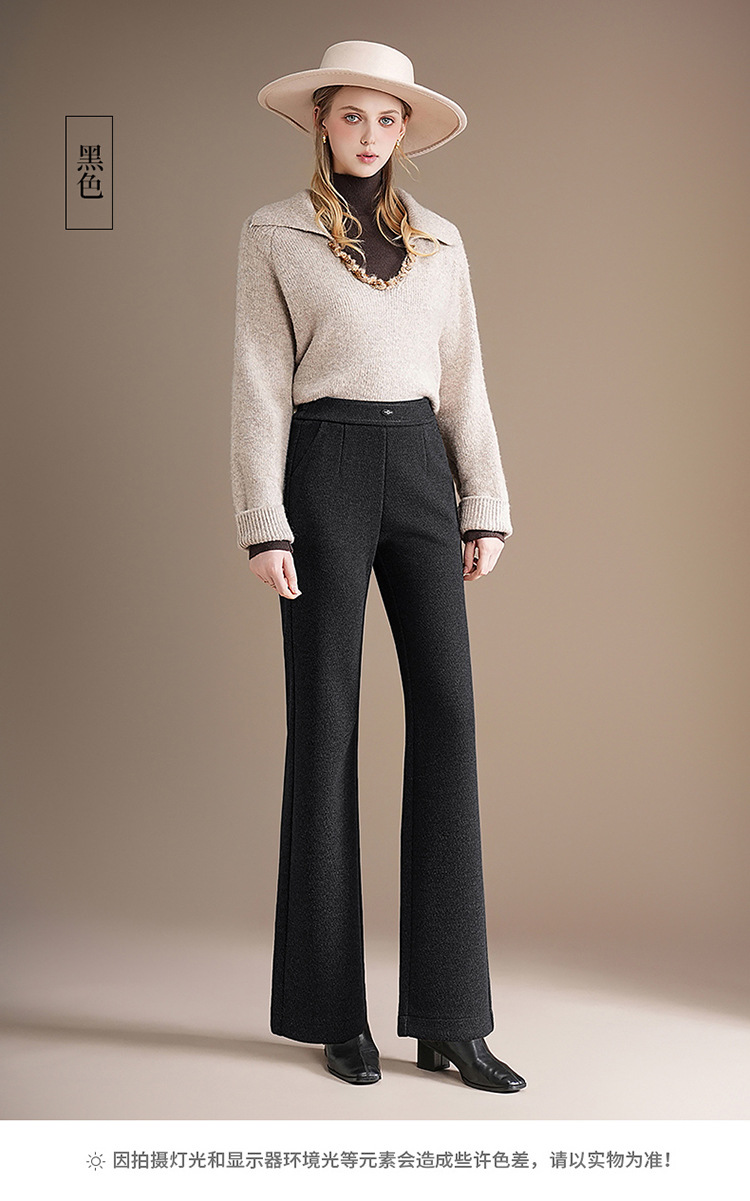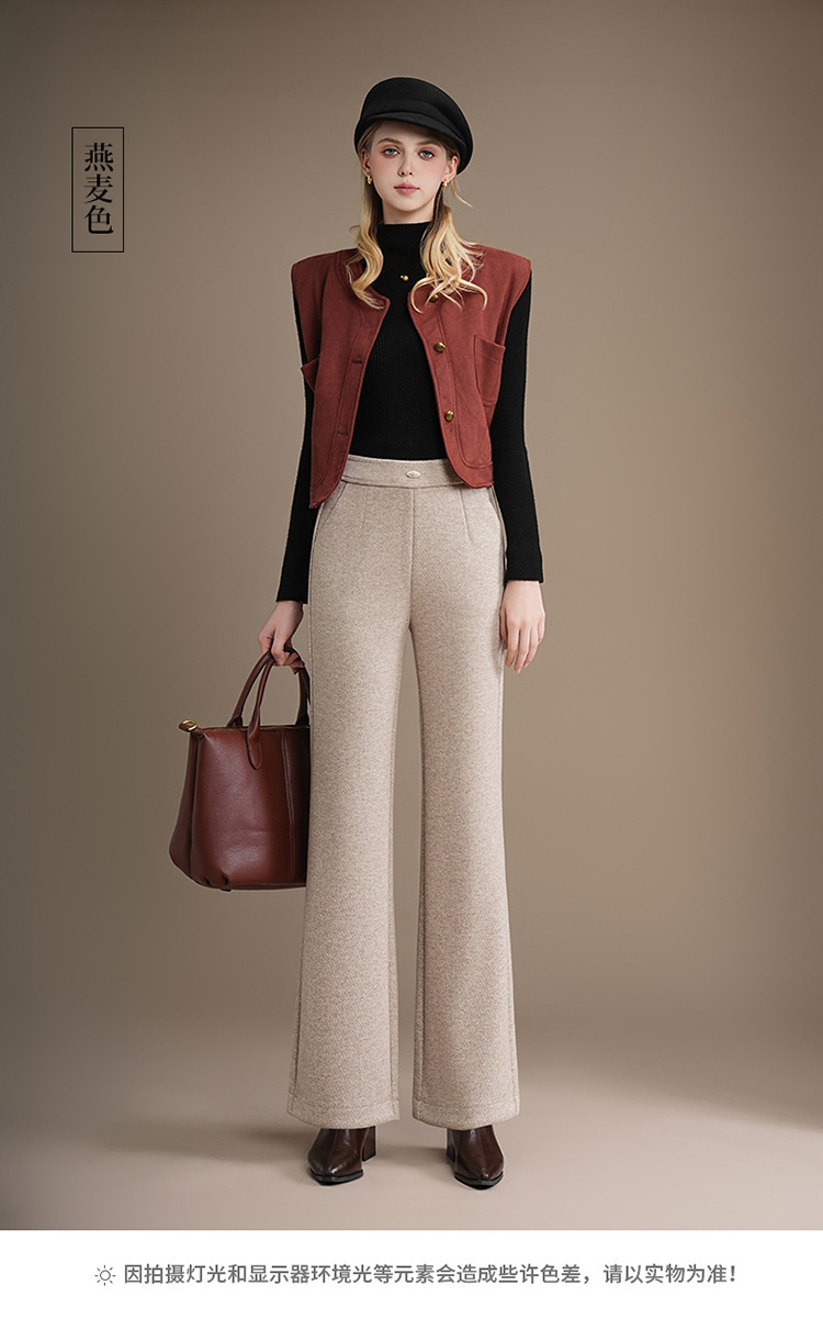 HWM-5271-Y毛呢微喇裤秋冬季新款休闲裤时尚高腰宽松女装羊毛裤长裤 商品图4