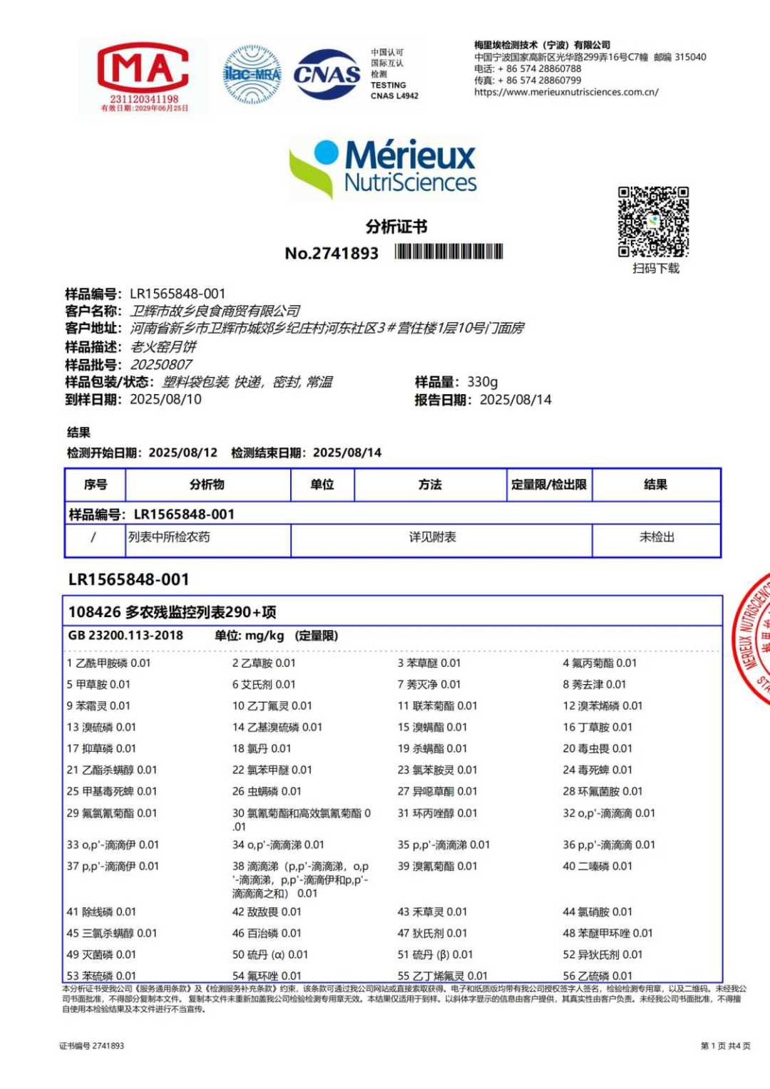 这一枚简单月饼的背后,是谭波全国各地生态农友和师傅们共同的努力。月饼今年也做了296项农残检测,无检出。