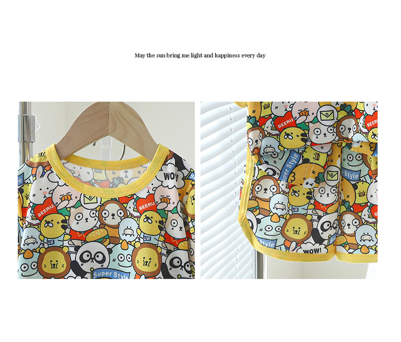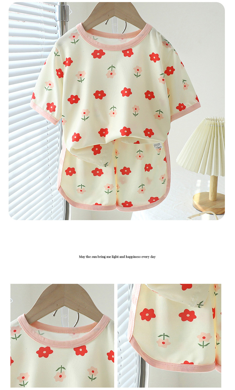 【超舒适!冰丝短袖套装】儿童短袖短裤套装女童夏季冰丝小碎花印花家居服男宝宝卡通短袖T