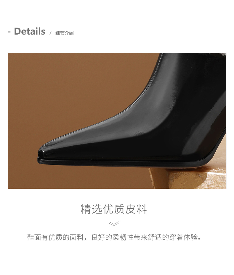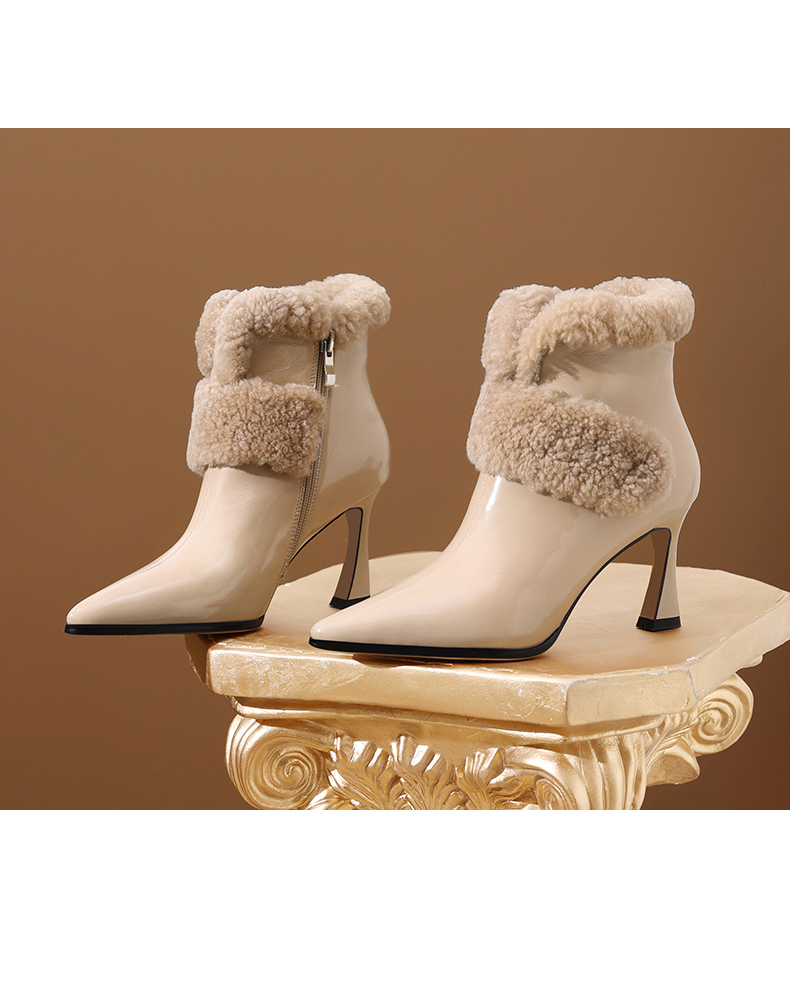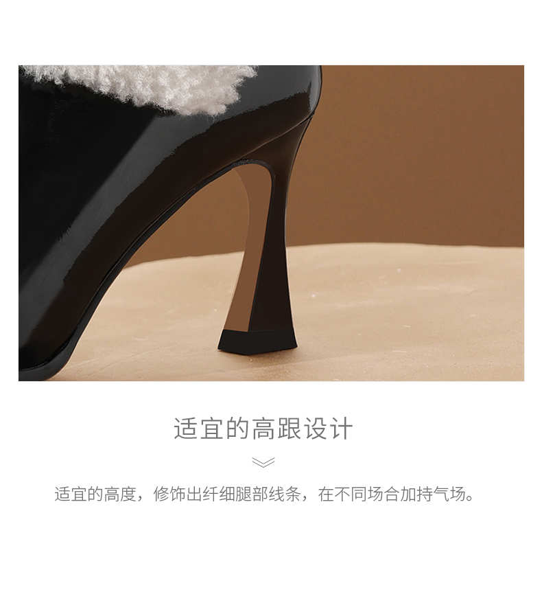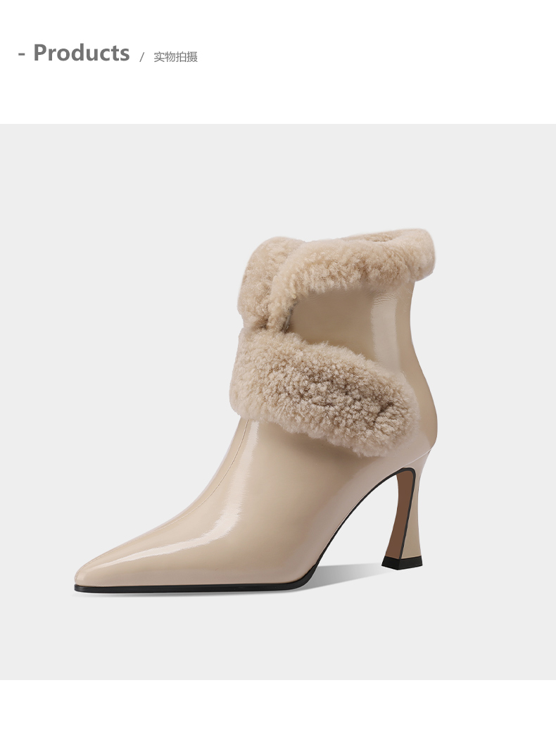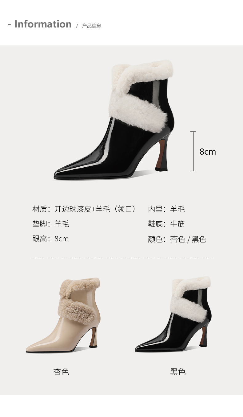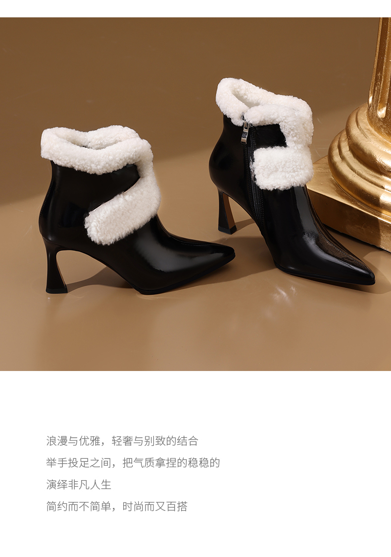 优雅个性,尖头真皮拼接真毛内里高跟短靴SJS-D817-948