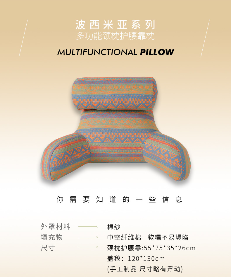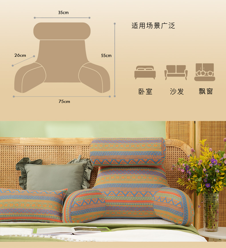 波西米亚系列护颈腰靠软包大靠背卧室榻榻米护腰沙发飘窗护颈枕可拆洗