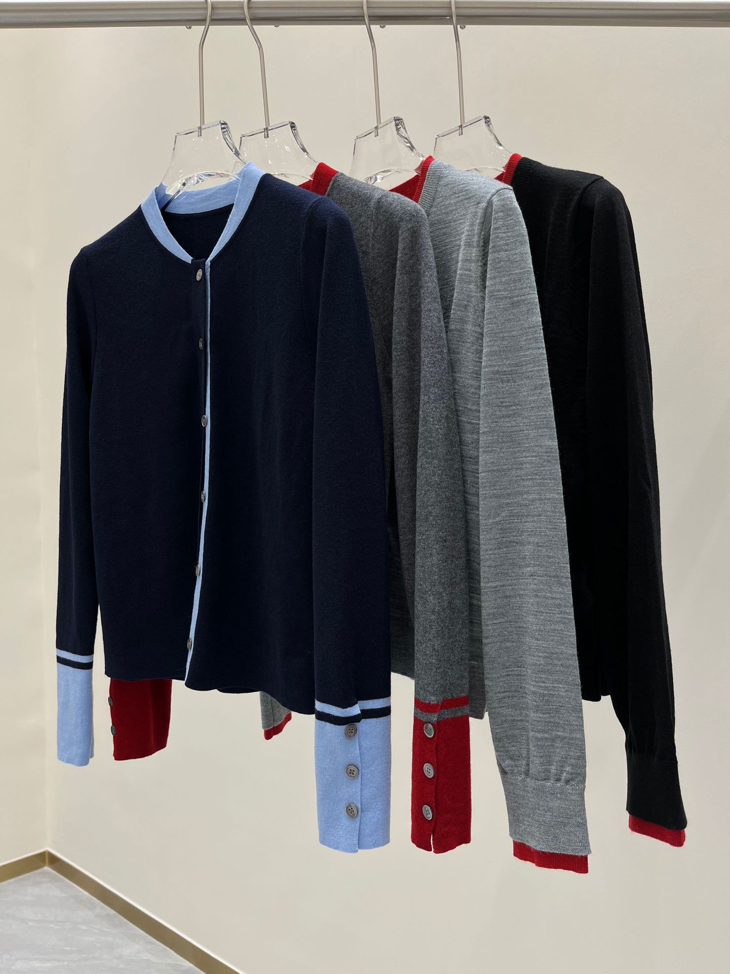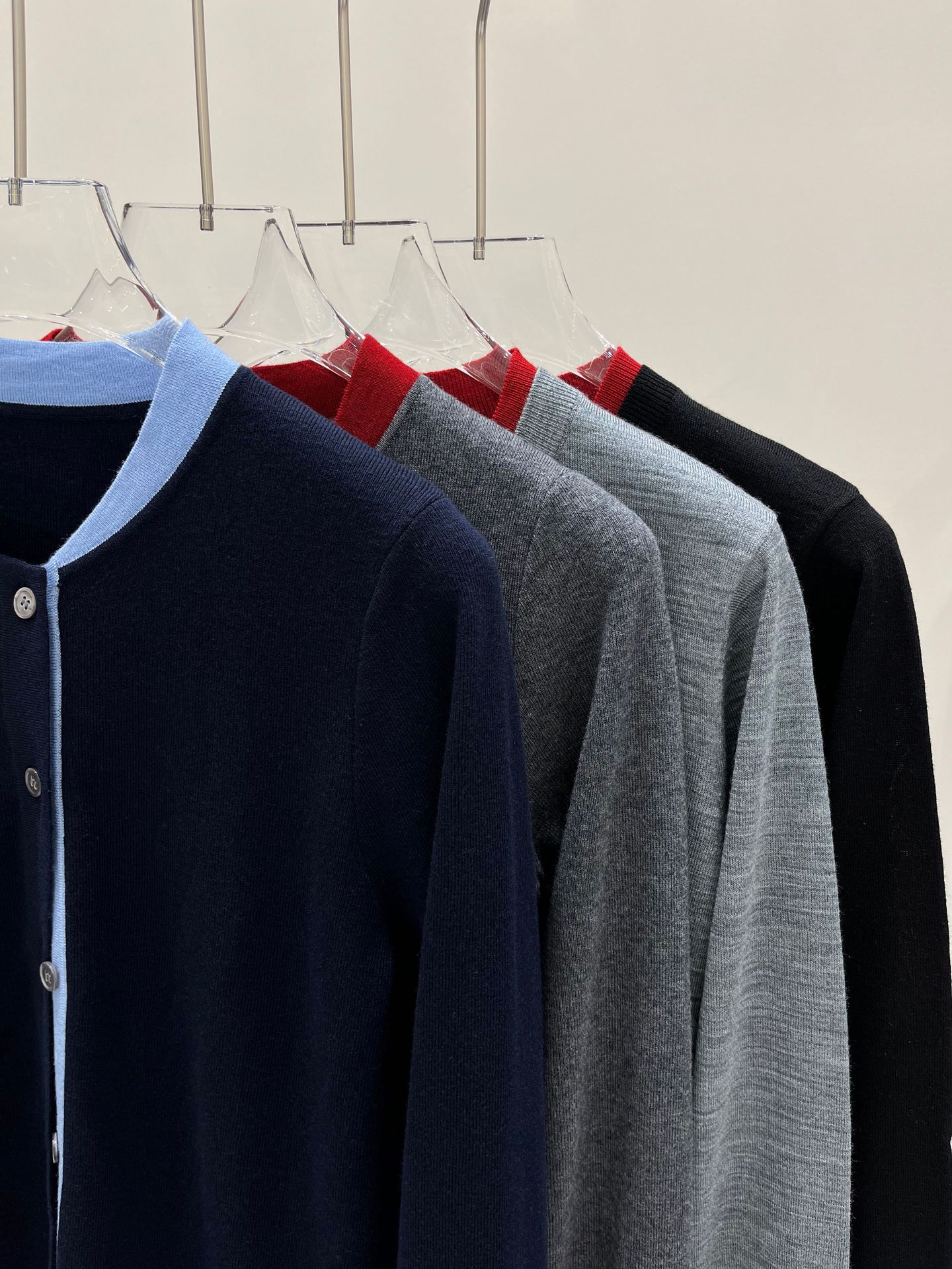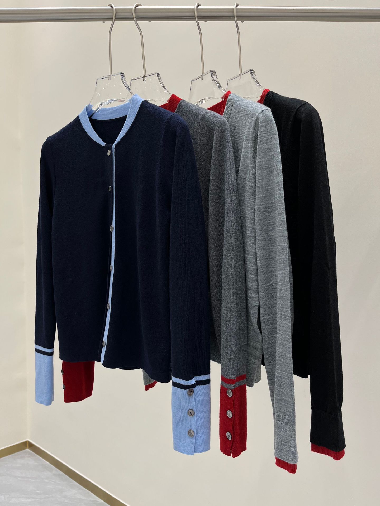 丁摩 春装新款层次感撞色拼接/假两件羊毛圆领针织开衫5ZF-16161