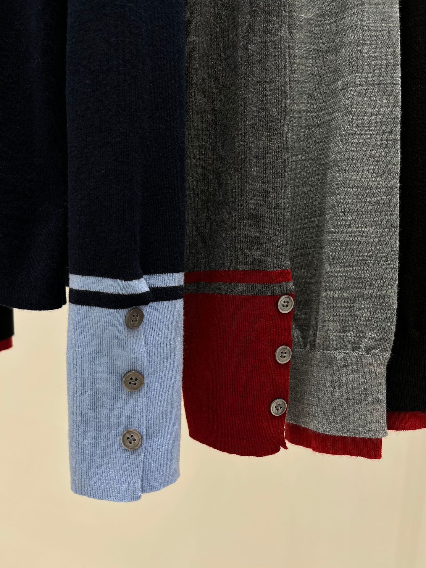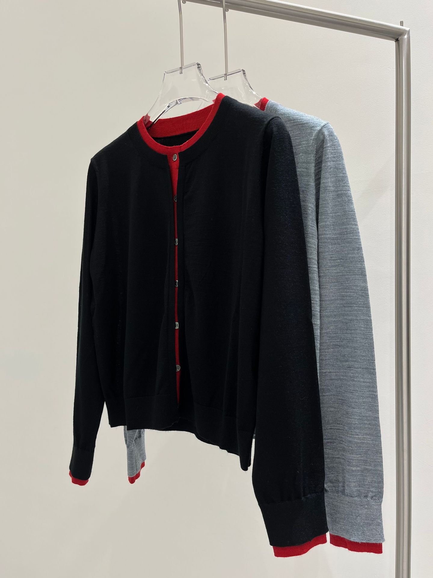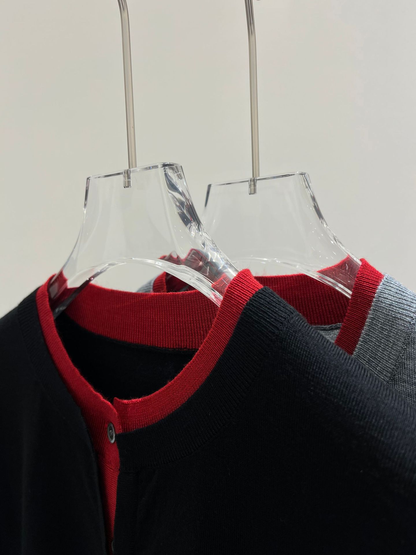 丁摩 春装新款层次感撞色拼接/假两件羊毛圆领针织开衫5ZF-16161