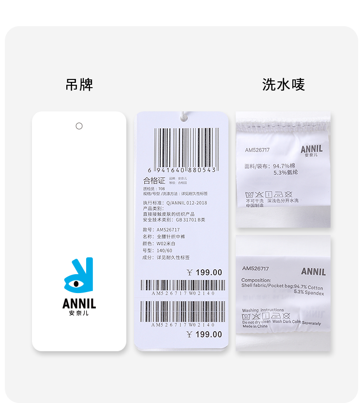 【超舒衣·全棉中裤】安奈儿透气速干柔滑中短裤新款童装实体店同款AM526717