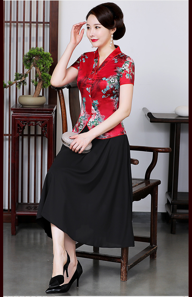 LYE2091新款复古印花短袖上衣半身裙两件套