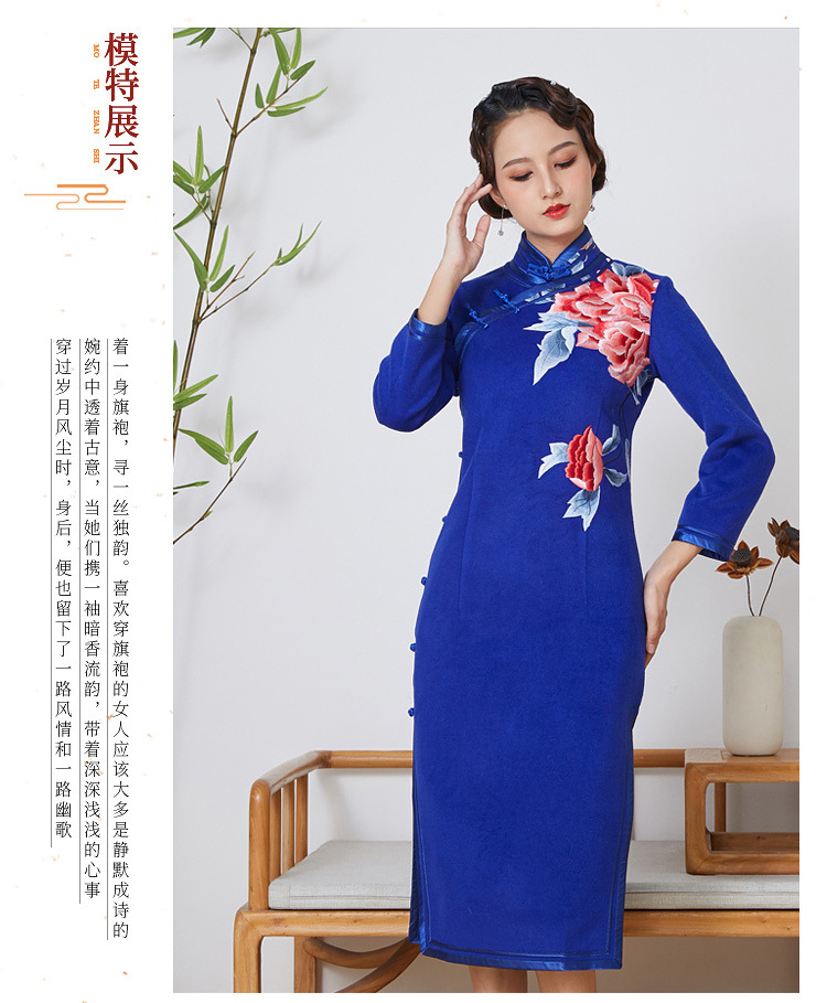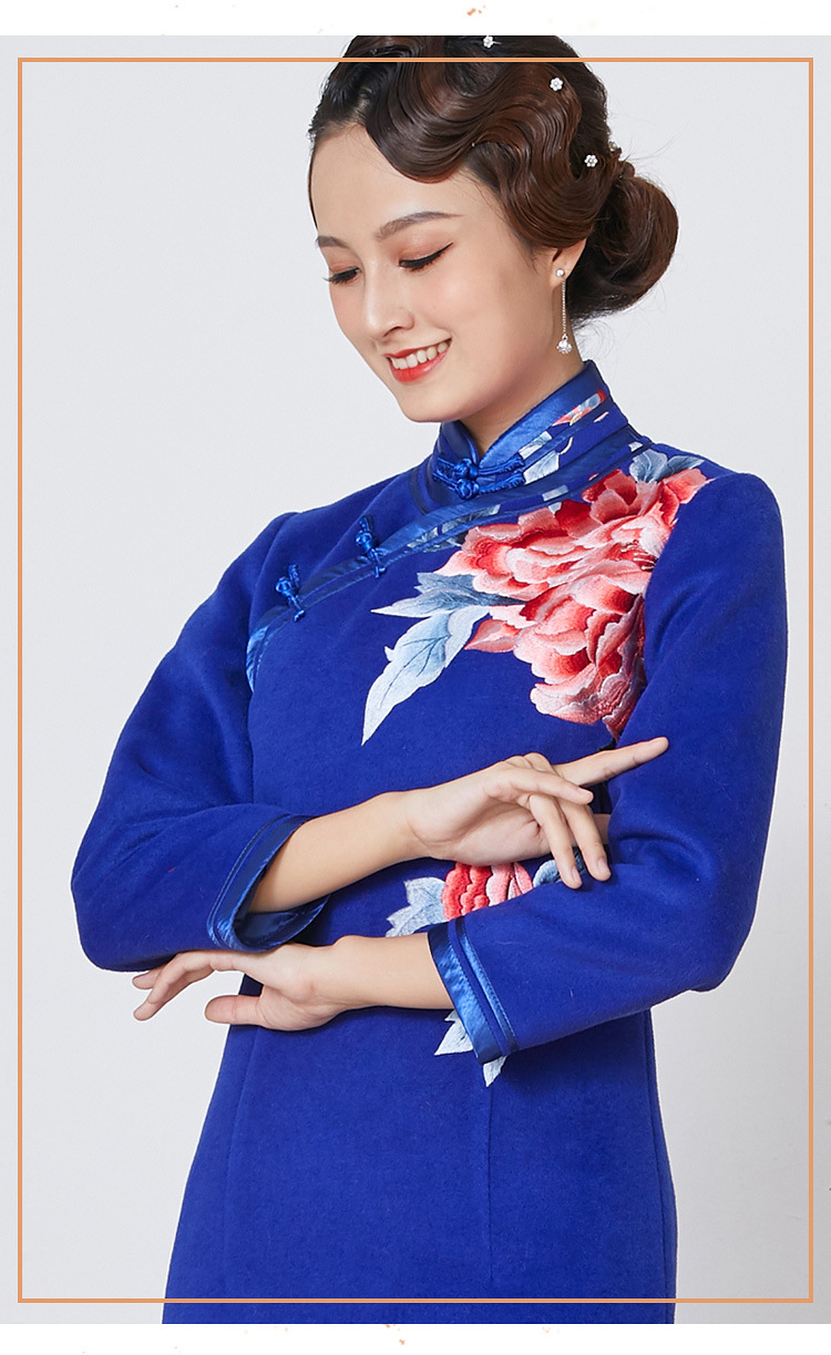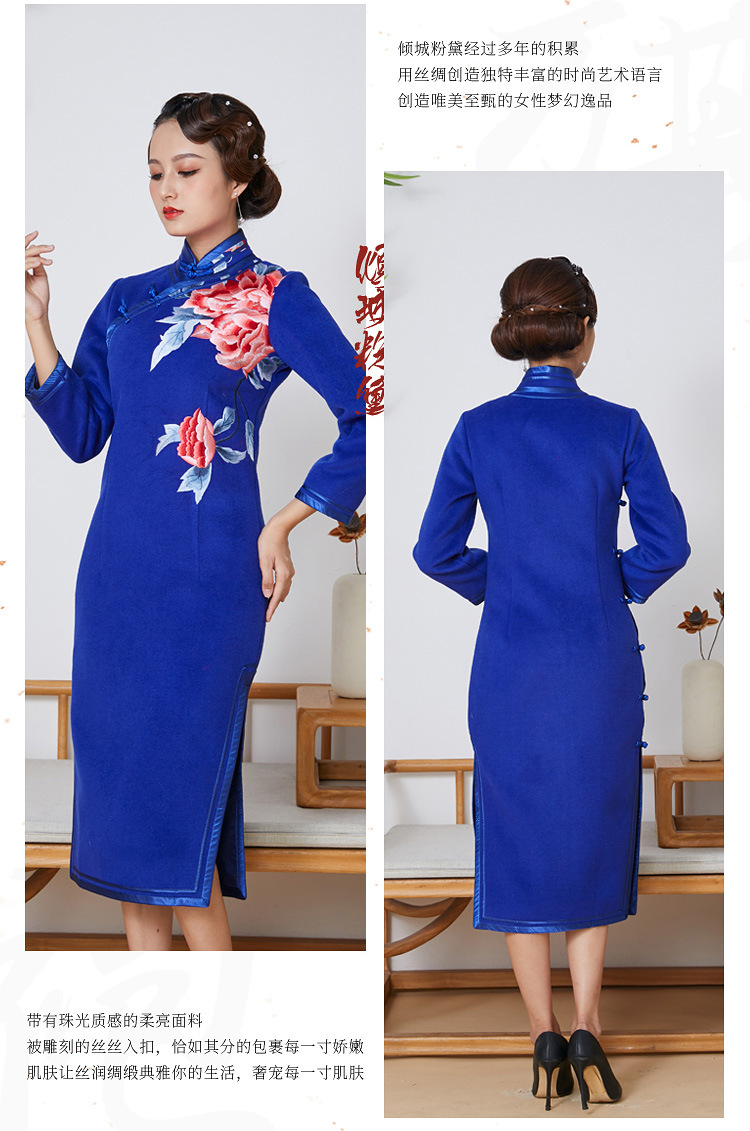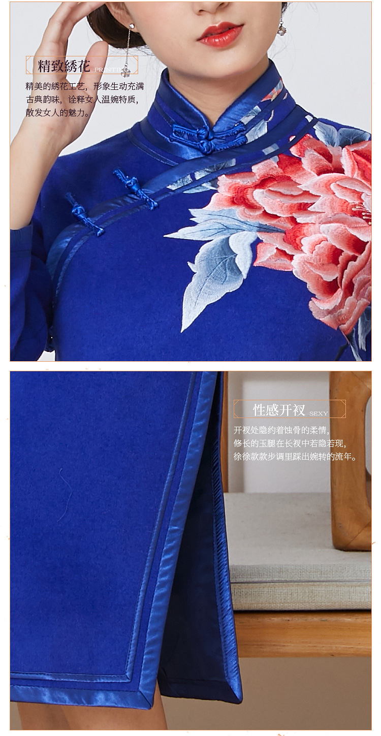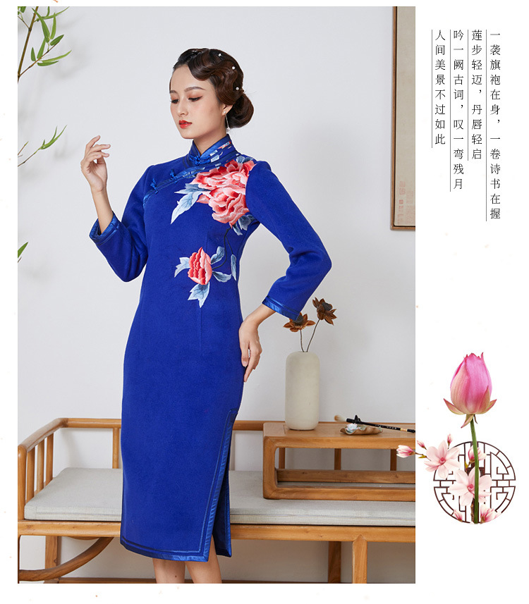 QC-1697763秋季新款毛呢绣花优雅旗袍裙
