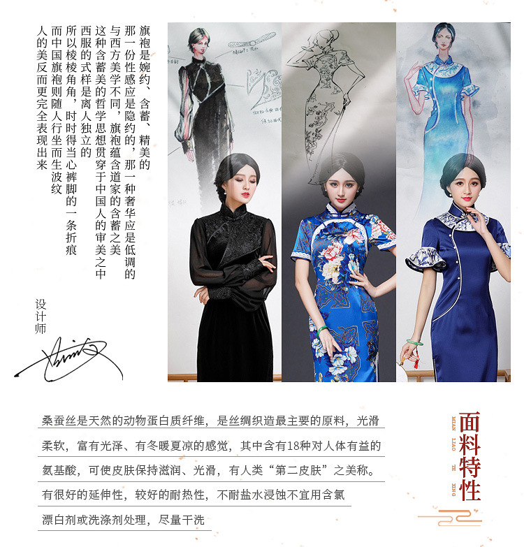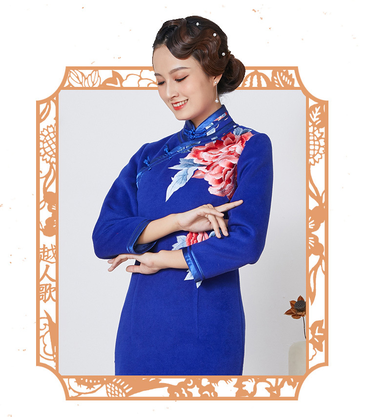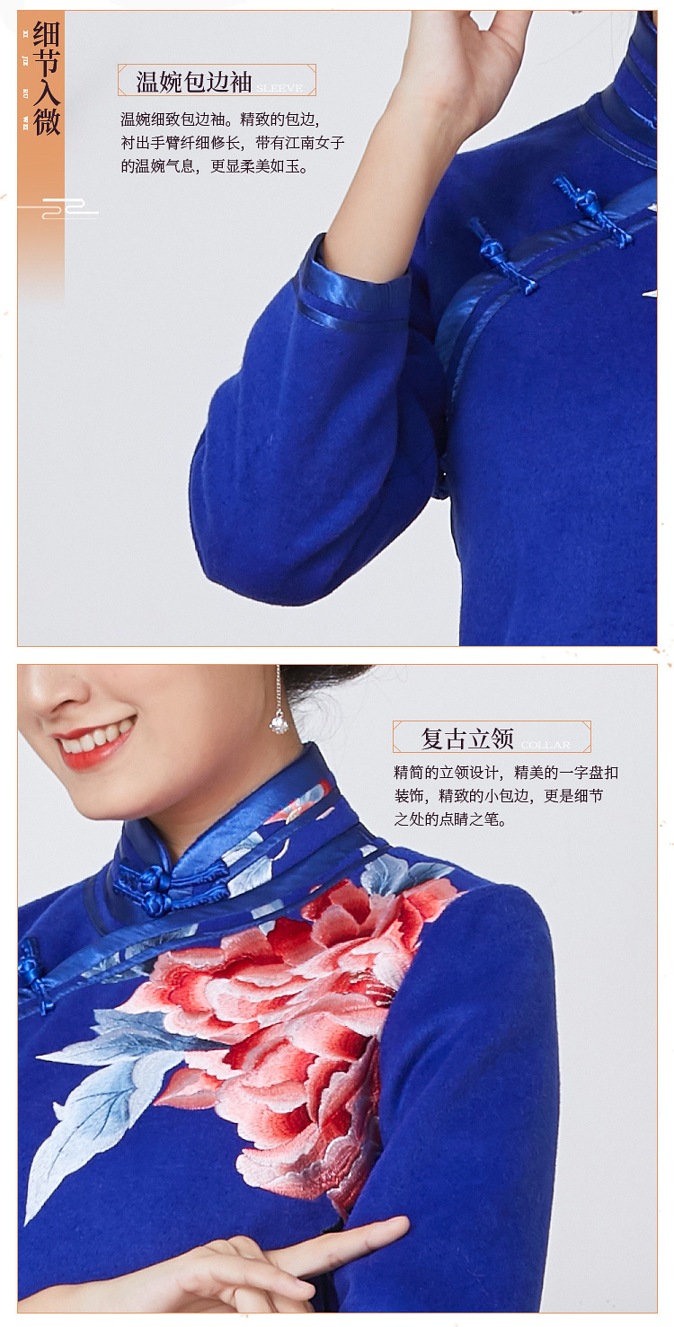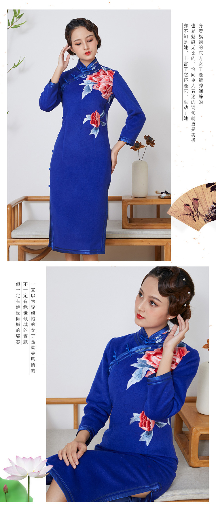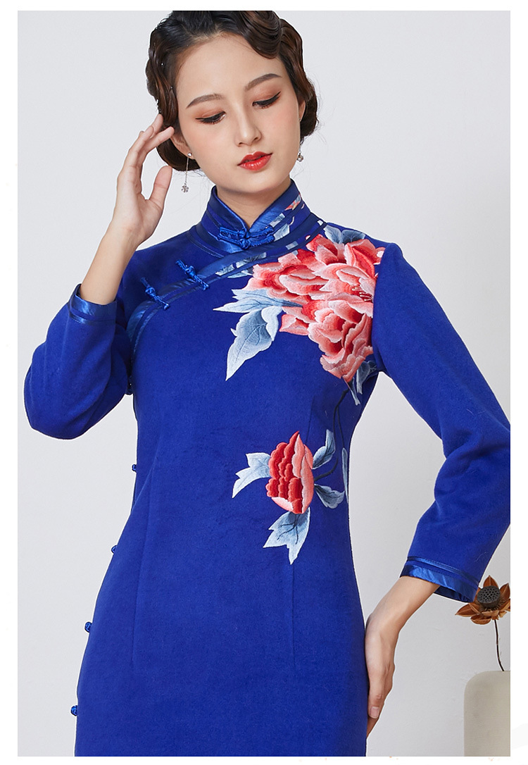 QC-1697763秋季新款毛呢绣花优雅旗袍裙