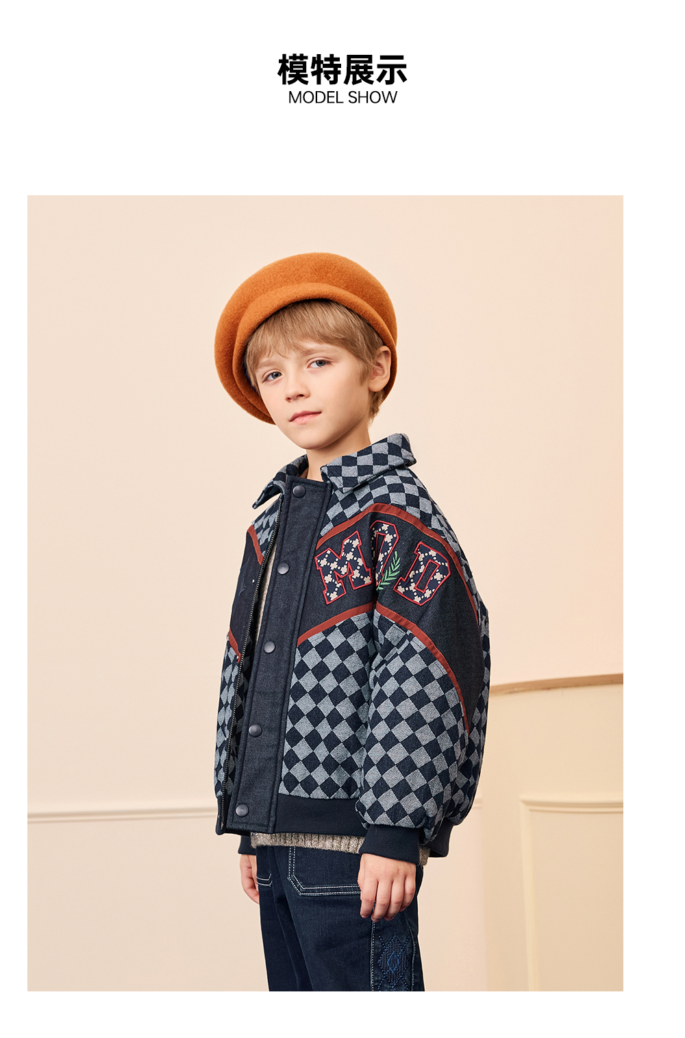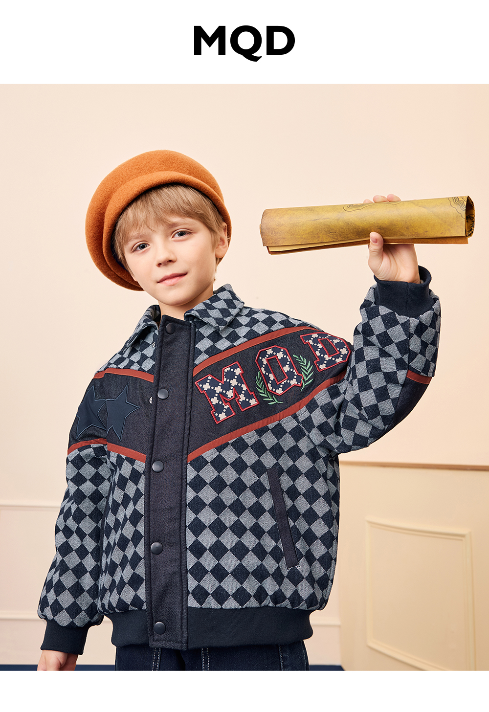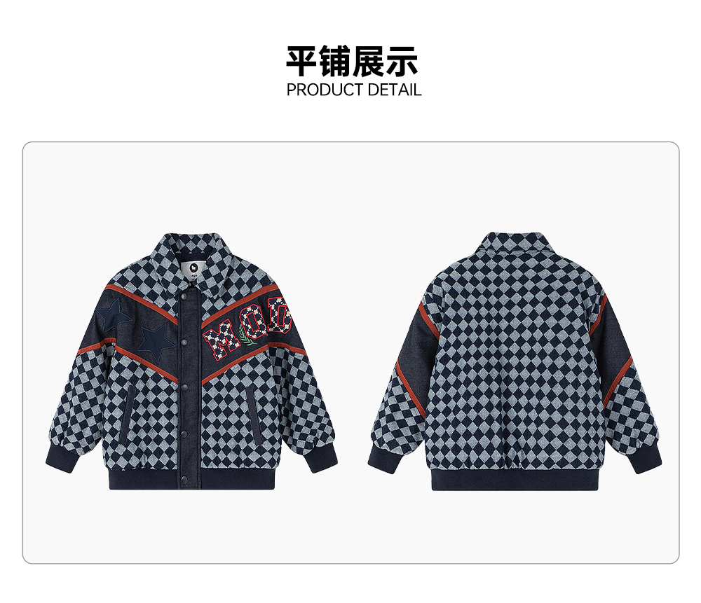 【秒1】【MQD】男童冬季经典格纹加厚牛仔夹棉外套