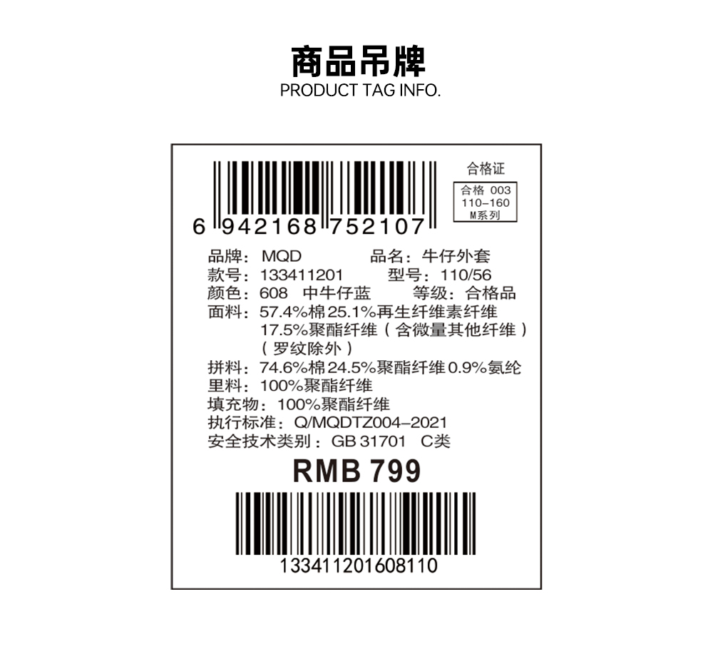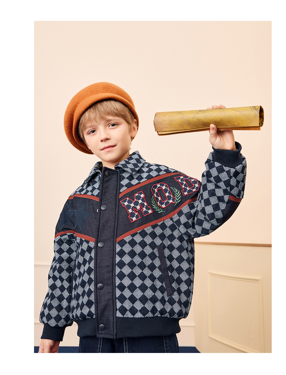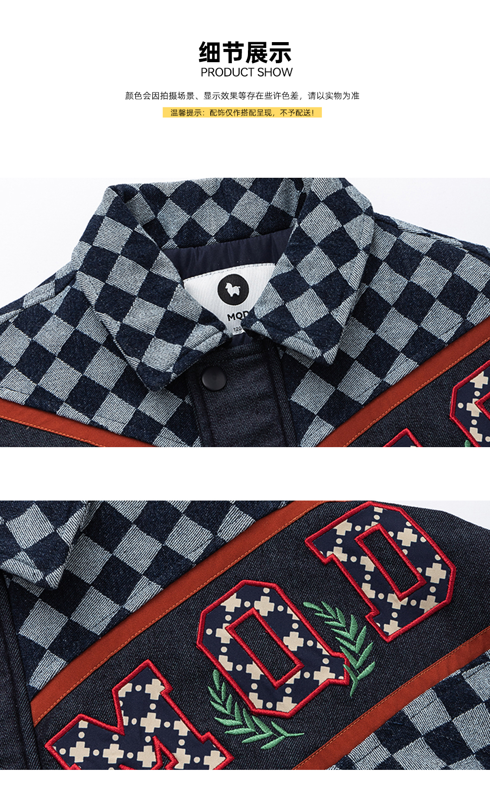 【秒1】【MQD】男童冬季经典格纹加厚牛仔夹棉外套