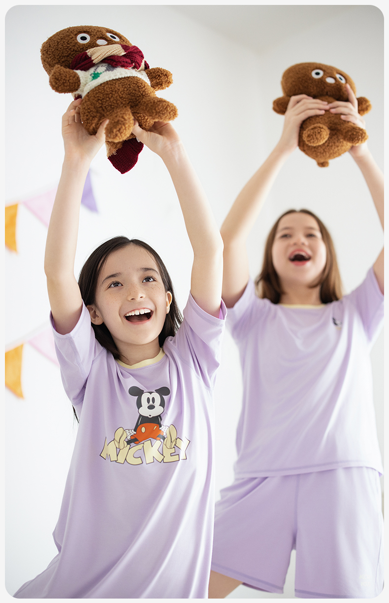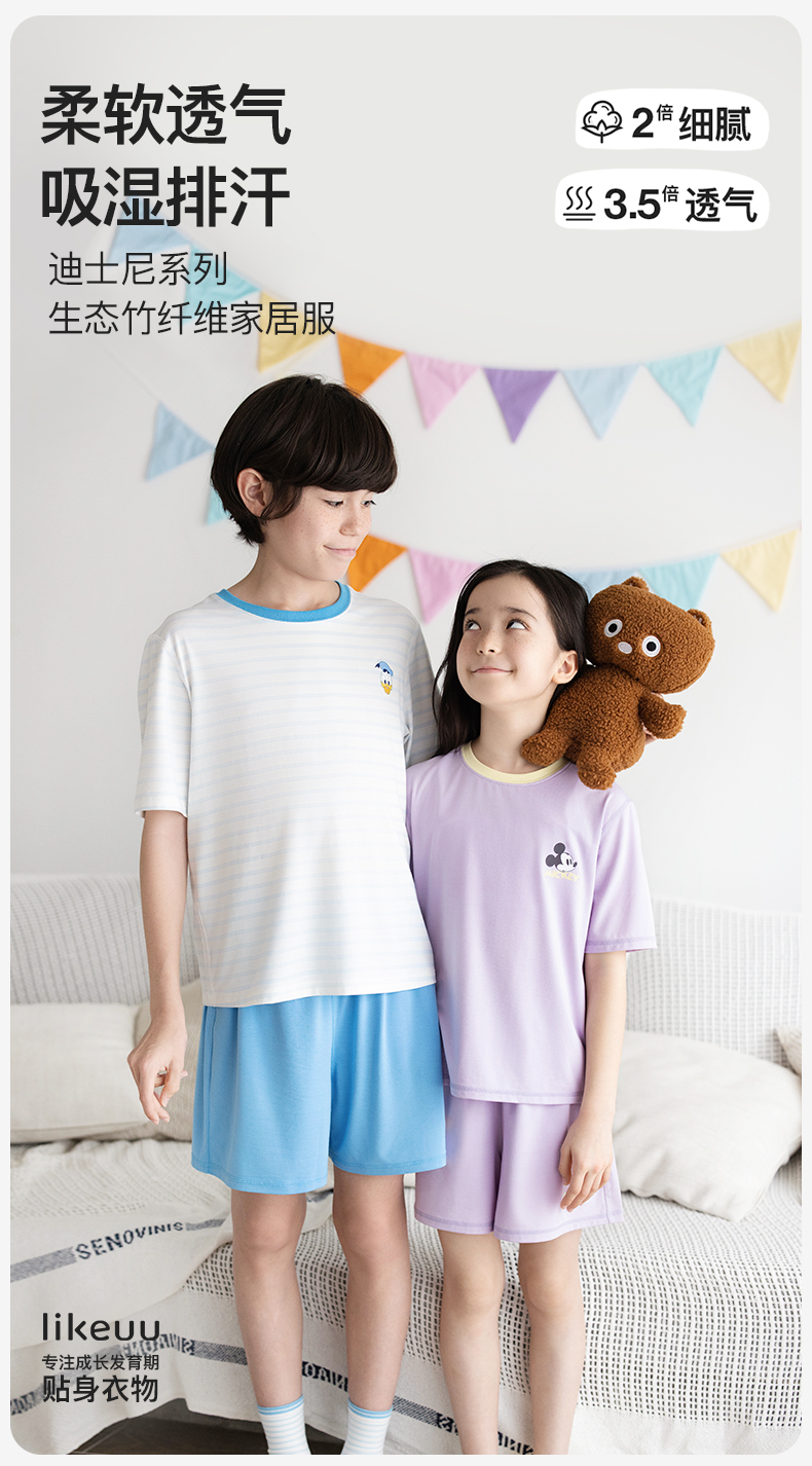 likeuu儿童睡衣男女童吸湿排汗短袖家居服套装夏季