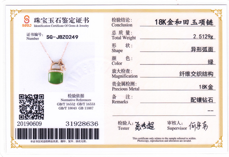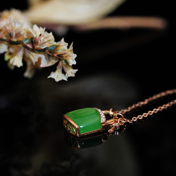 18K玫瑰金和田玉(碧玉)镶钻项链