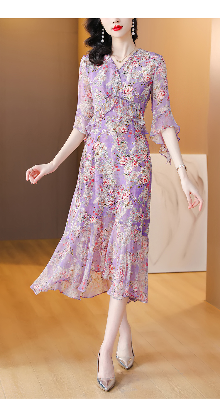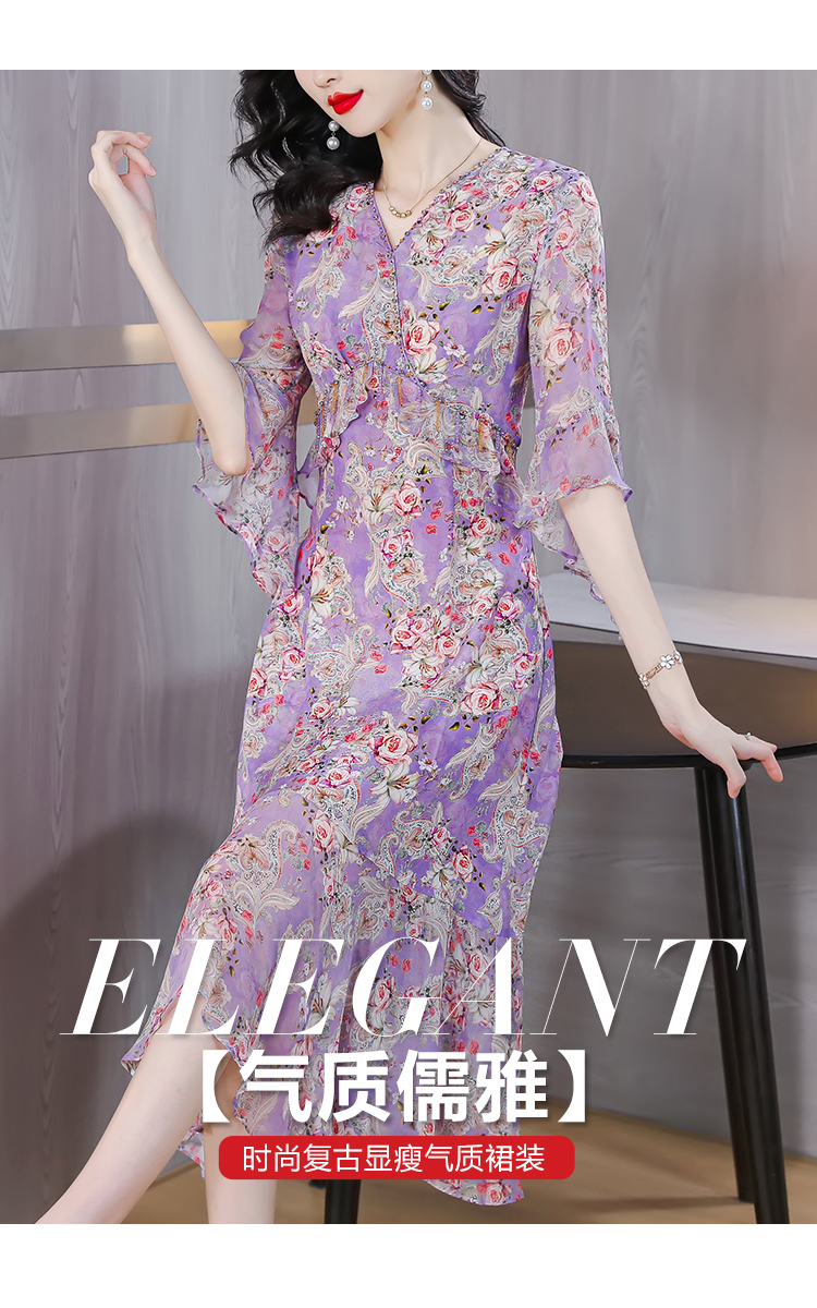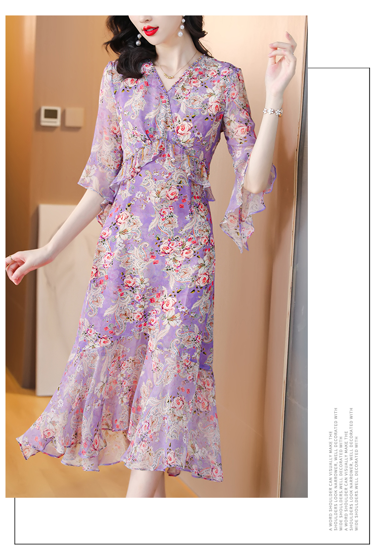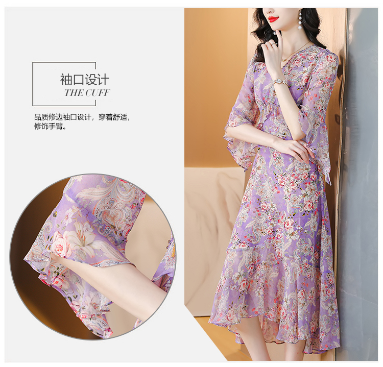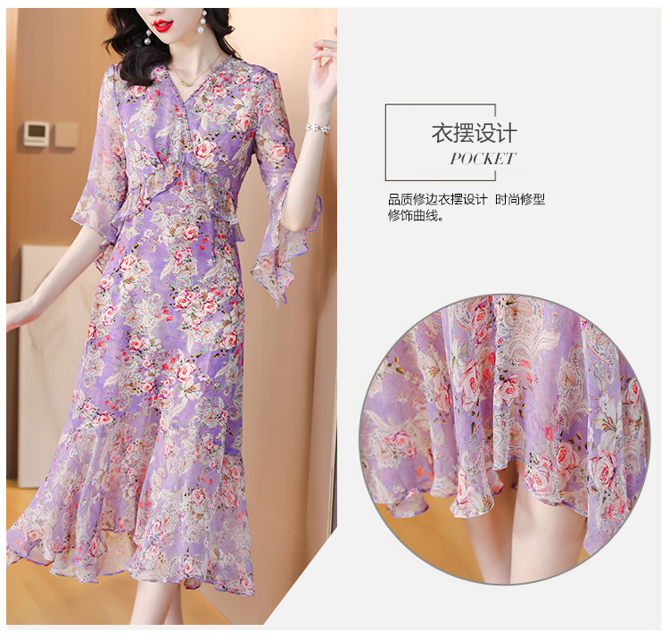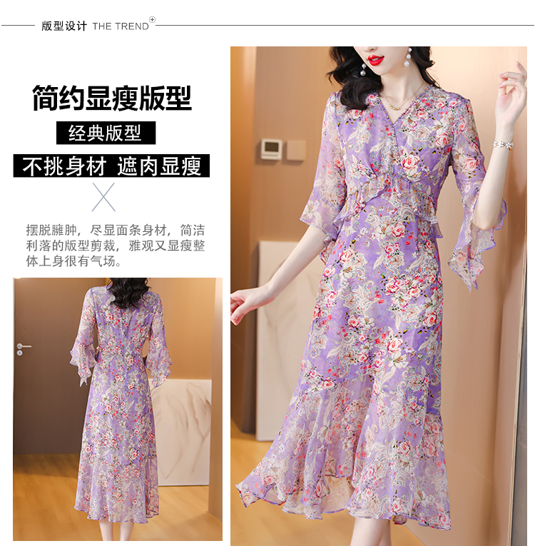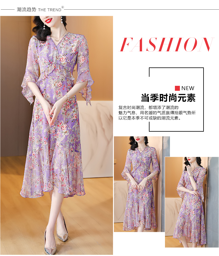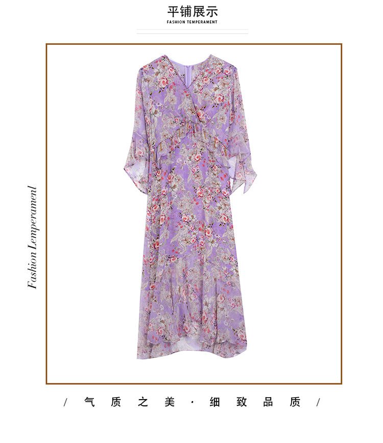 夏季法式,重磅V领度假长裙仿双绉碎花连衣裙HT-NRYQ6248-1