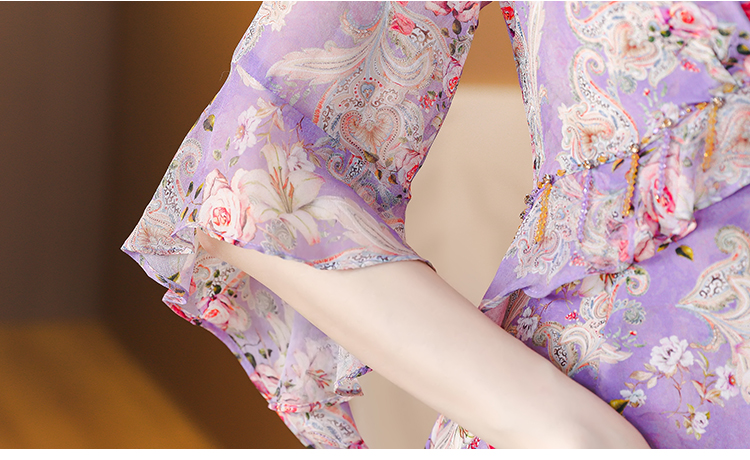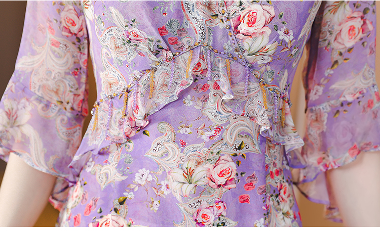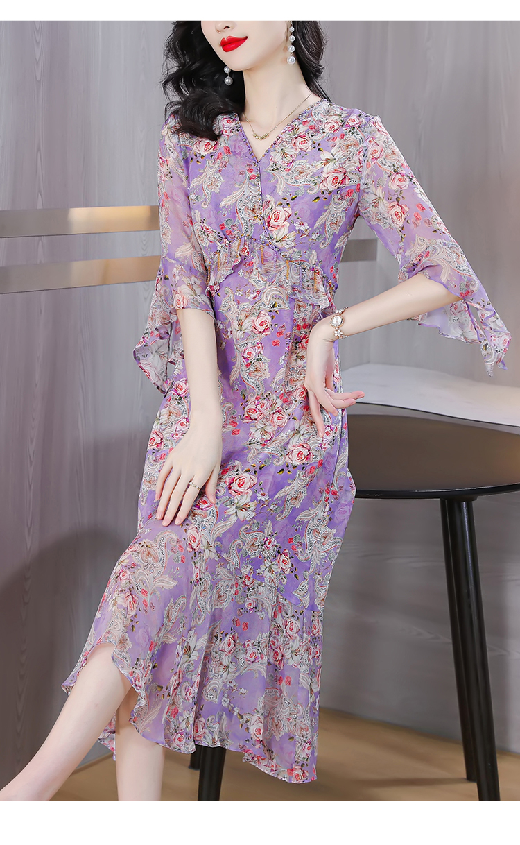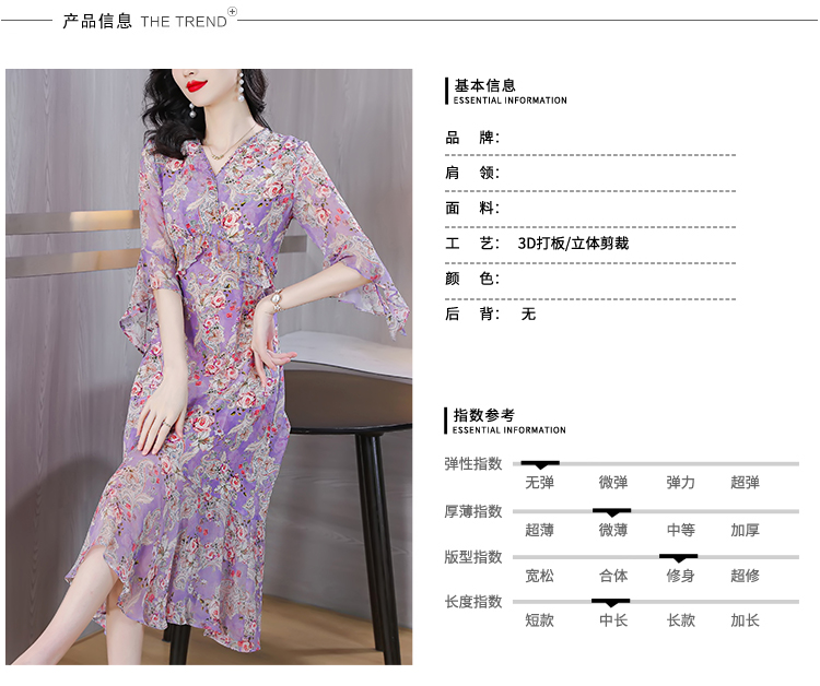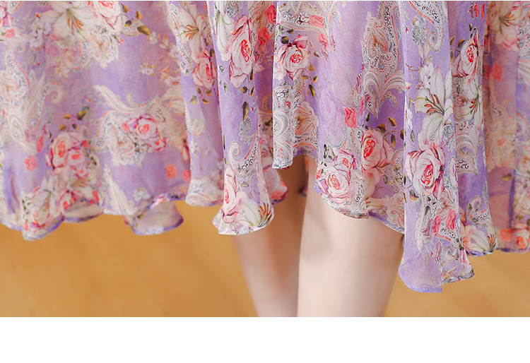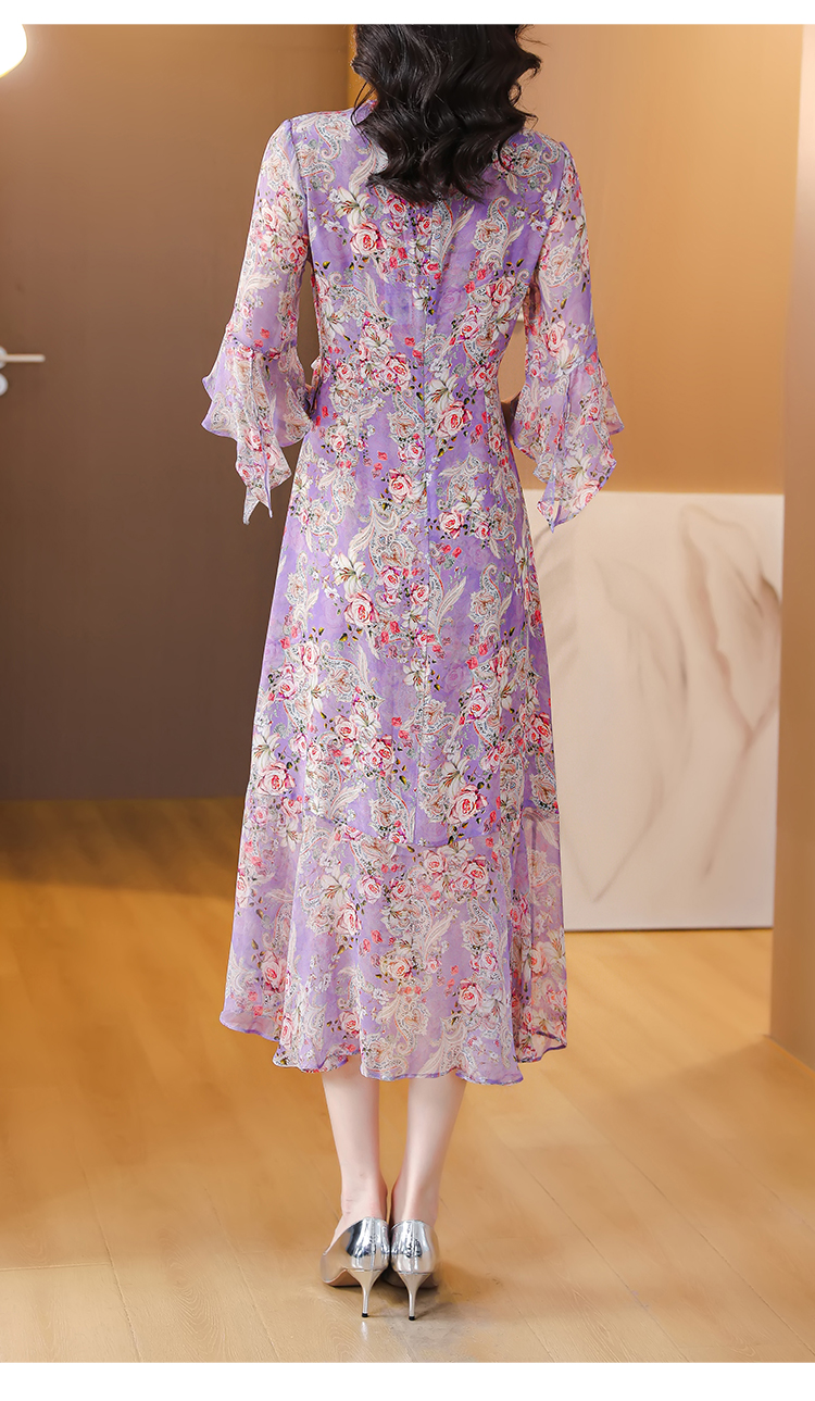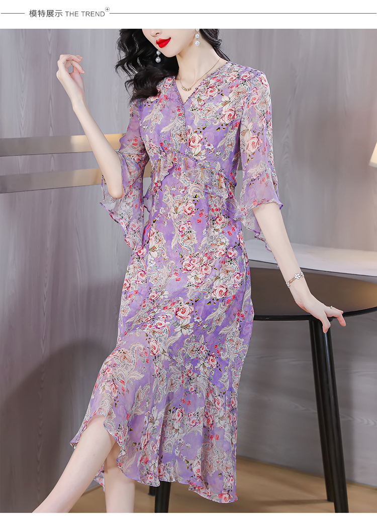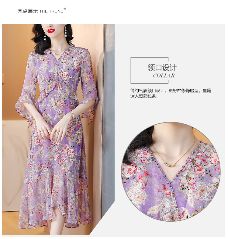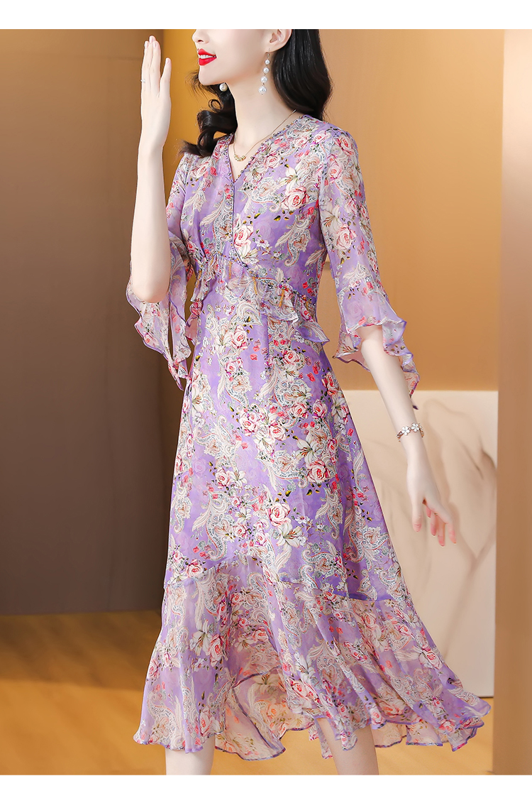 夏季法式,重磅V领度假长裙仿双绉碎花连衣裙HT-NRYQ6248-1