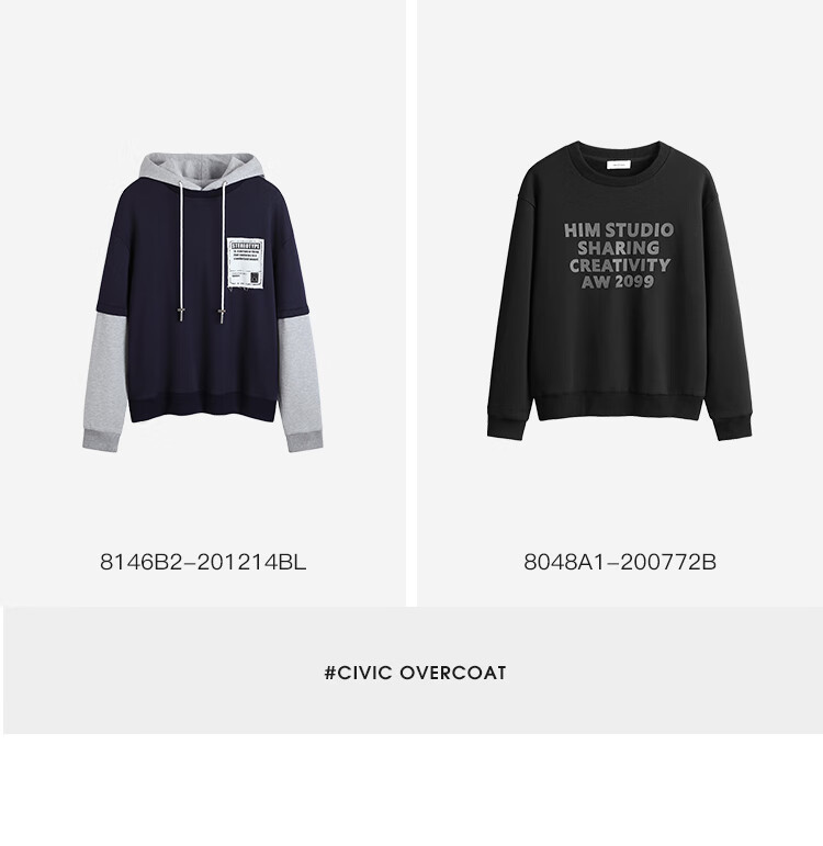 HIM漢崇 精选长袖卫衣 199-AB 自选款式与尺码