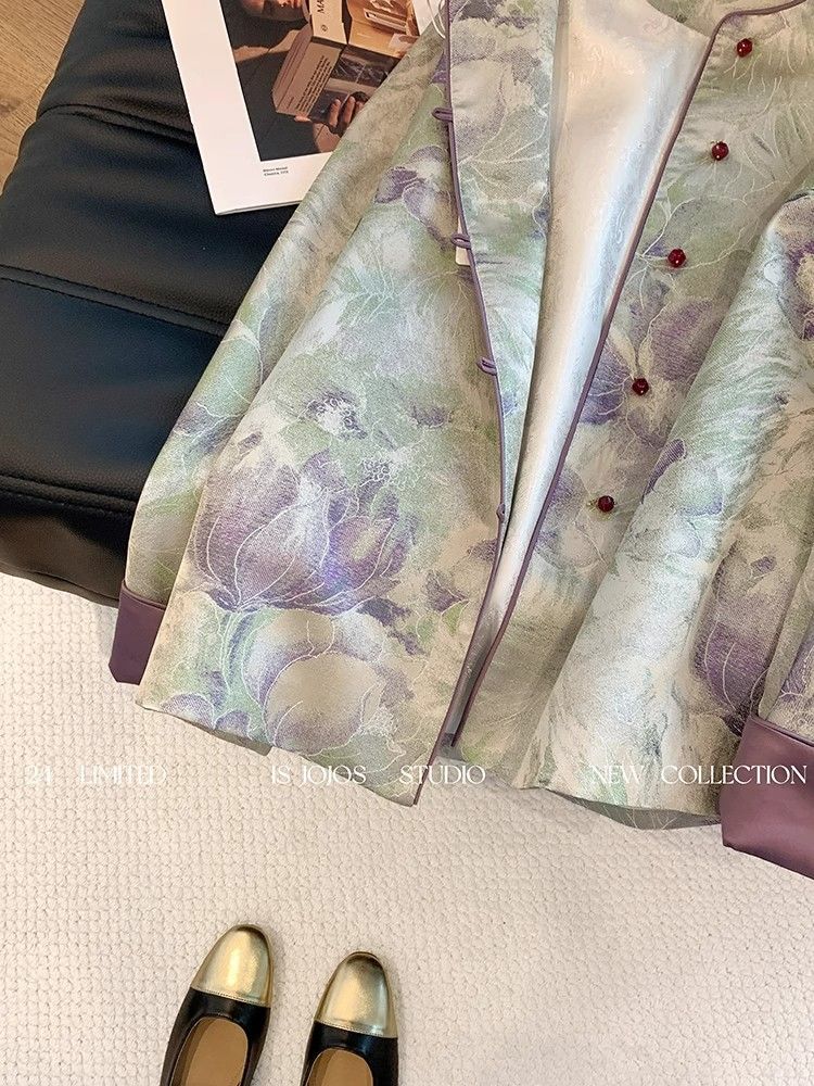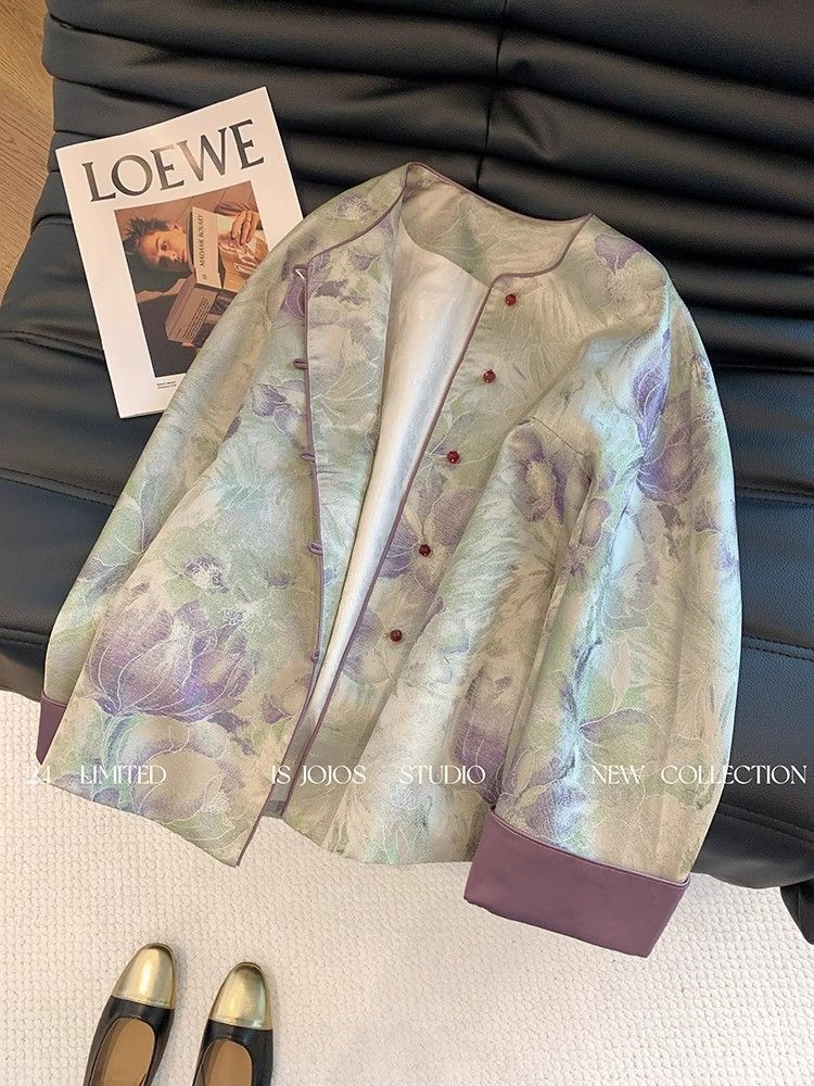 丁摩 新中式晕染提花国风外套春秋装女款新款圆领改良上衣5ZF-4862