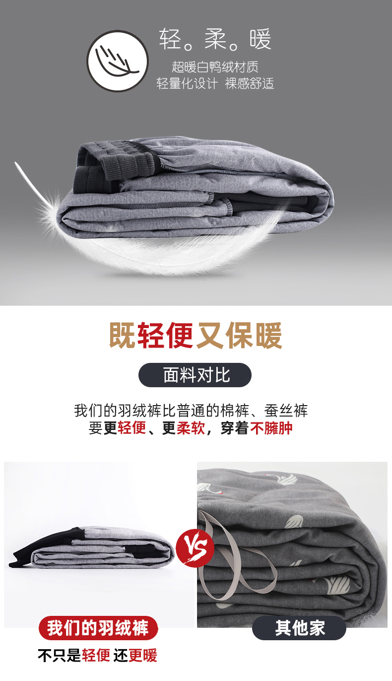【“行走的电热毯”聚温防风防污羽绒小黑裤】极地科考人员专用面料1件顶3件抗寒-20℃秒显瘦10斤显高拉腿细腰男女同款检测白鸭绒含量90%舒适轻盈无束缚