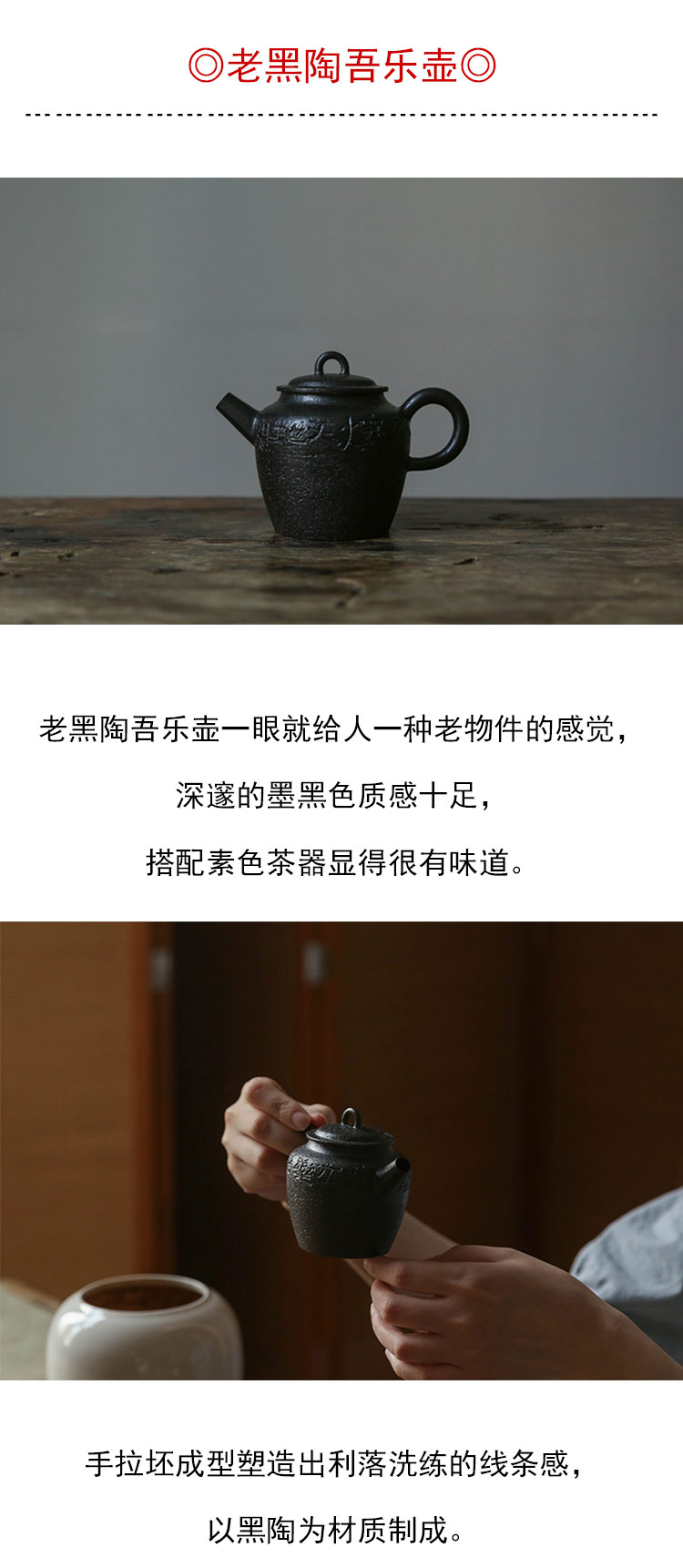 茶香记 老黑陶吾乐壶120ml乎上堂手工刻绘风雅卓然泡茶壶功夫茶具