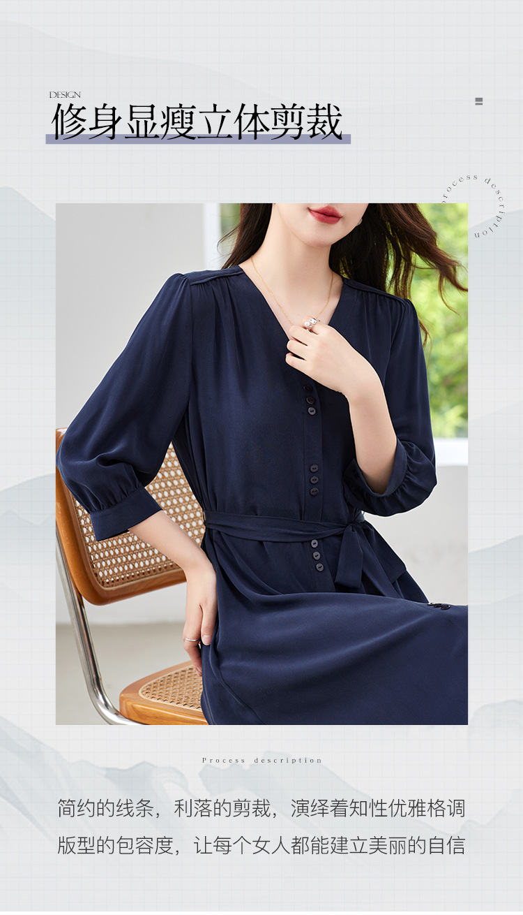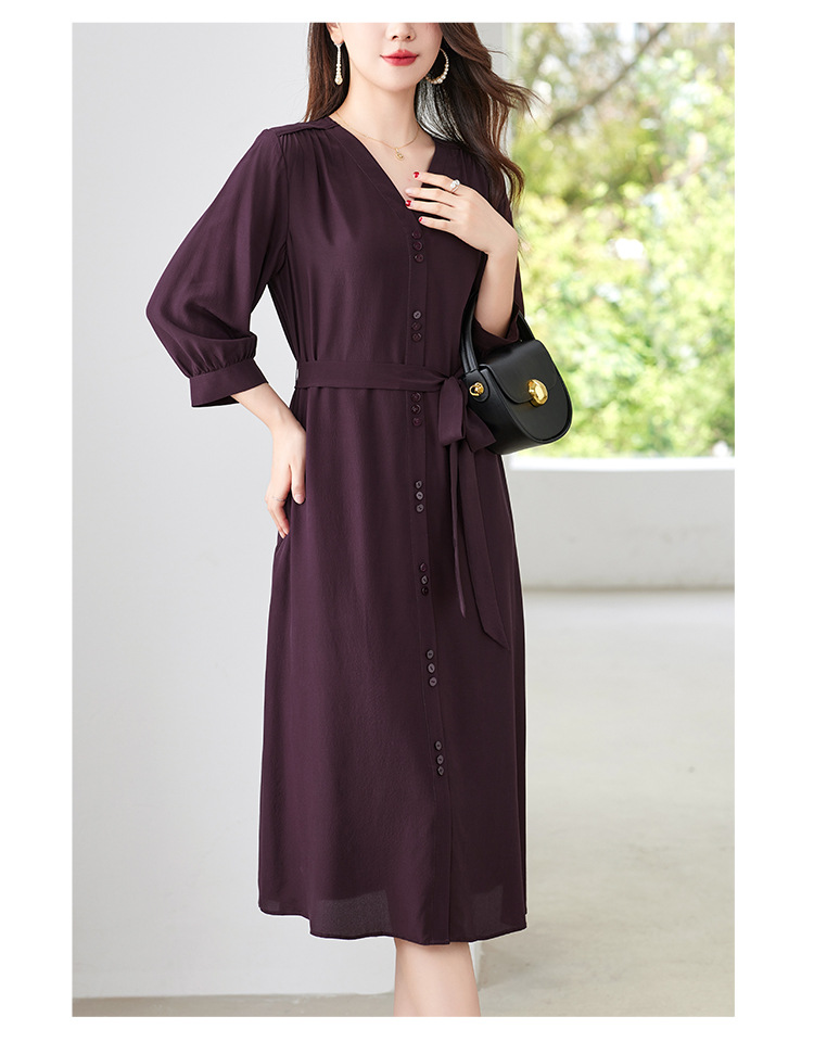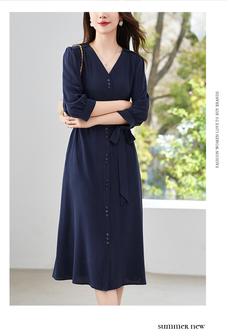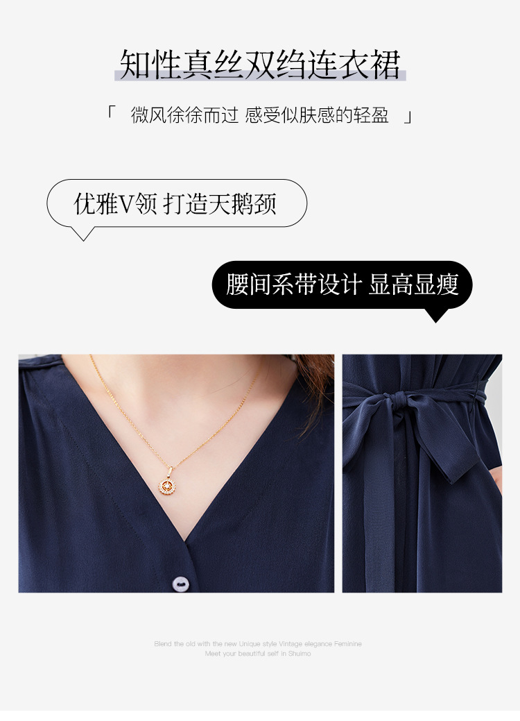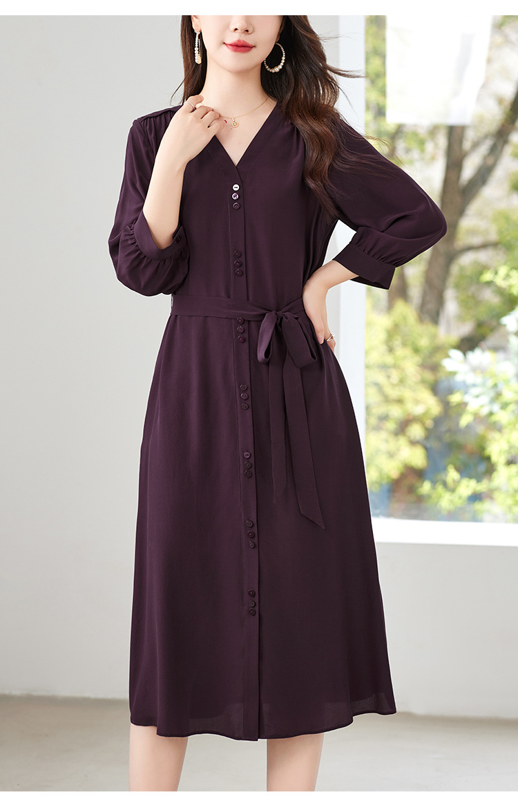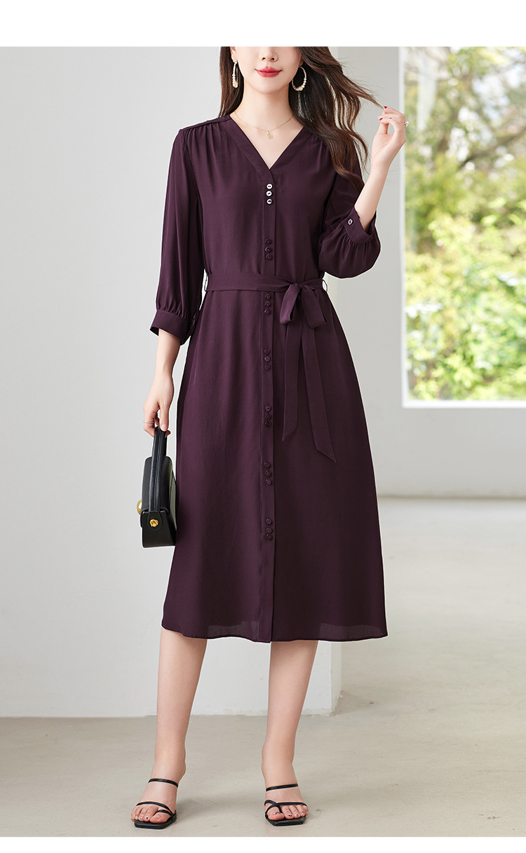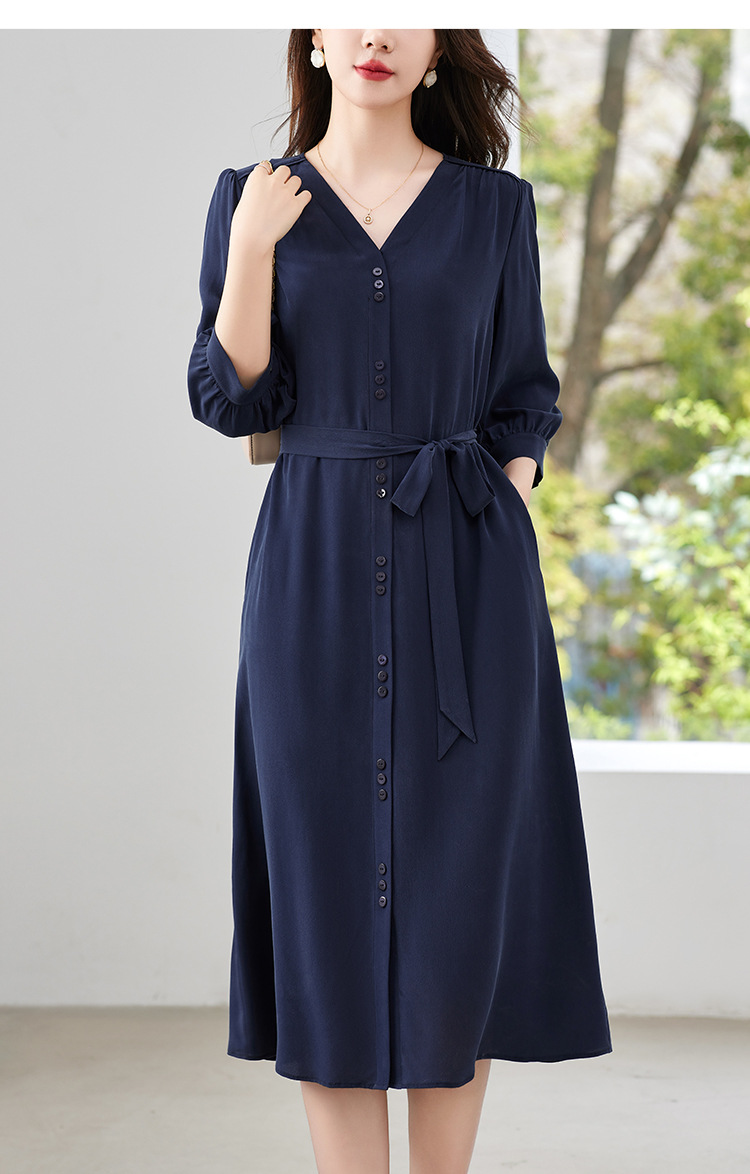 QS-82497380轻奢高端真丝03双绉连衣裙女2024新款夏季V领系带桑蚕丝长裙子