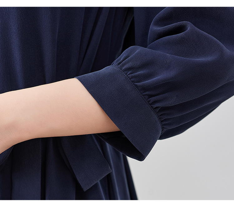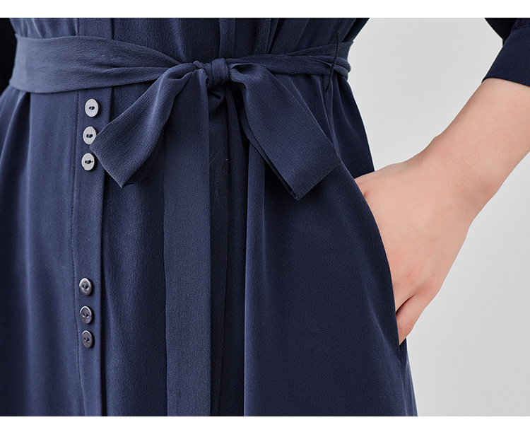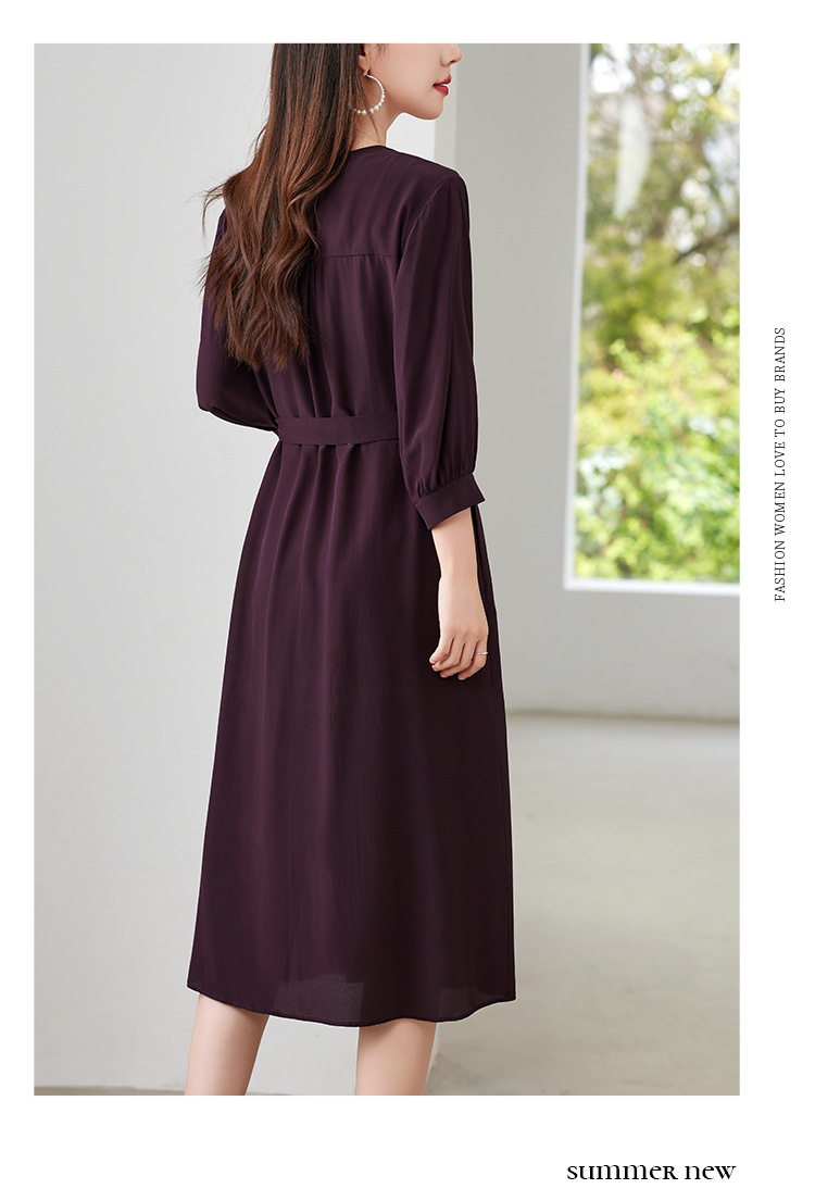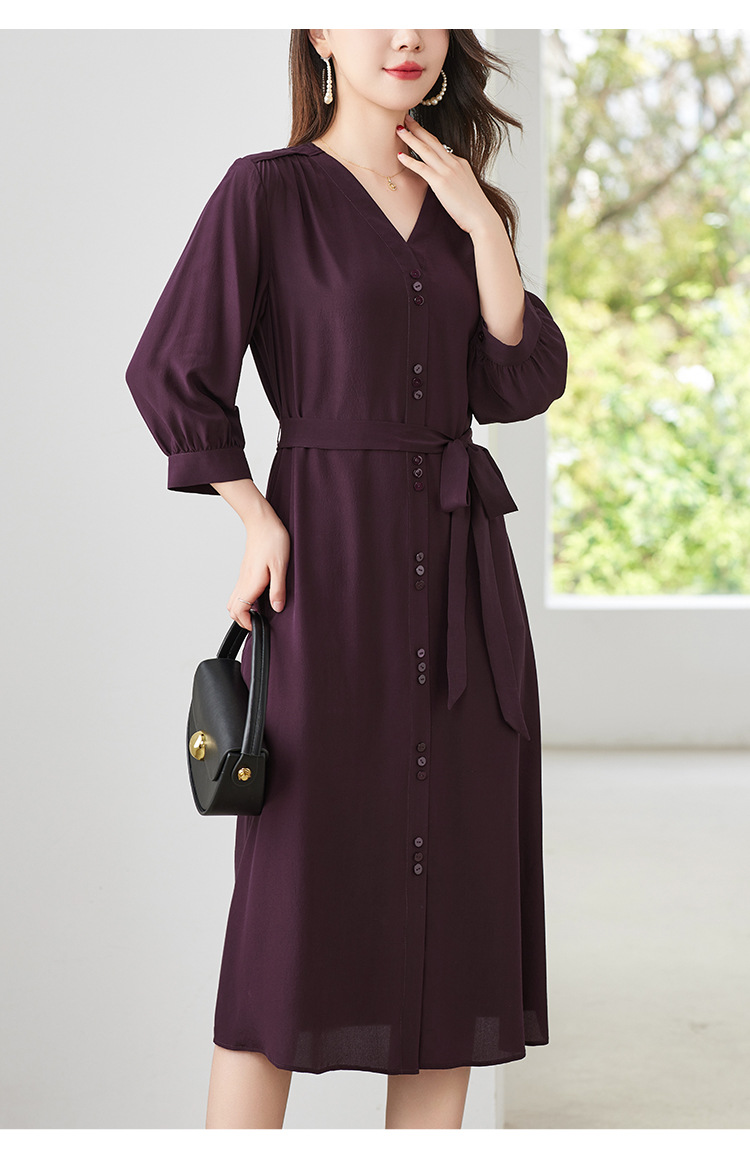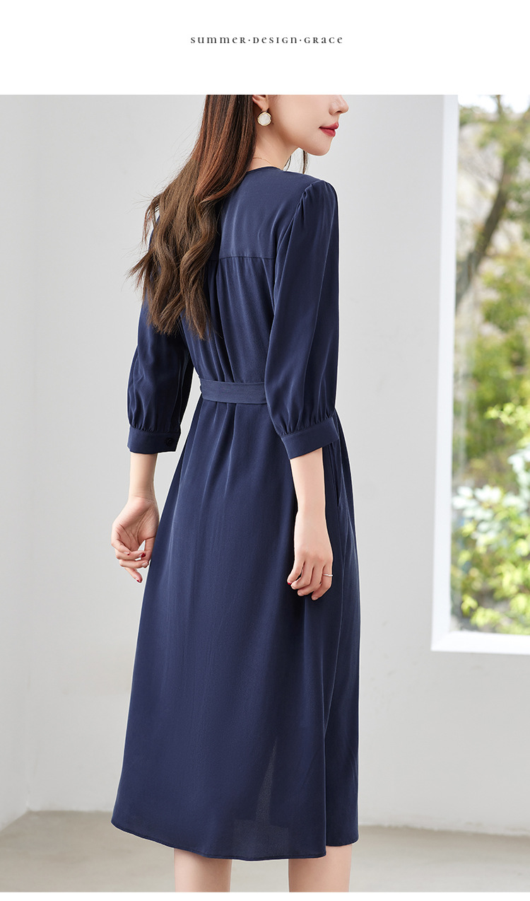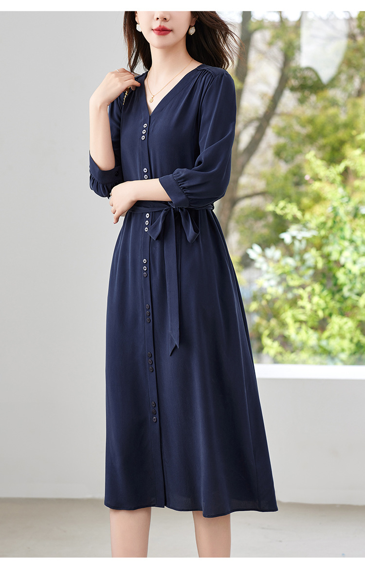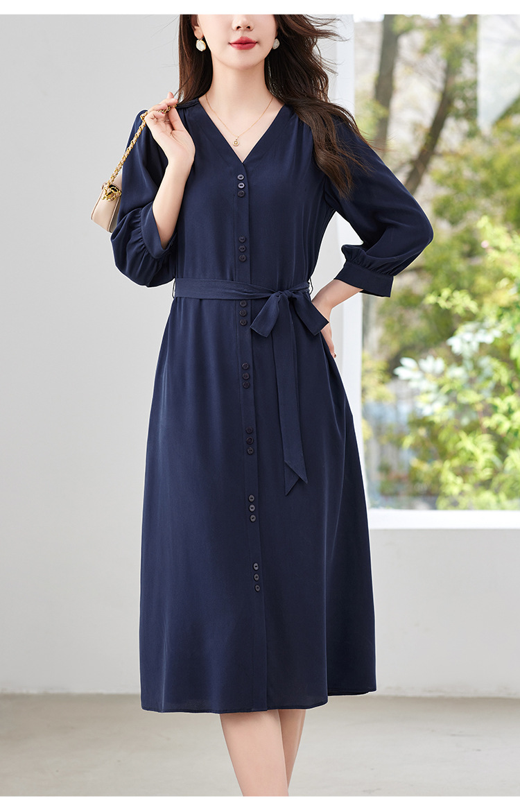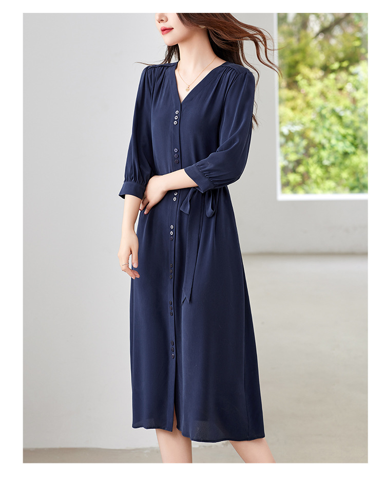QS-82497380轻奢高端真丝03双绉连衣裙女2024新款夏季V领系带桑蚕丝长裙子