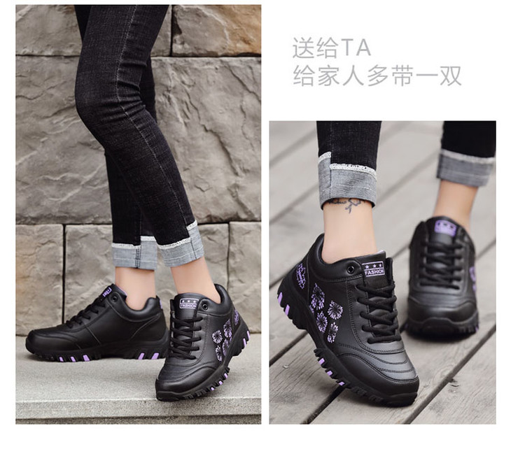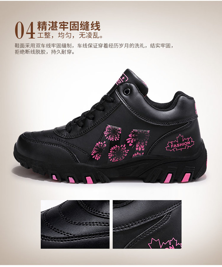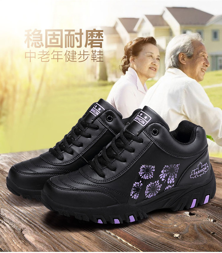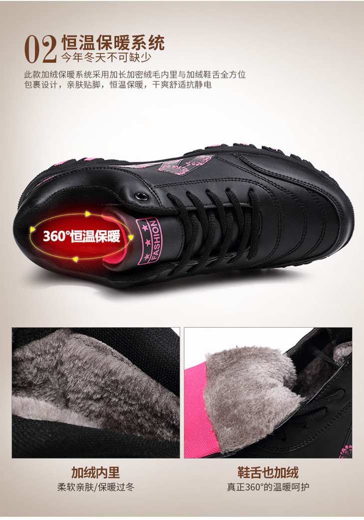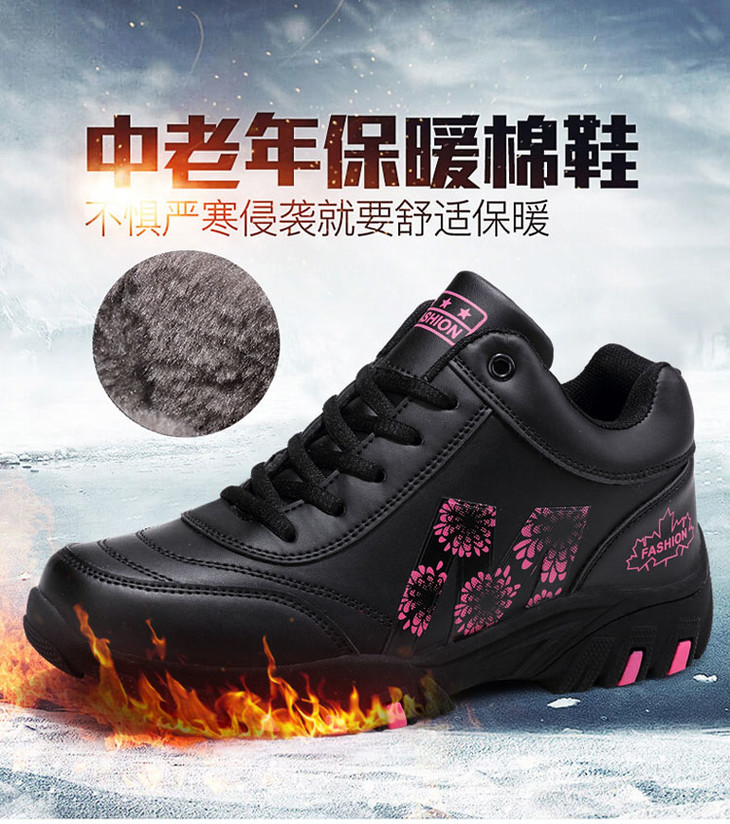 W-652足力健冬季防水防滑妈妈鞋皮面保暖运动健步鞋