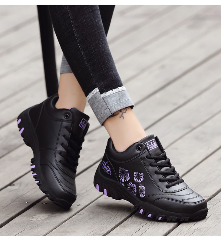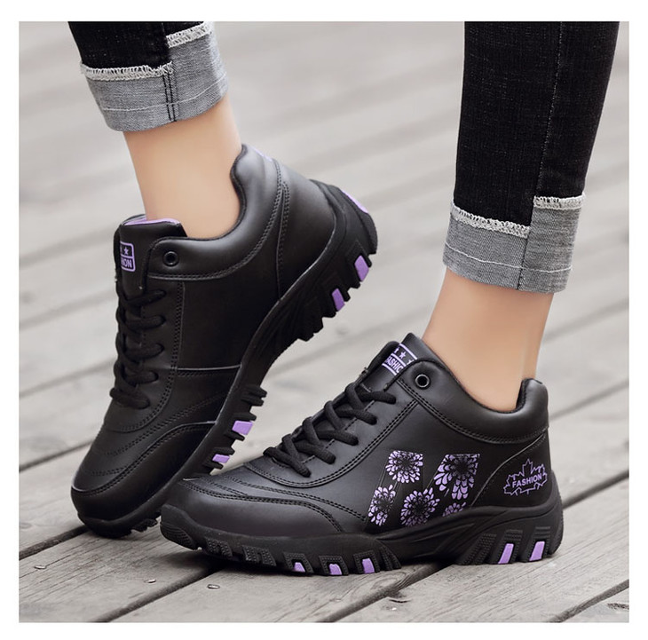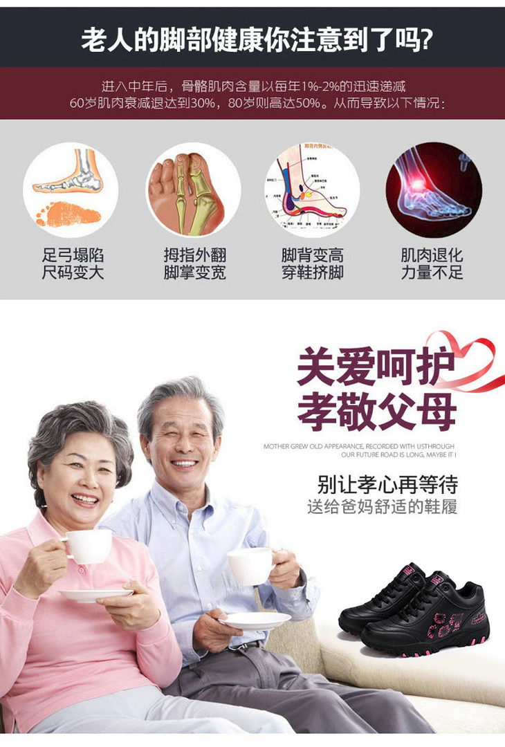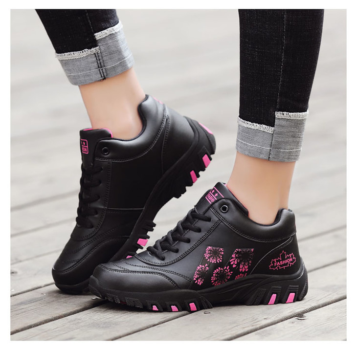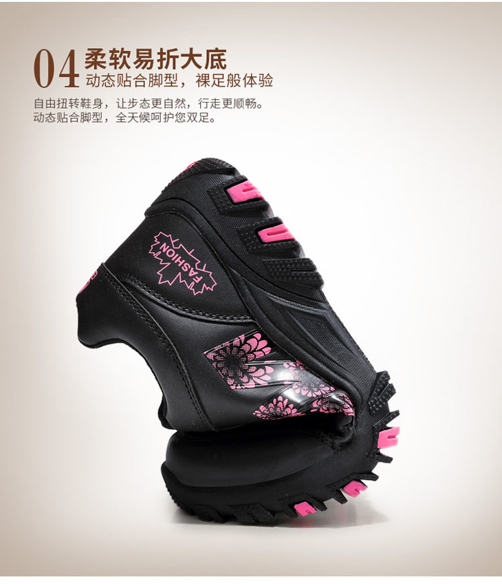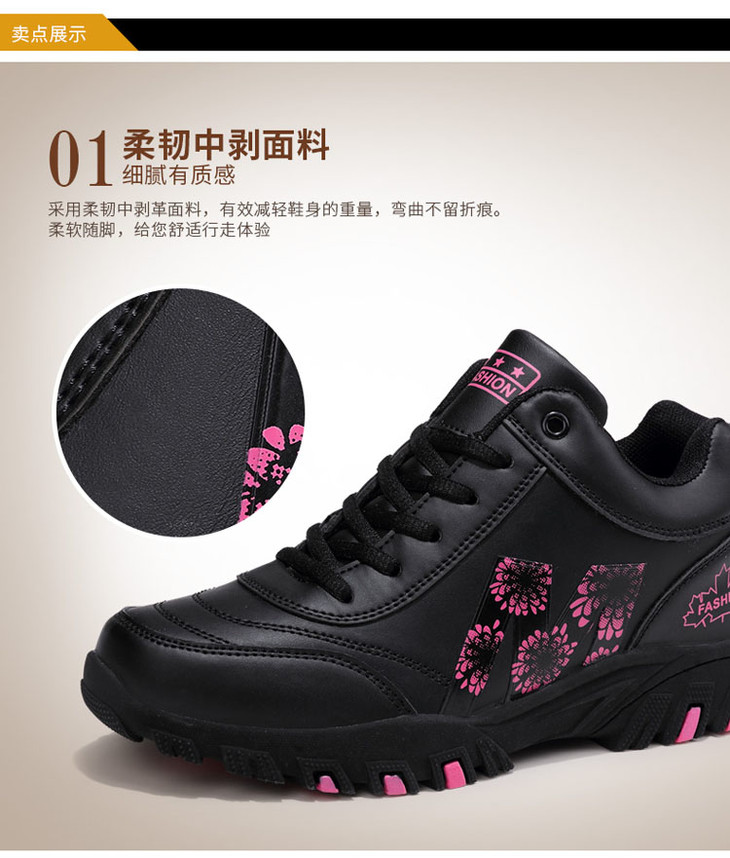 W-652足力健冬季防水防滑妈妈鞋皮面保暖运动健步鞋